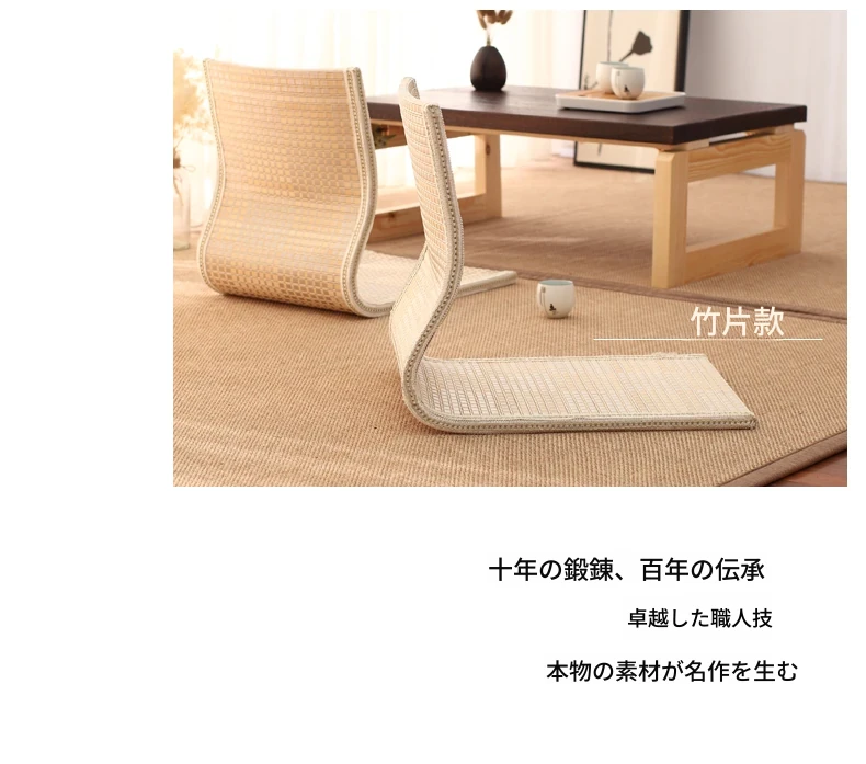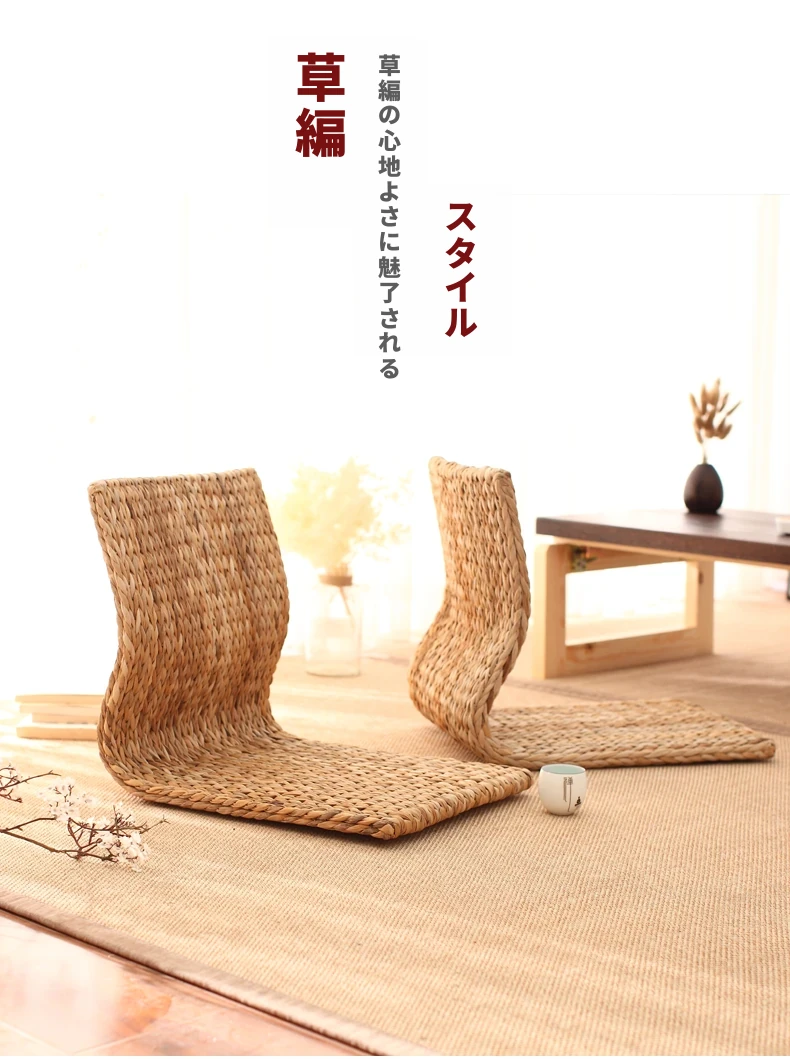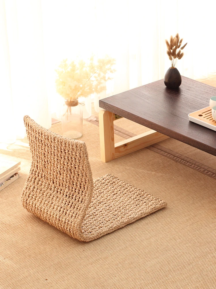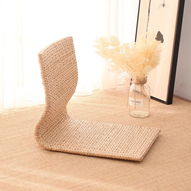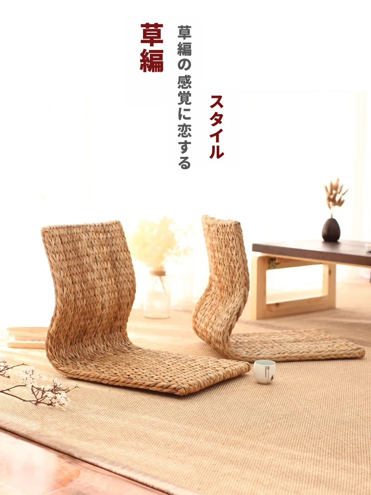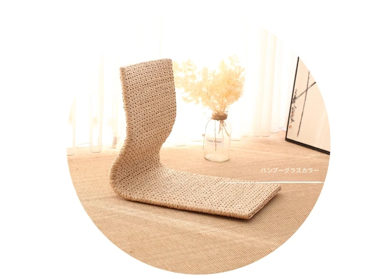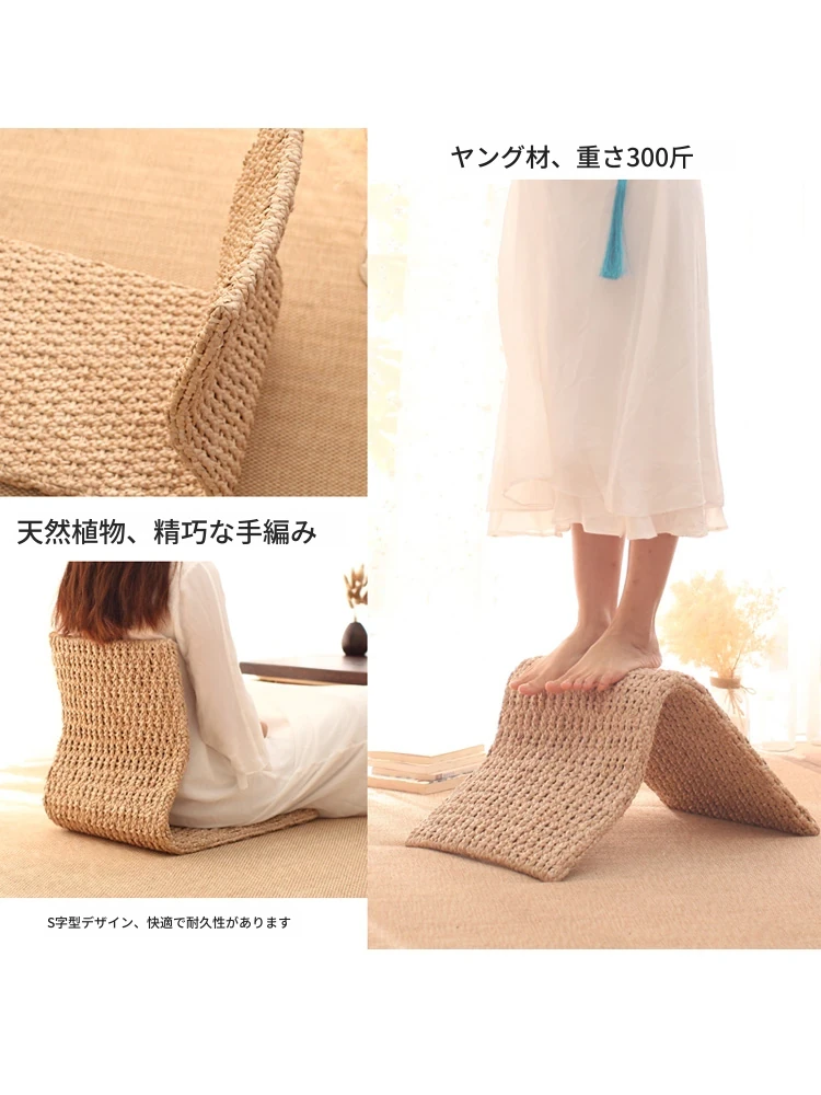 草編タタミ背もたれ椅子 - 自宅でリラックス!寝室や寮のベッドサイドに最適な浮き窓用の脚なし和風座椅子。快適な座り心地で、くつろぎのひとときを!