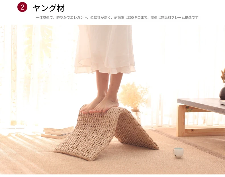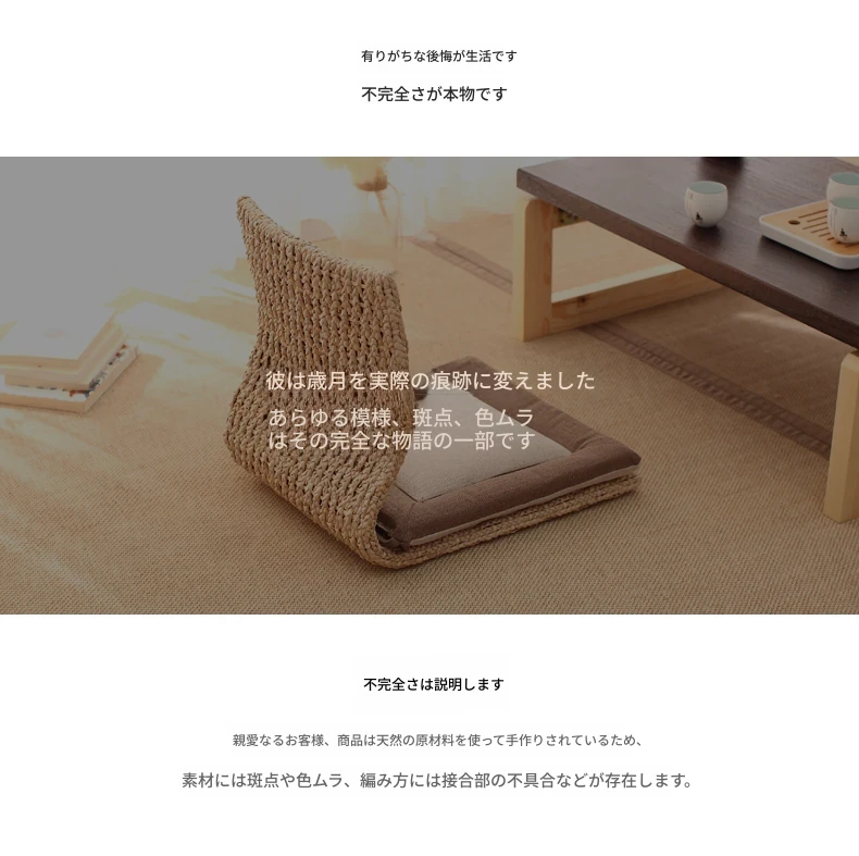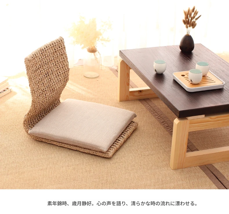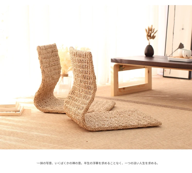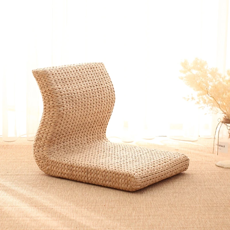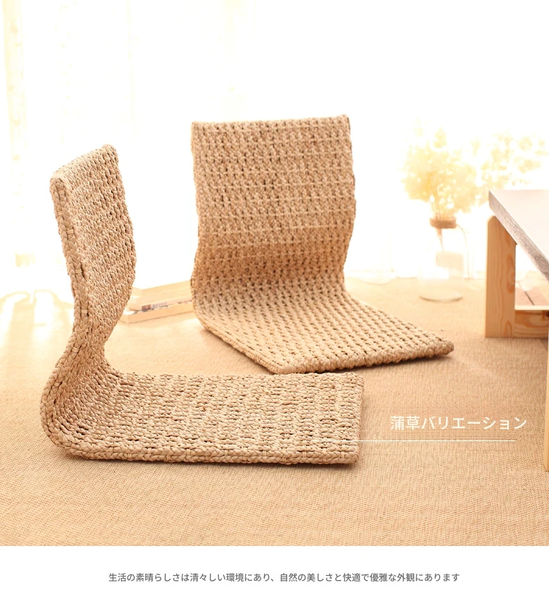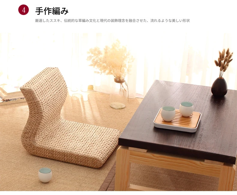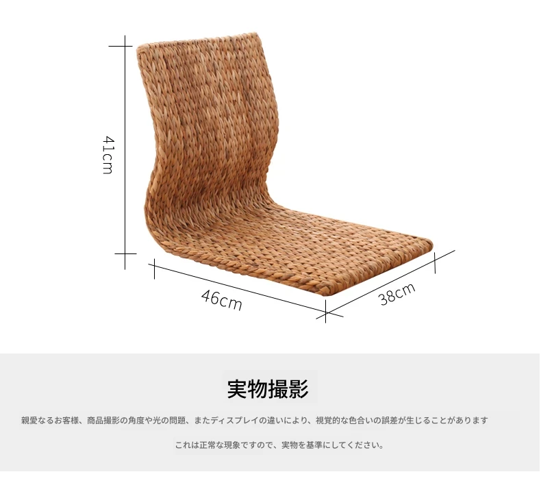 草編タタミ背もたれ椅子 - 自宅でリラックス!寝室や寮のベッドサイドに最適な浮き窓用の脚なし和風座椅子。快適な座り心地で、くつろぎのひとときを!
