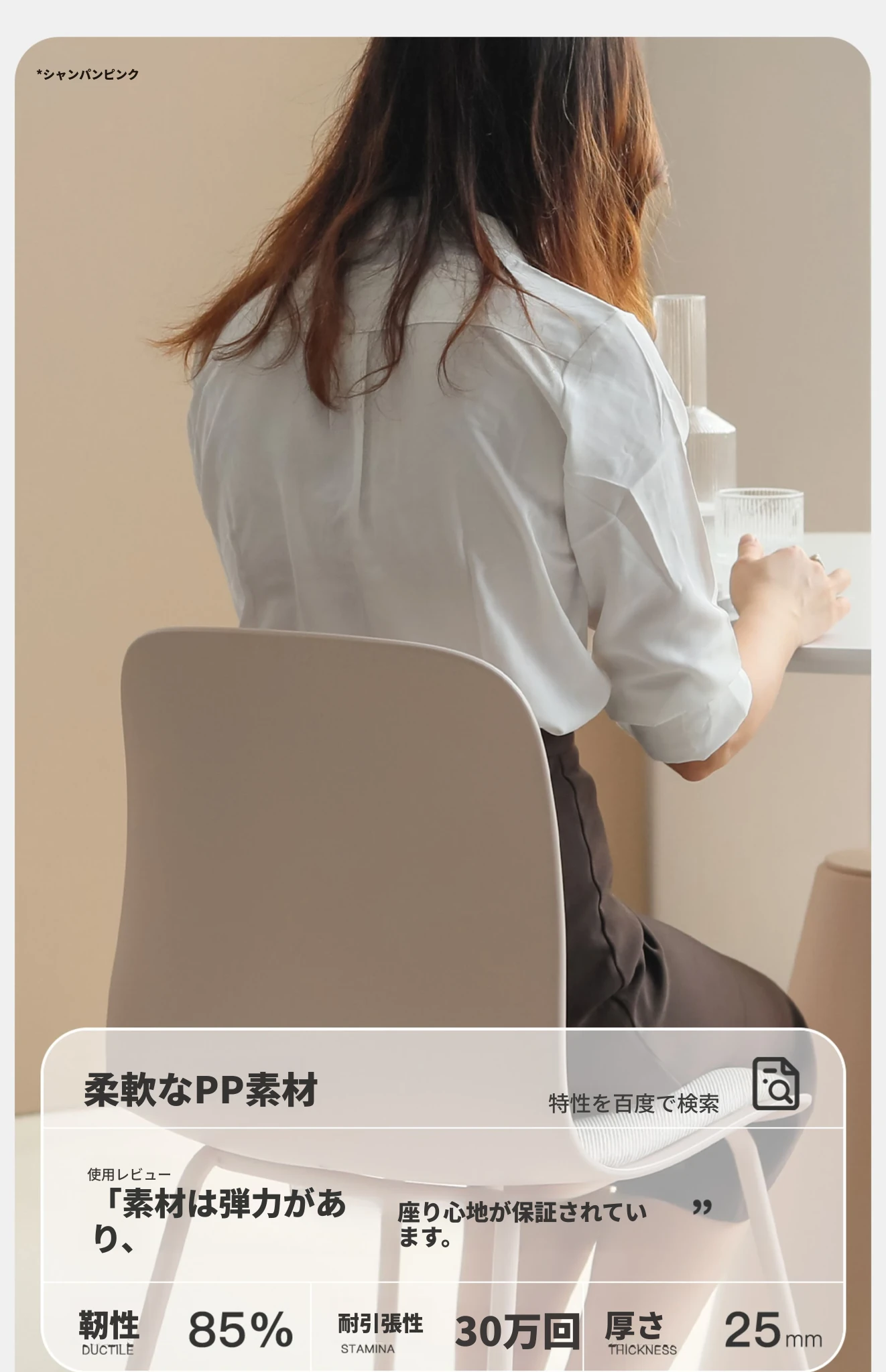 シャンパン色は適度な座り心地
