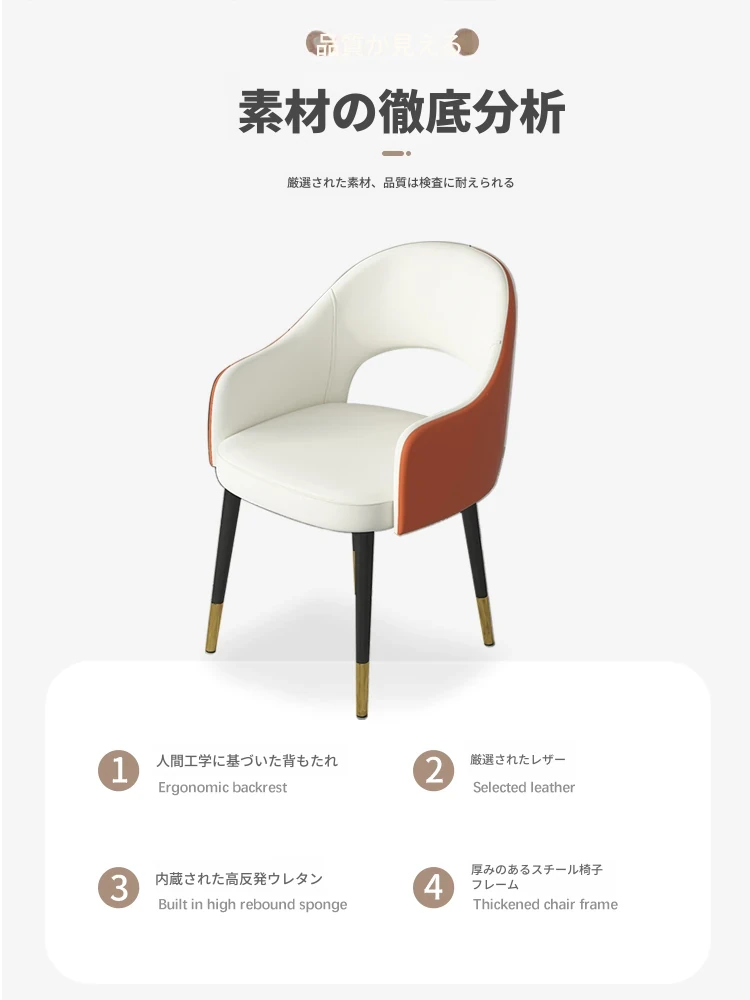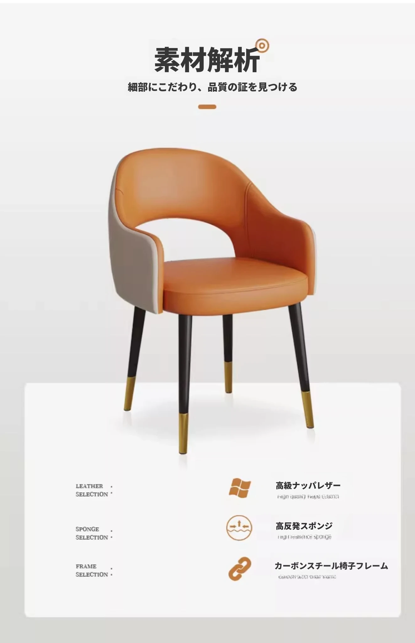 北欧スタイルのラグジュアリーなダイニングチェア - モダンでシンプルなデザイン、快適な座り心地で長時間の使用も安心。家庭やホテルの接待に最適な高品質チェア。