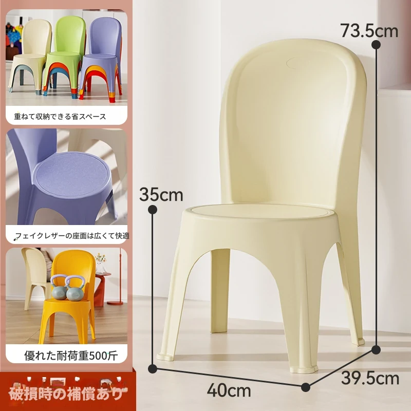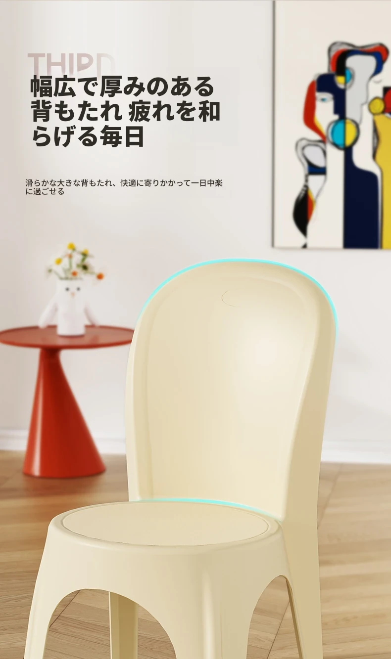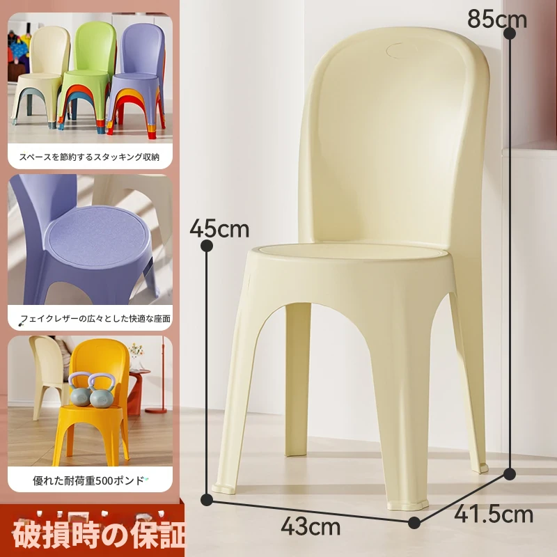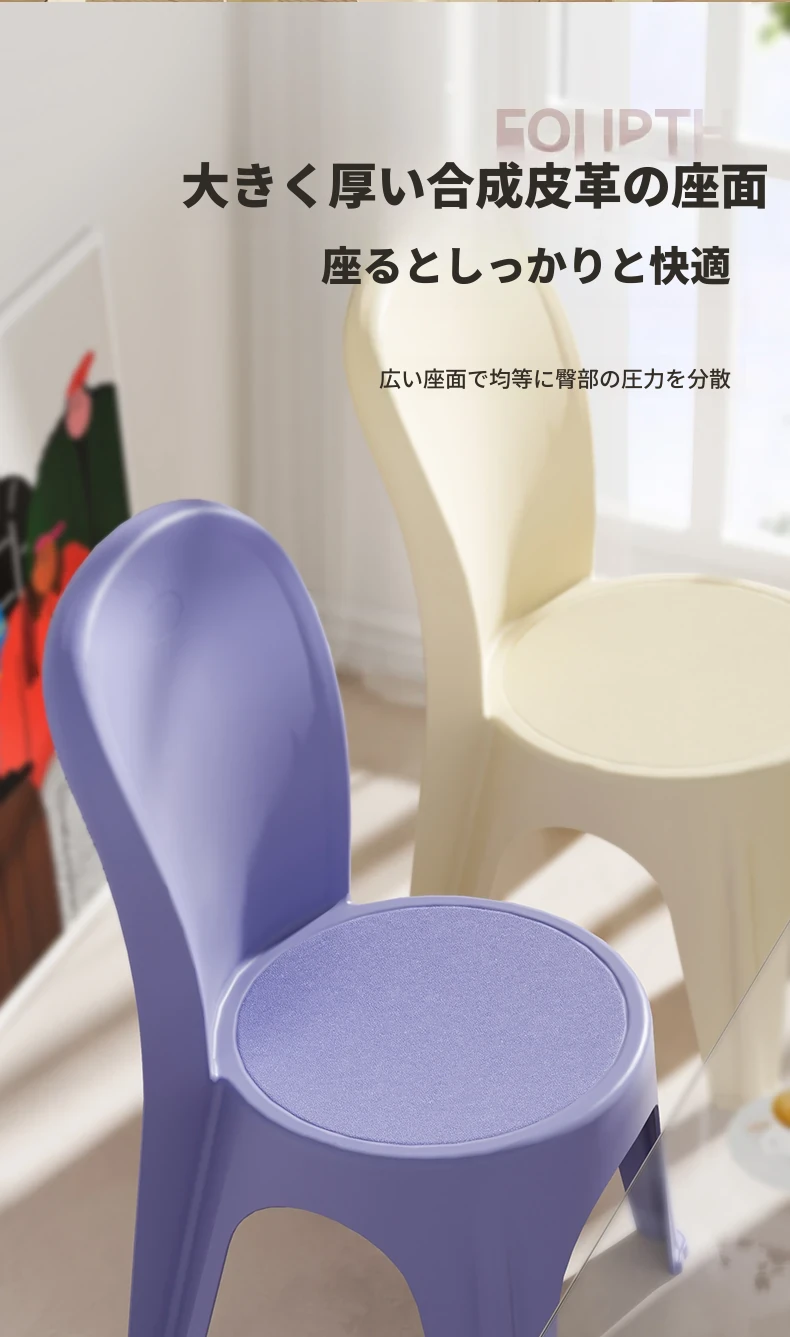 北欧風のシンプルなプラスチック椅子 - 厚手の大人用背もたれ付きスツール。軽やかな高級感で家庭用・リラックスに最適なダイニングチェア、バスルーム用にもおすすめ!