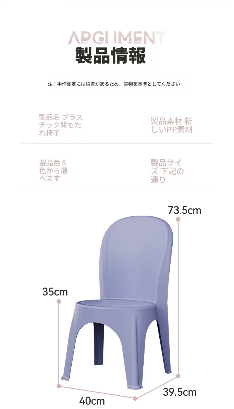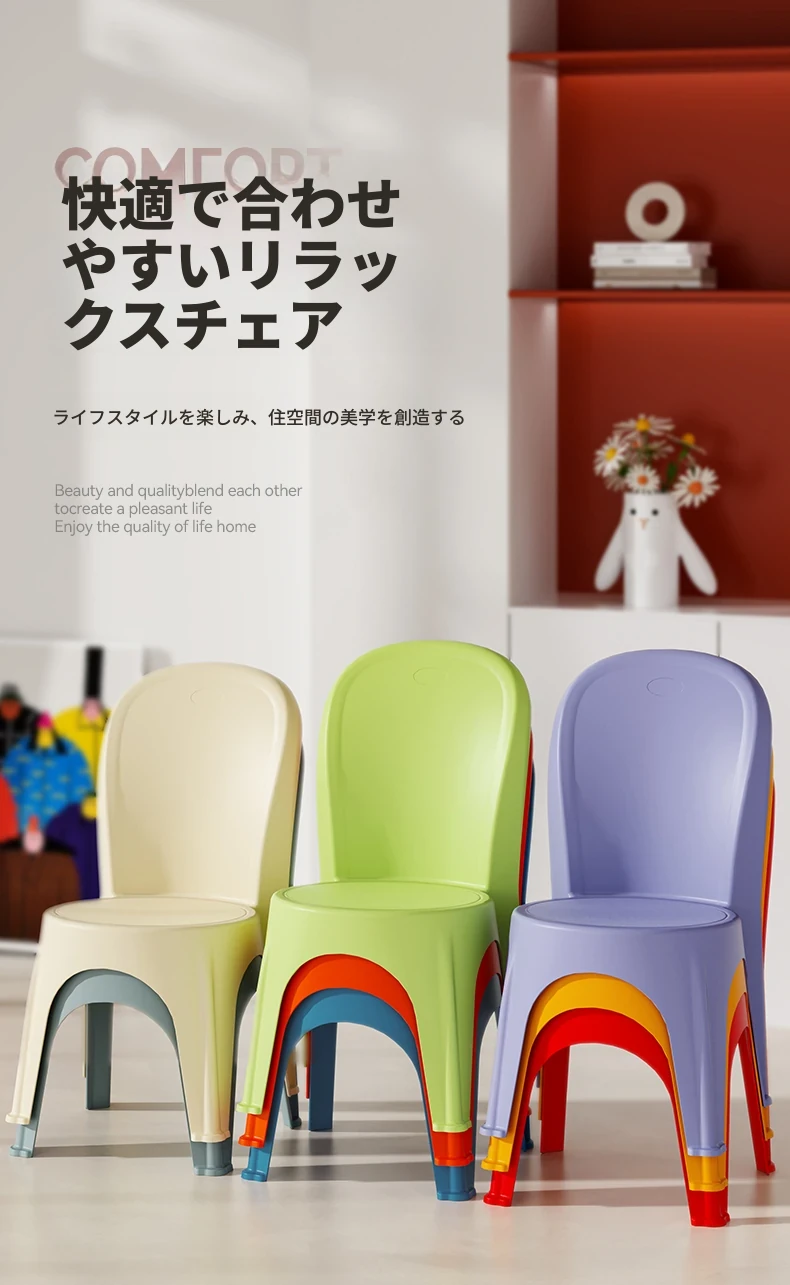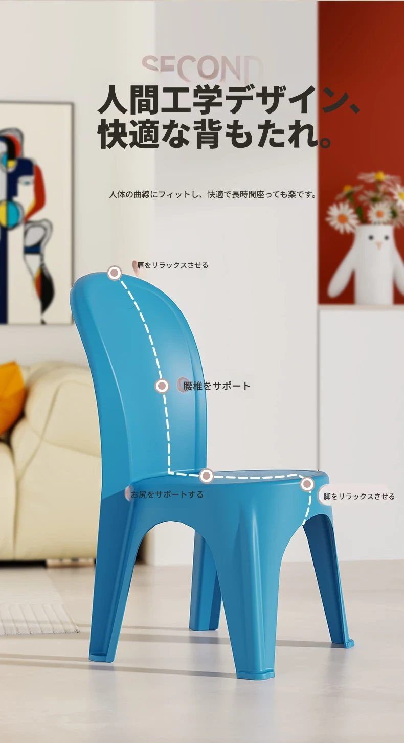 北欧風のシンプルなプラスチック椅子 - 厚手の大人用背もたれ付きスツール。軽やかな高級感で家庭用・リラックスに最適なダイニングチェア、バスルーム用にもおすすめ!