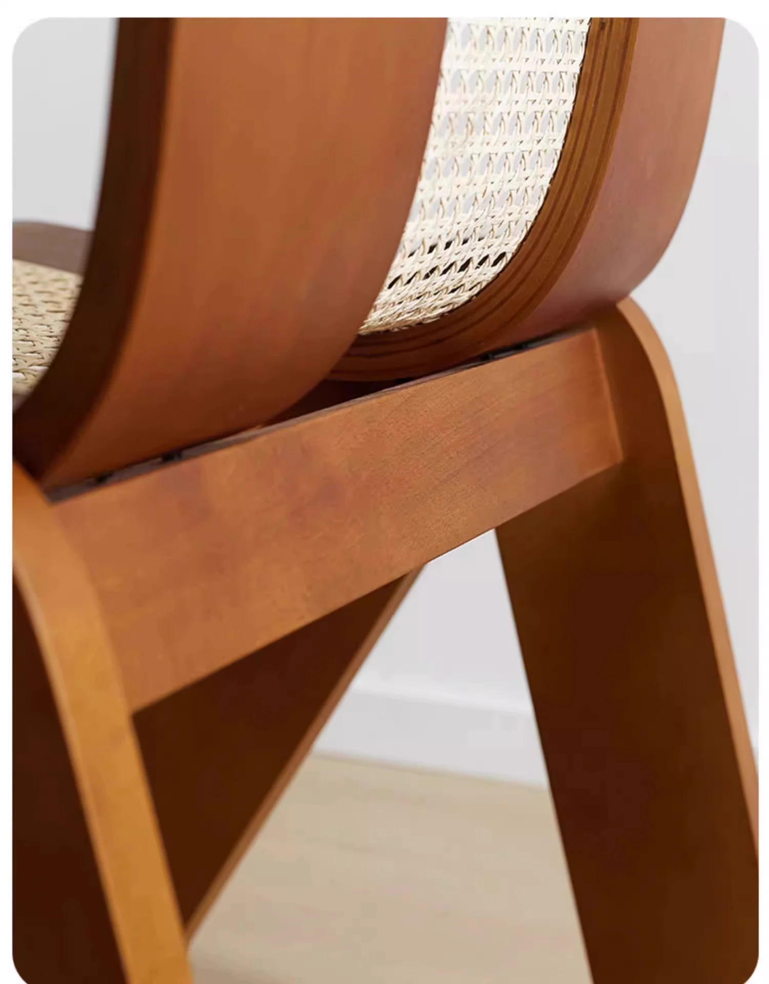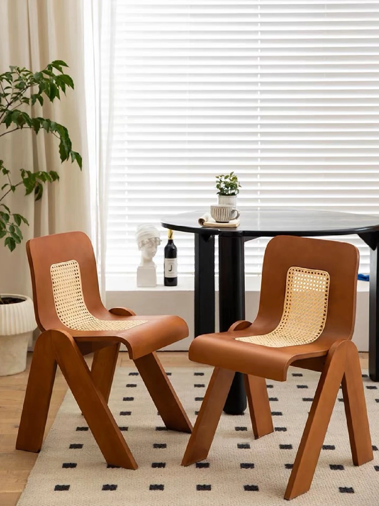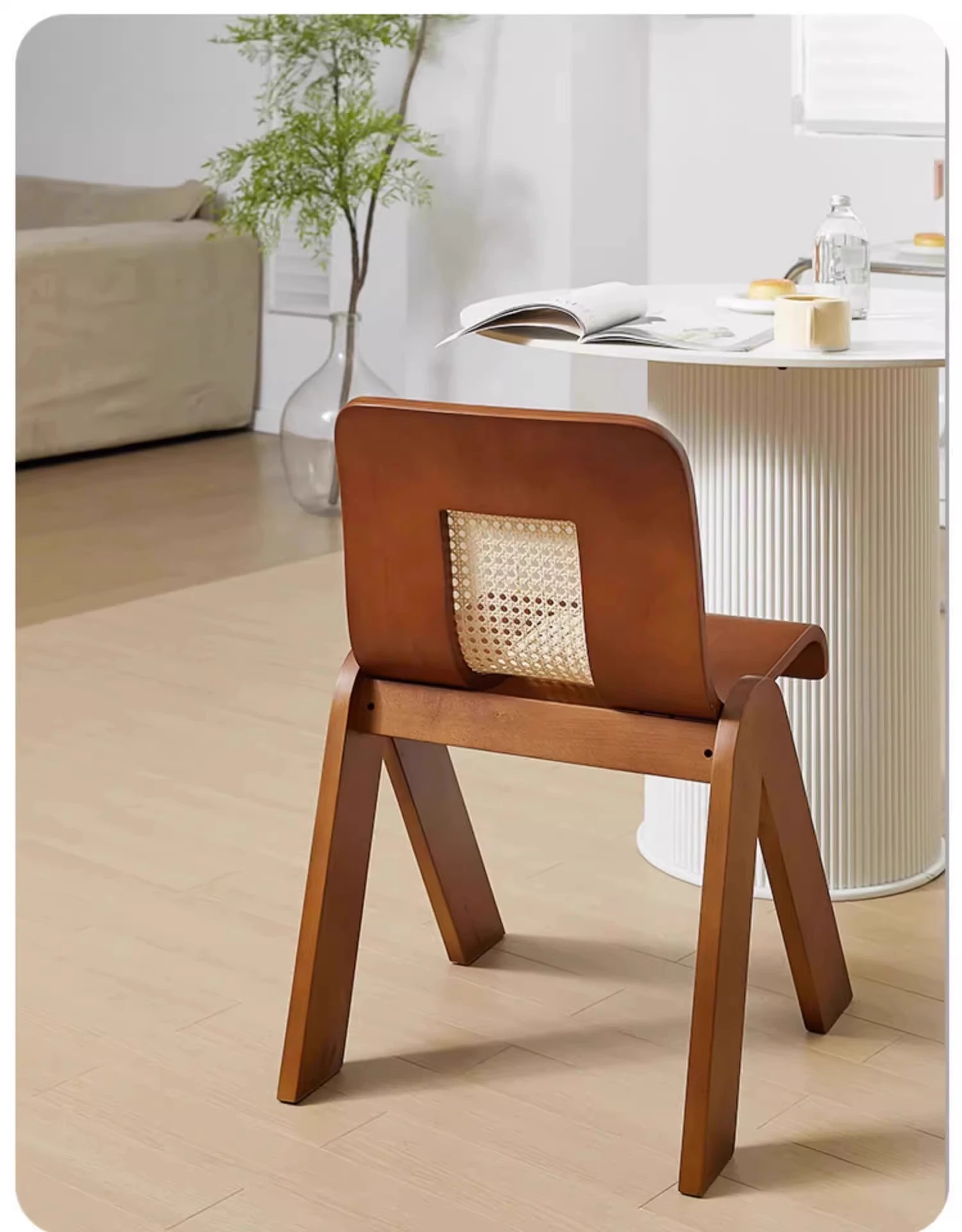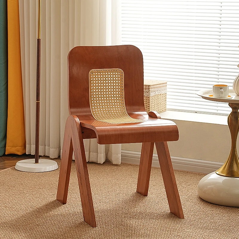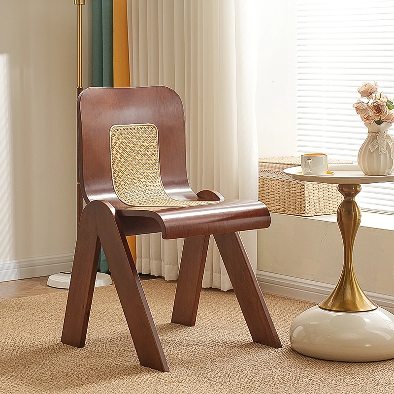 Nordic Rattan Dining Chair - Vintage C-Shaped Modern Home Chair with Retro Backrest, Perfect for Wabi-Sabi Style Makeup and Dressing Room