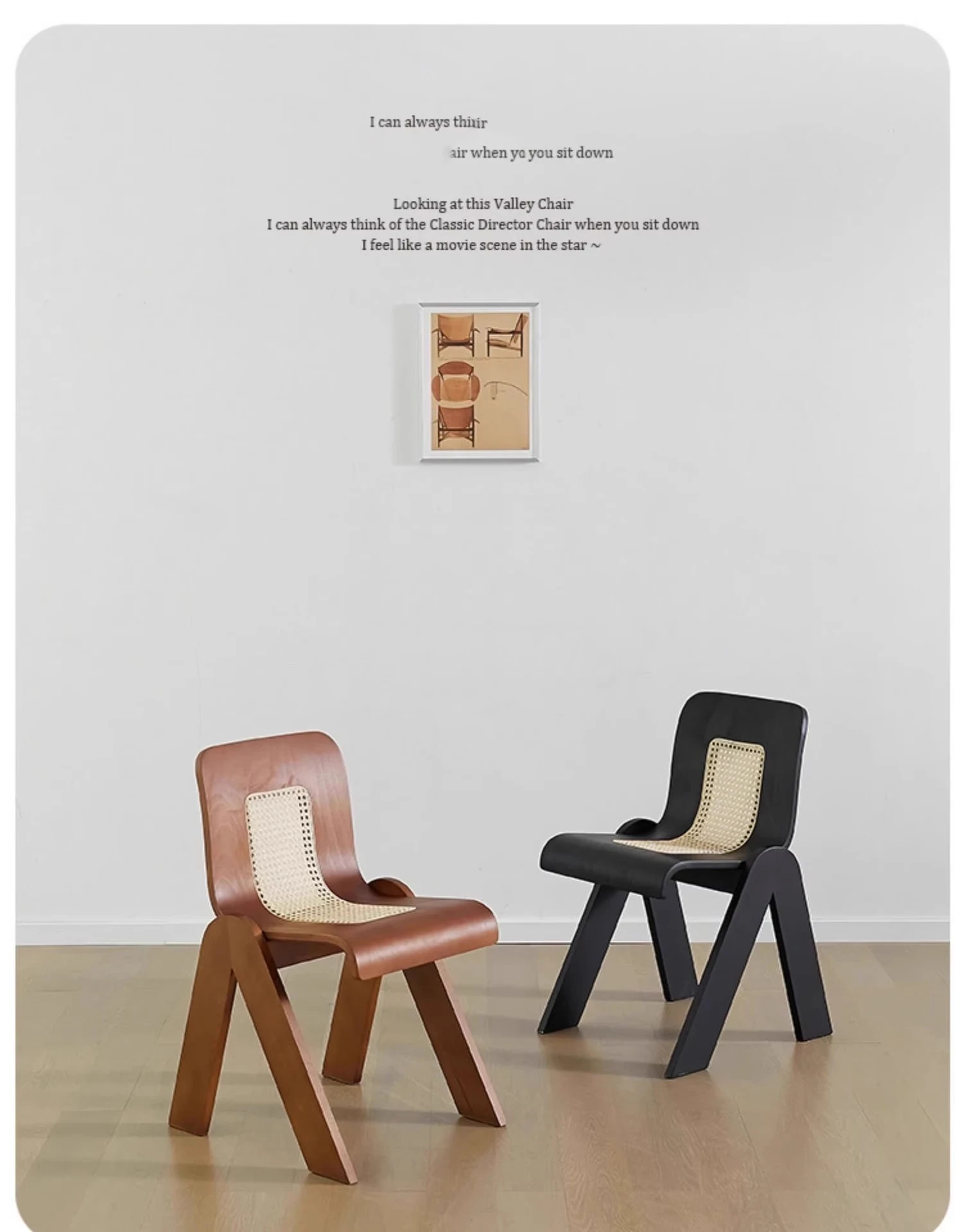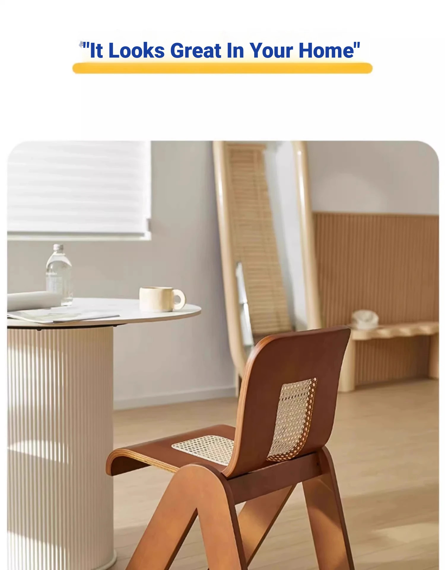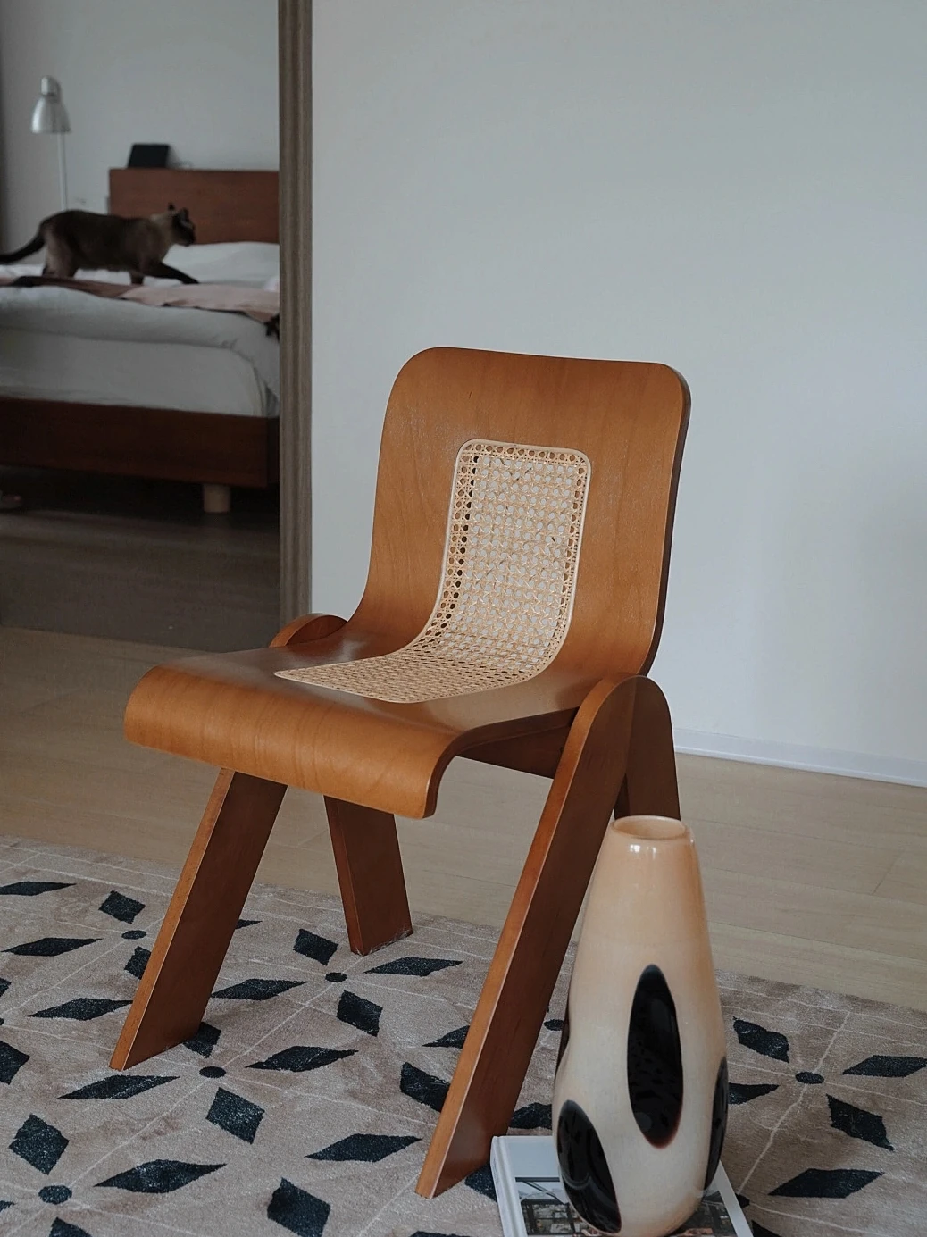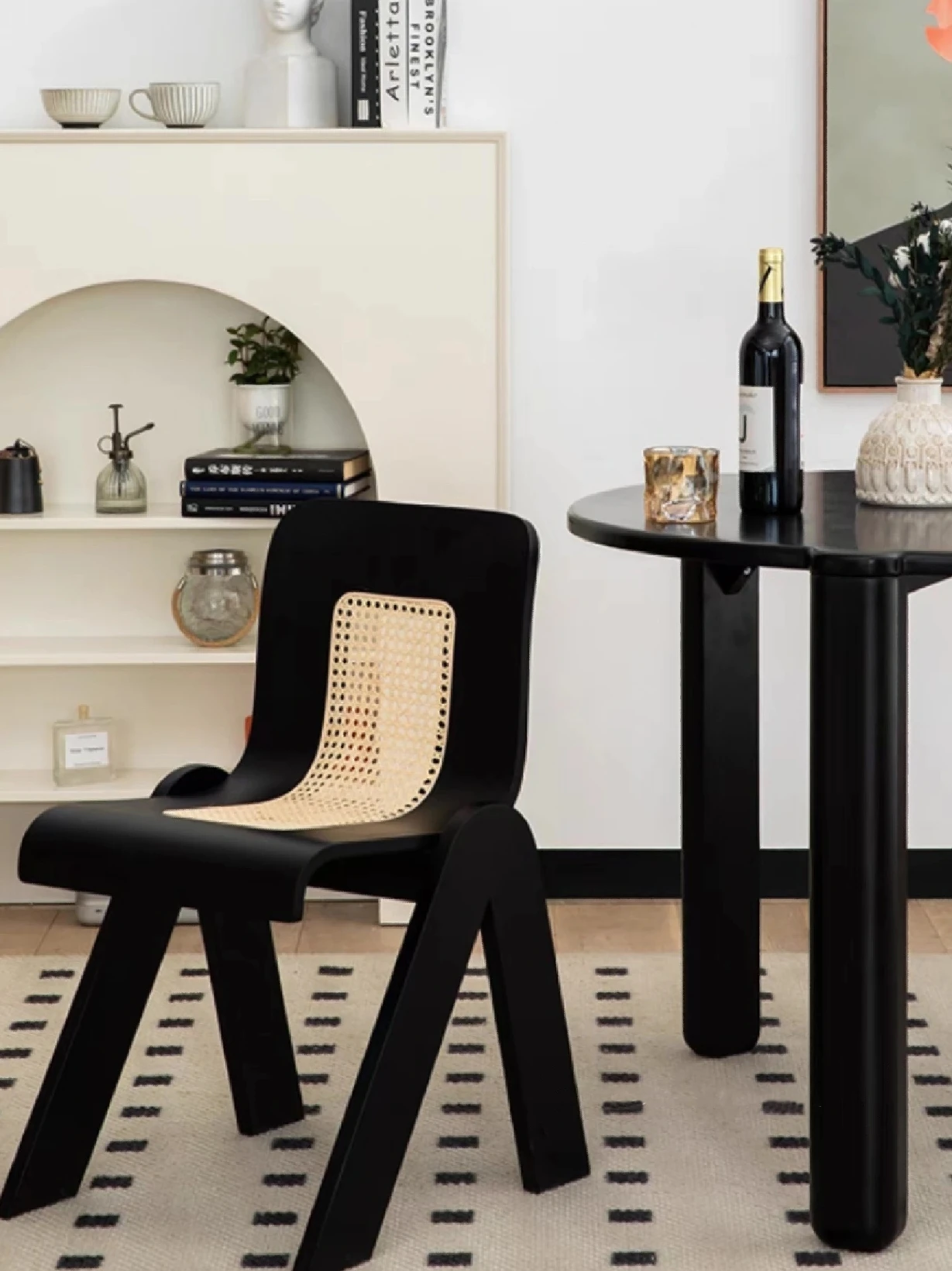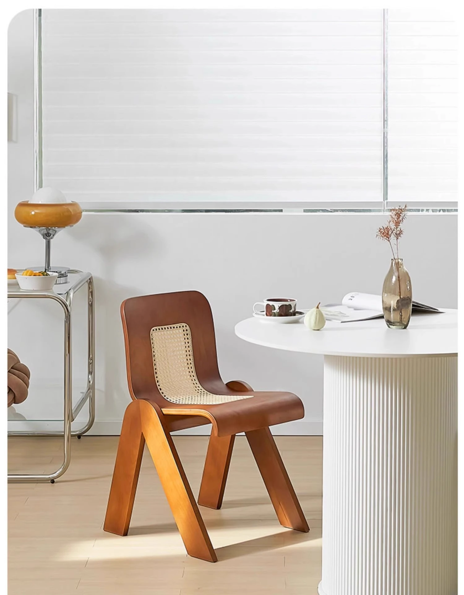 Nordic Rattan Dining Chair - Vintage C-Shaped Modern Home Chair with Retro Backrest, Perfect for Wabi-Sabi Style Makeup and Dressing Room