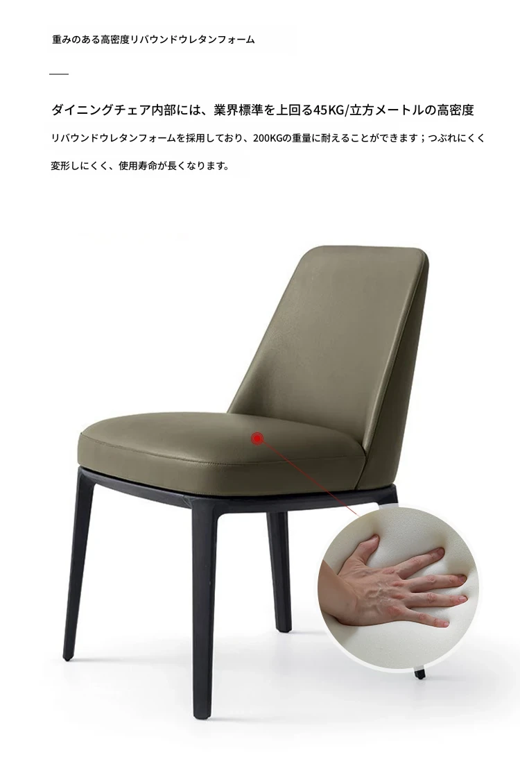 北欧スタイルの無垢材とレザーのダイニングチェア|モダンシンプルなデザイン|カフェやホテルにぴったりのリラックスチェア|おしゃれで快適なひとときをお届けします!