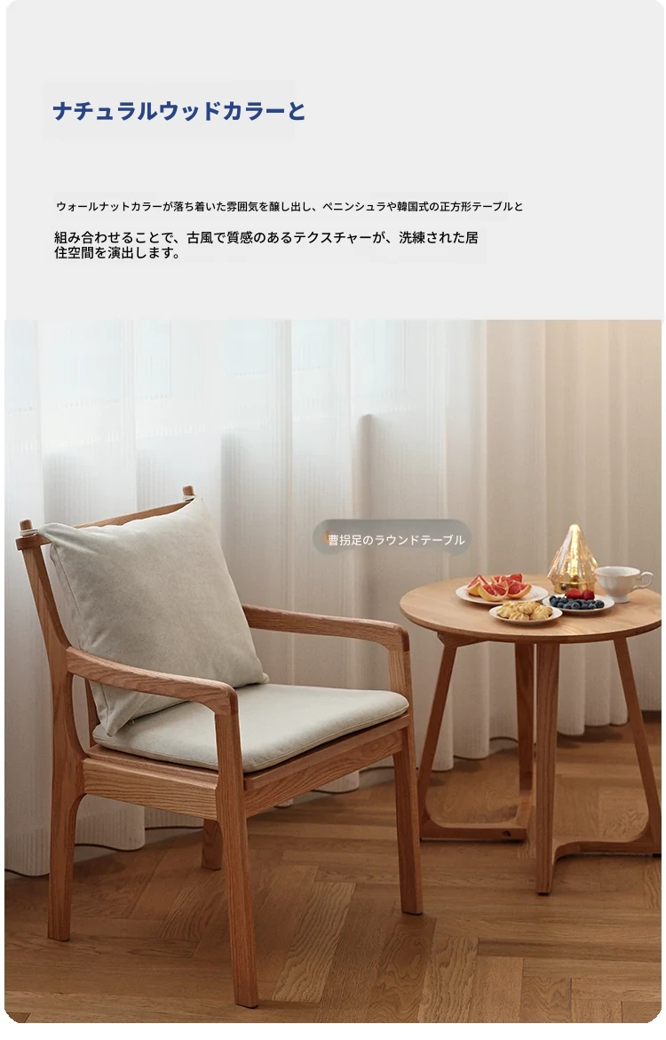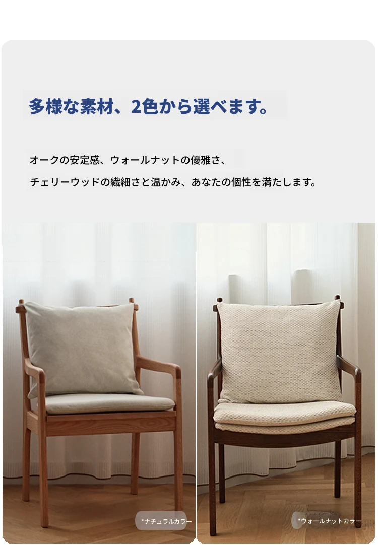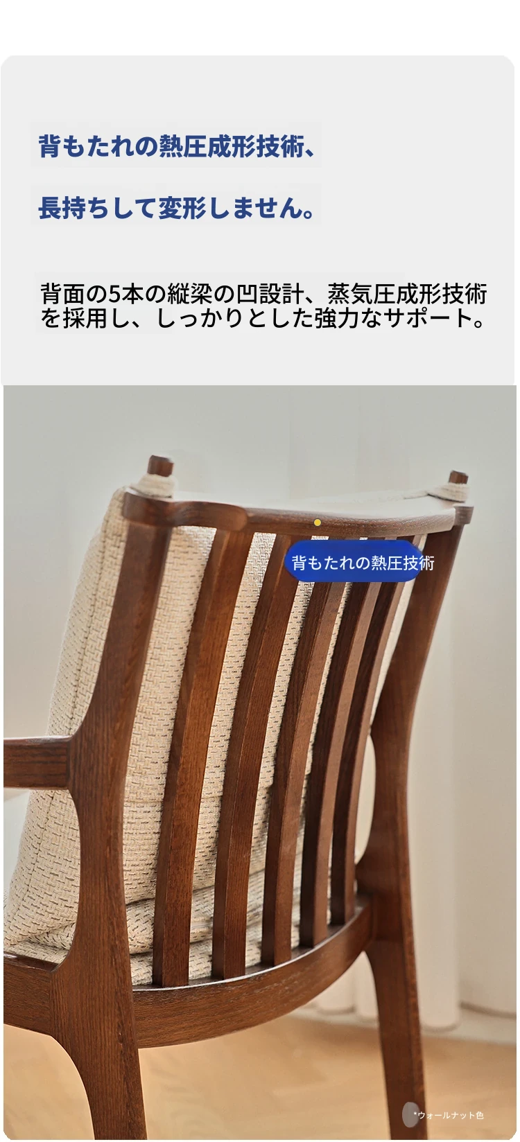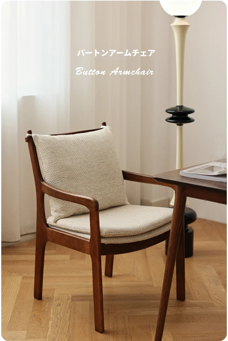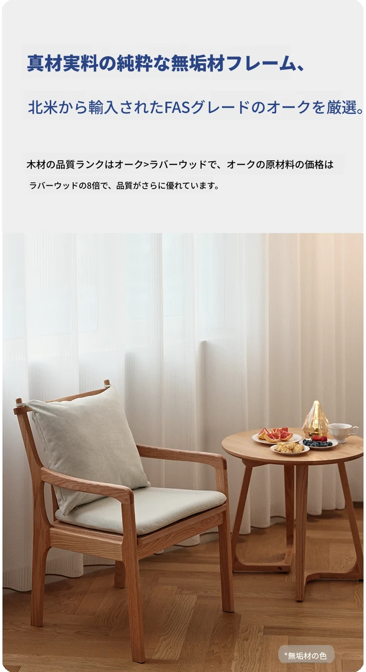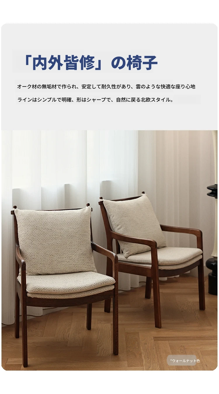 北欧スタイルの無垢材ダイニングチェア|快適な背もたれとアームレスト付き|リラックスできるデスクチェア|オーク材使用で高級感溢れる|勉強や作業に最適な一脚!