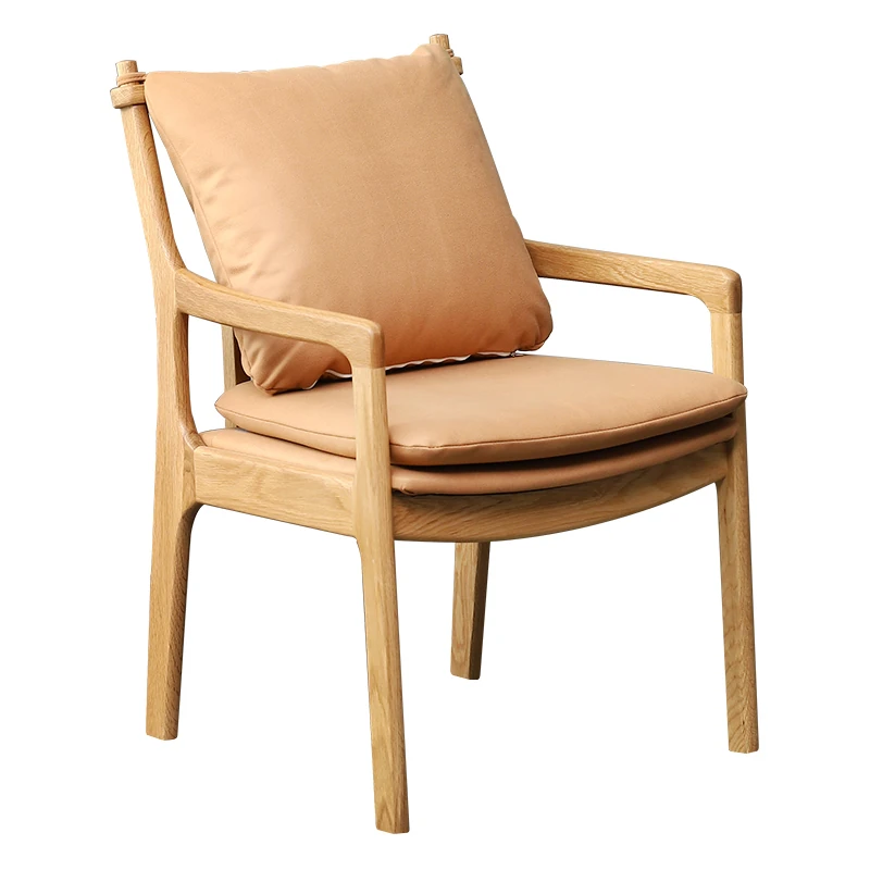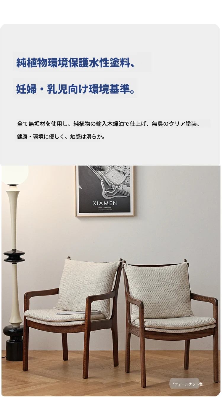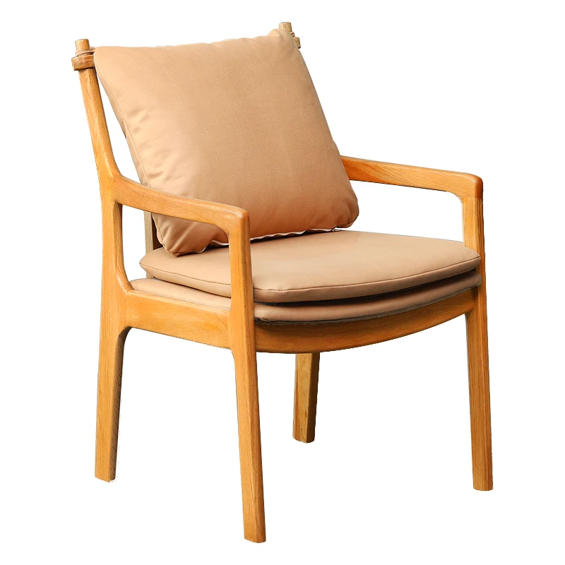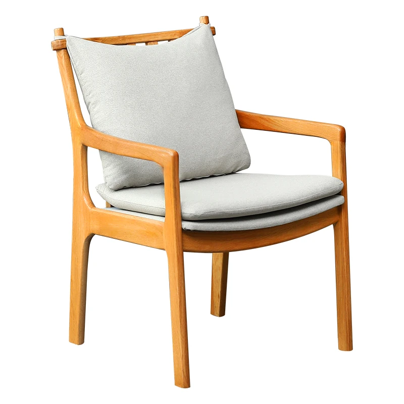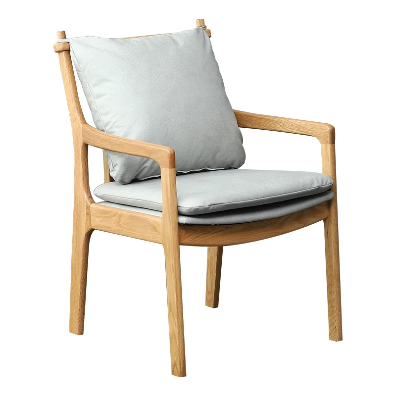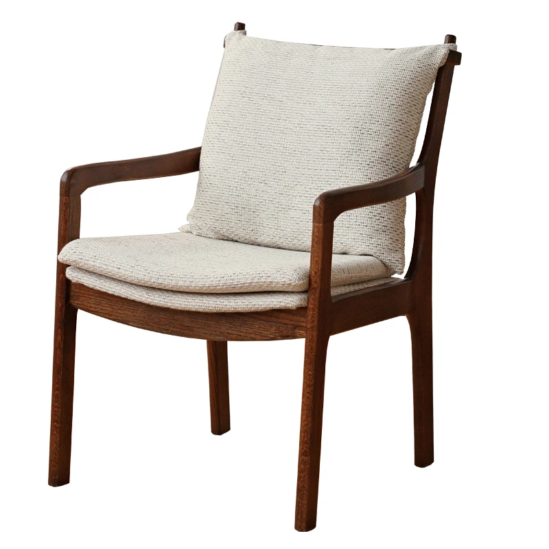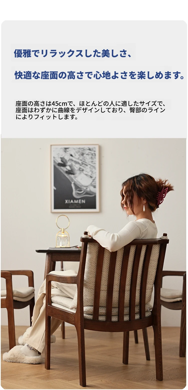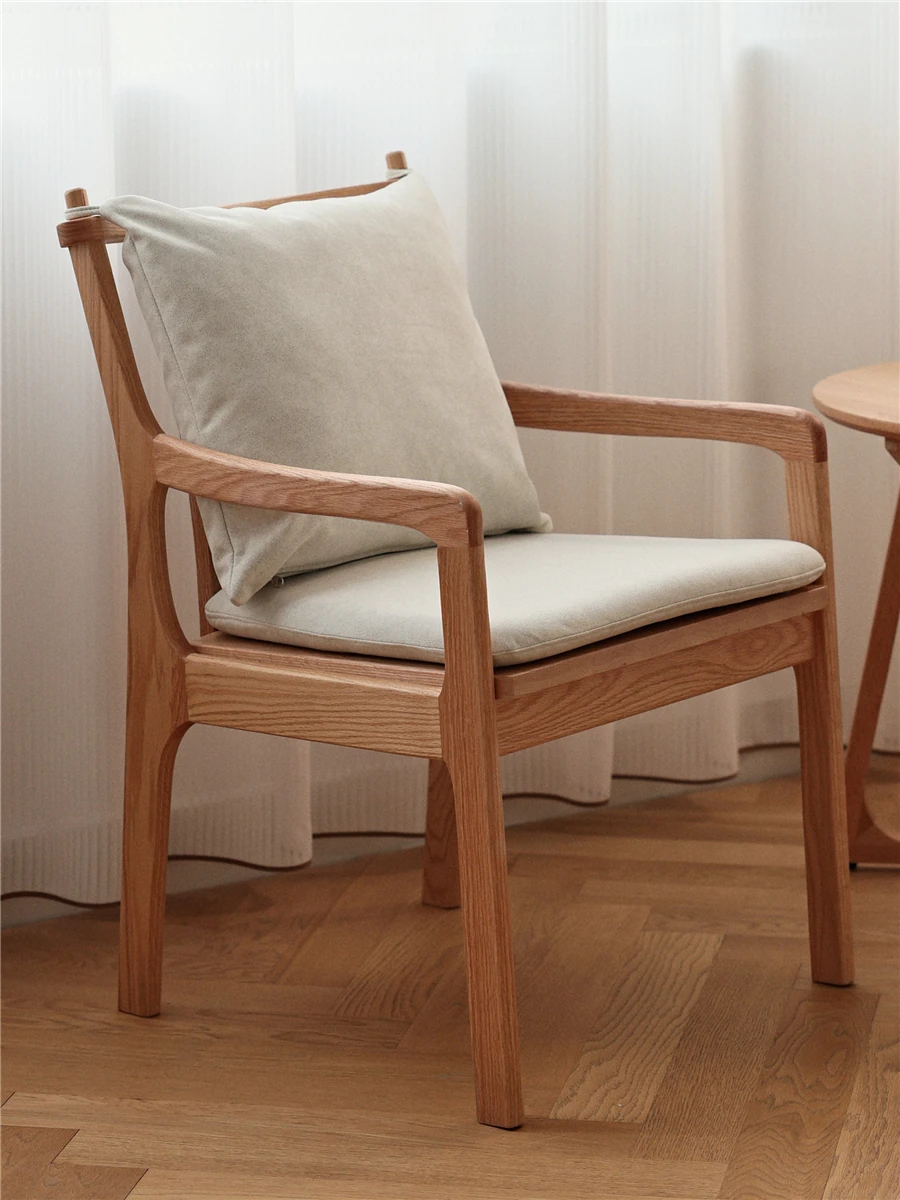 北欧スタイルの無垢材ダイニングチェア|快適な背もたれとアームレスト付き|リラックスできるデスクチェア|オーク材使用で高級感溢れる|勉強や作業に最適な一脚!