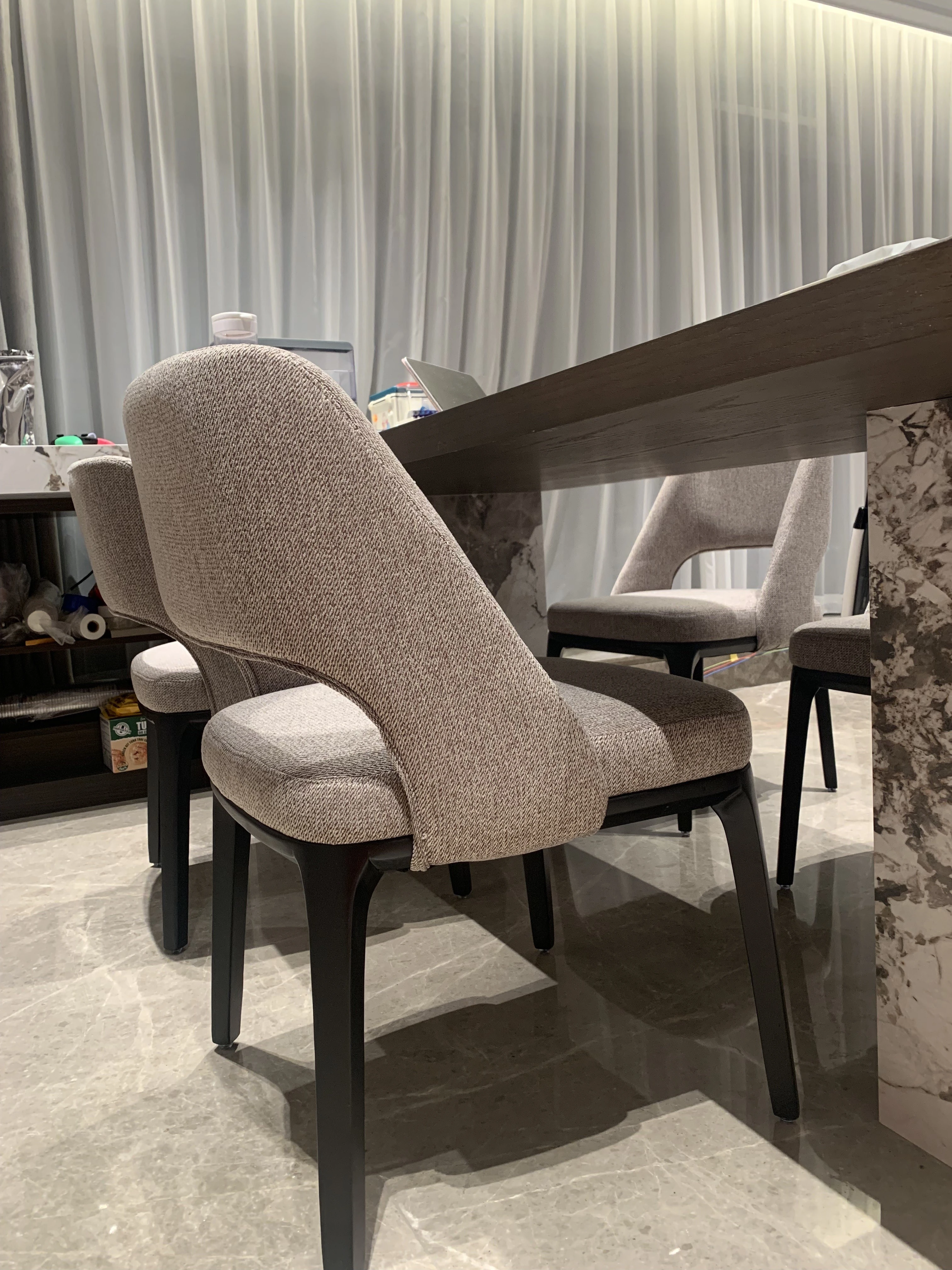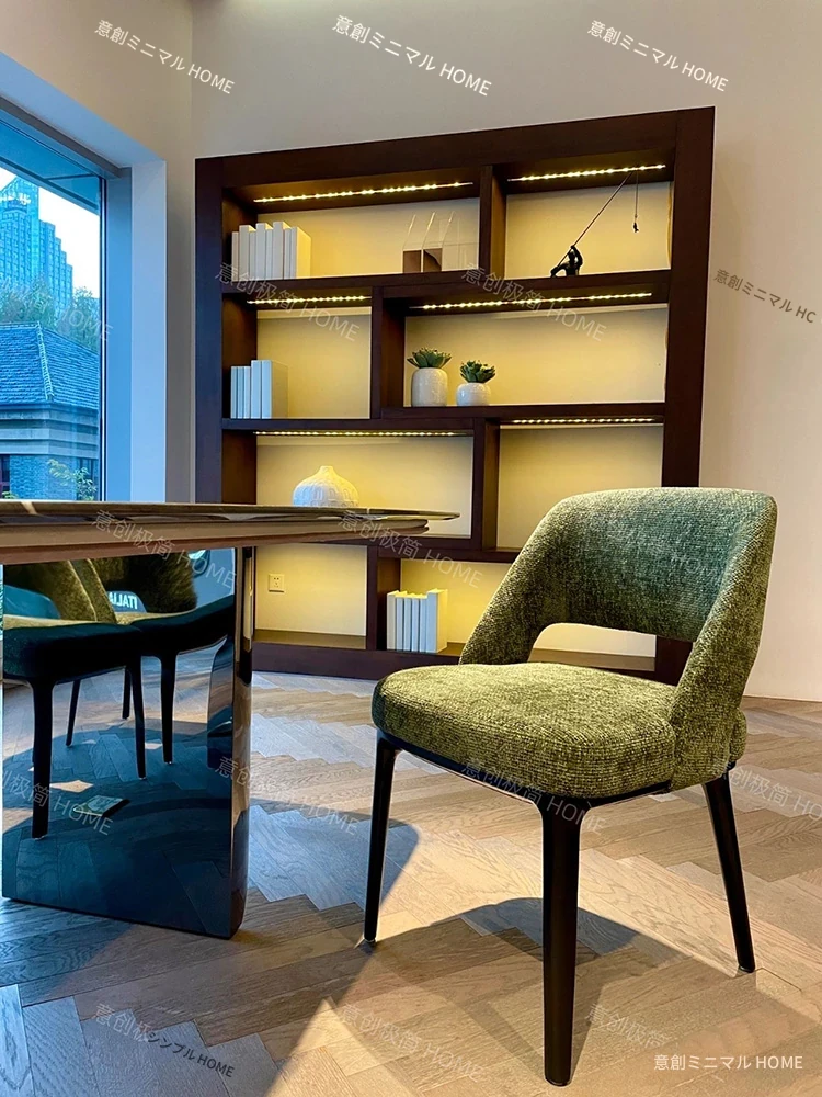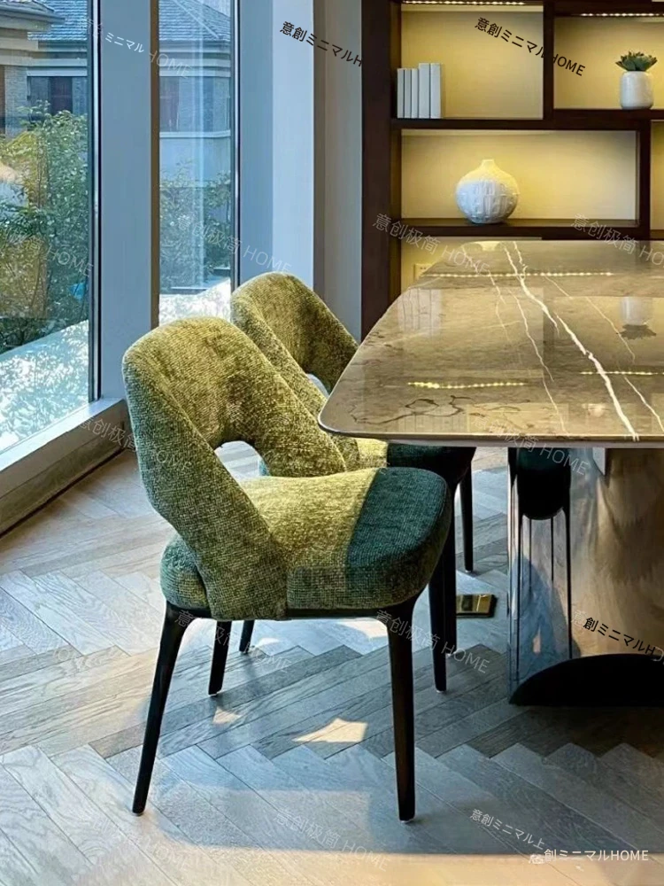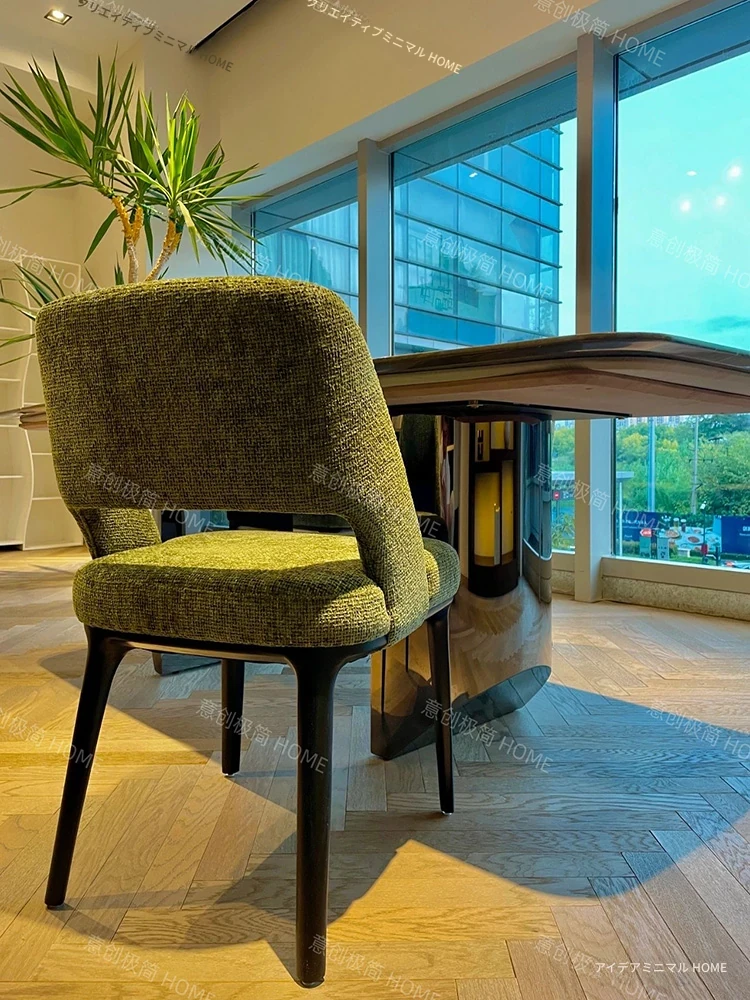 北欧風の無垢材ダイニングチェア|イタリアンスタイルのラグジュアリー|家庭用レストランにぴったり|デザイナーが手掛けたシンプルでリラックスできるファブリックチェア