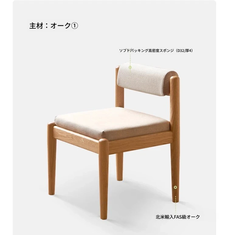 北欧スタイルの無垢材ティーチェア - オークの原木風、低背もたれデザインで小スペースにも最適!リビングやダイニングにぴったりのシングルチェア。シンプルでおしゃれなインテリアを演出します。