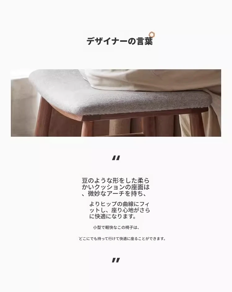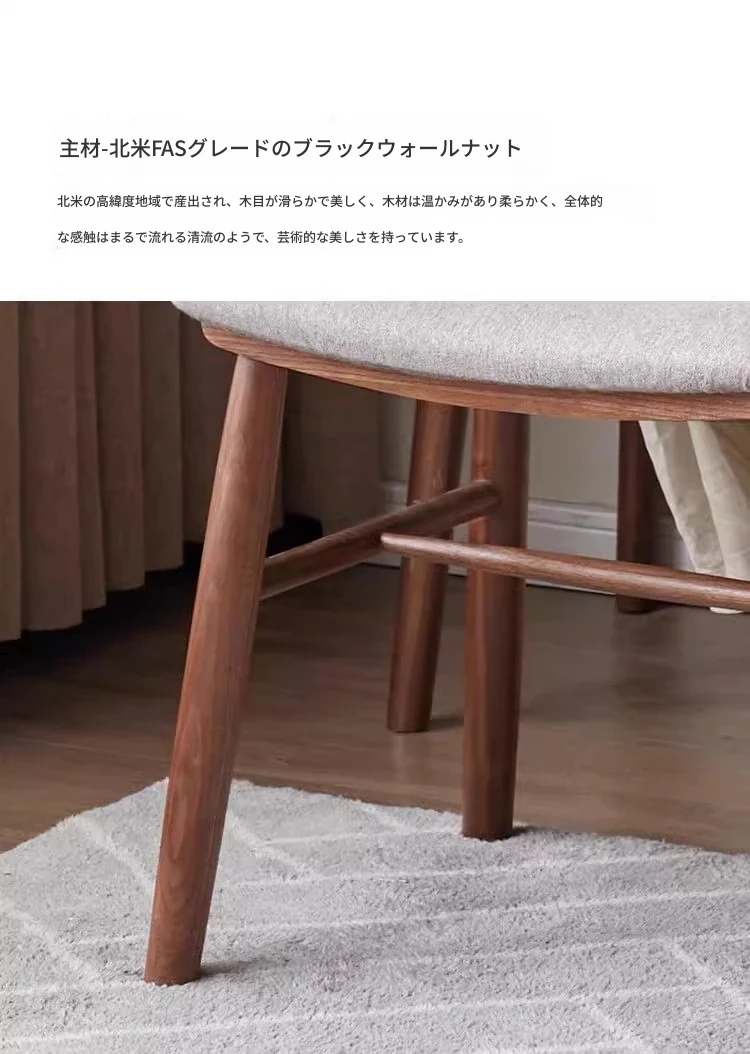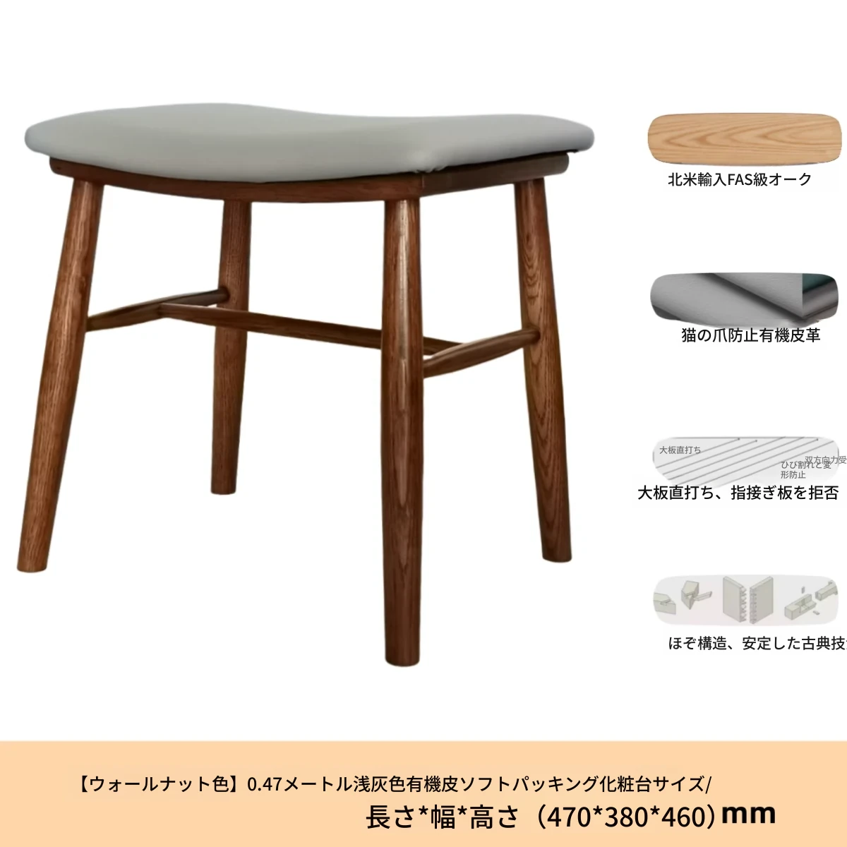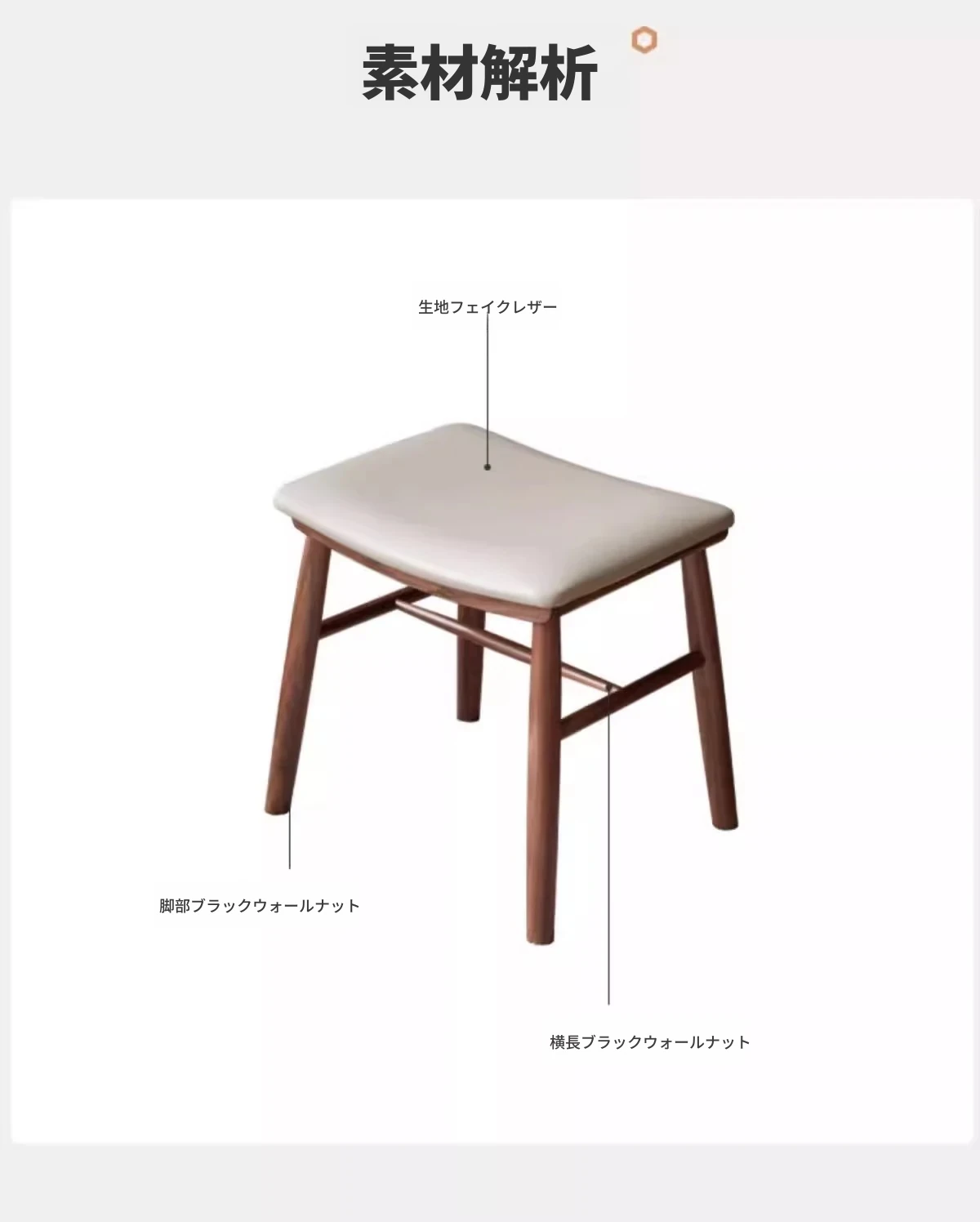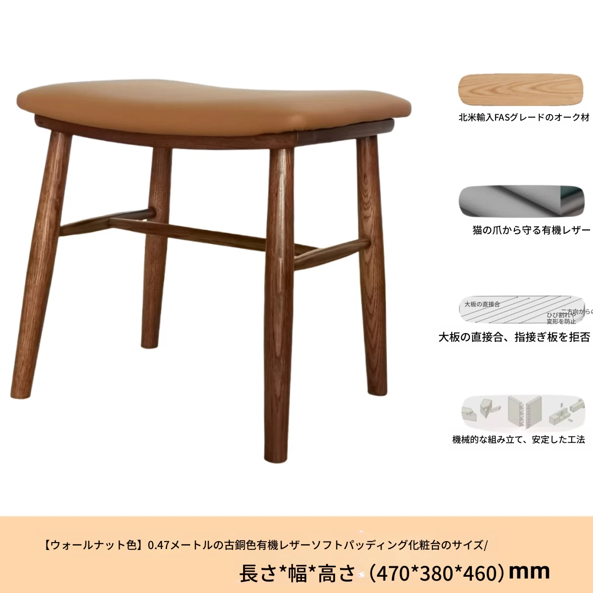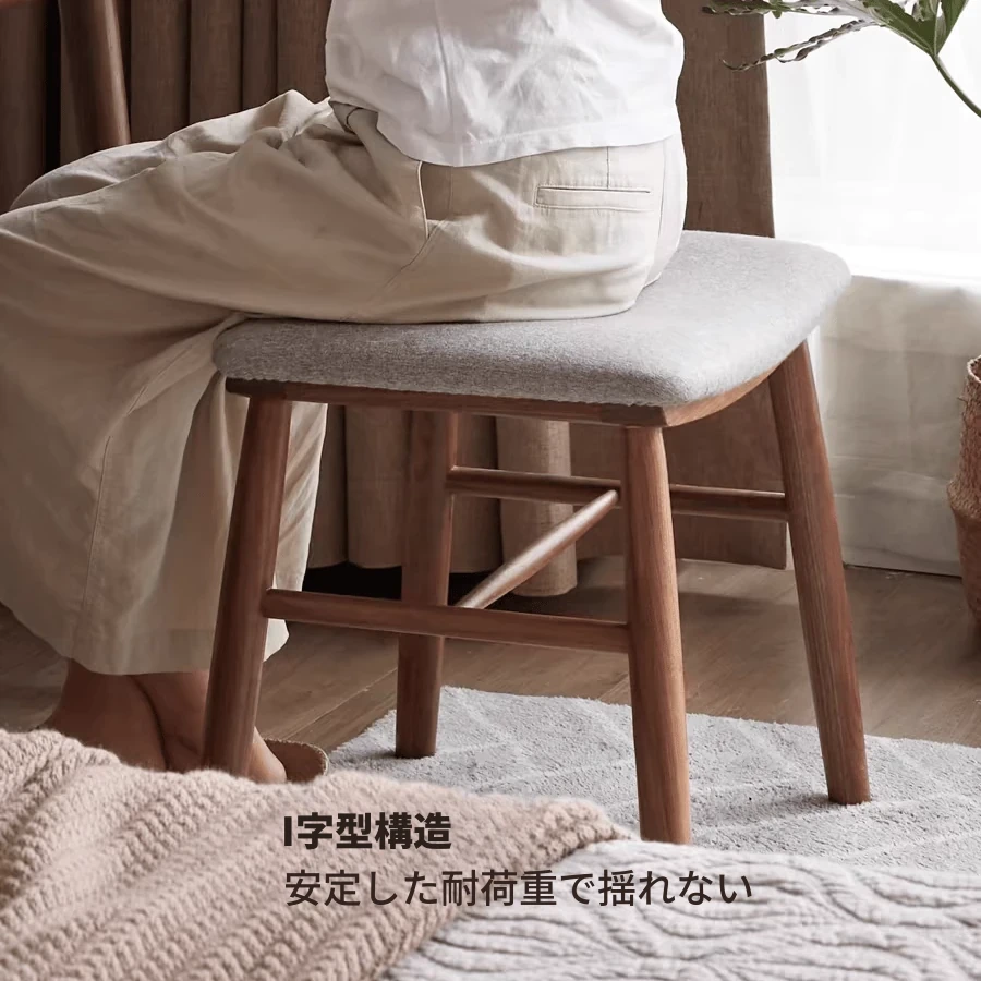 北欧風の無垢材化粧台スツール - ブラックウォールナットの高級感溢れるデザイン!シンプルでスタイリッシュな日本式の大きなクッション付きスツール。寝室にぴったりのアイテムで、毎日のメイクアップをもっと楽しく!