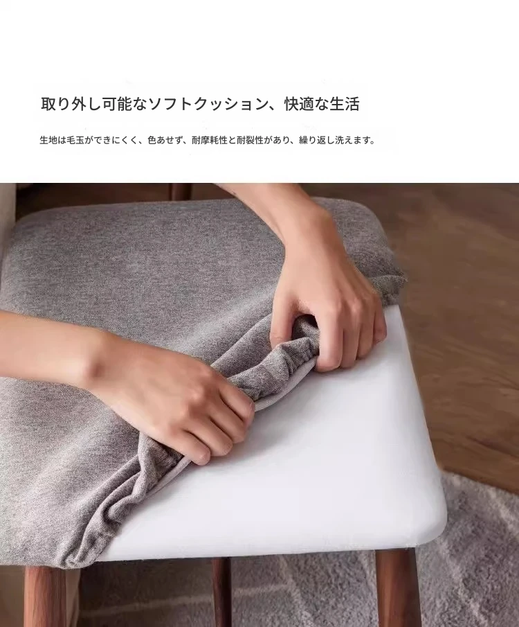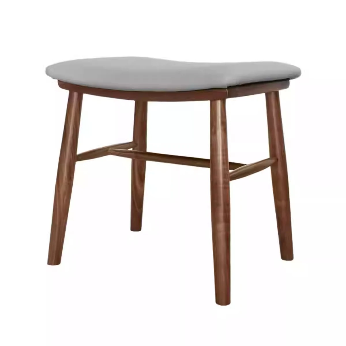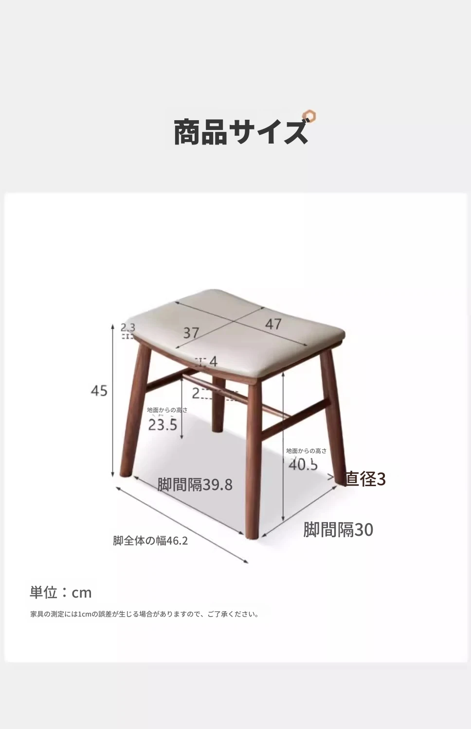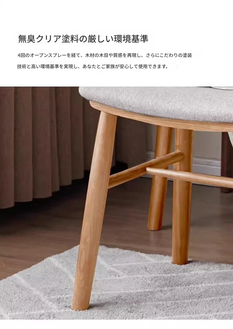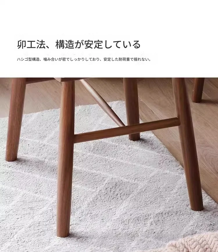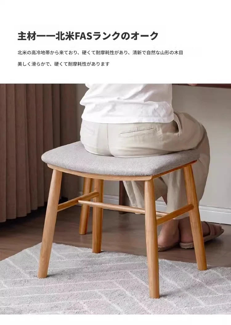 北欧風の無垢材化粧台スツール - ブラックウォールナットの高級感溢れるデザイン!シンプルでスタイリッシュな日本式の大きなクッション付きスツール。寝室にぴったりのアイテムで、毎日のメイクアップをもっと楽しく!
