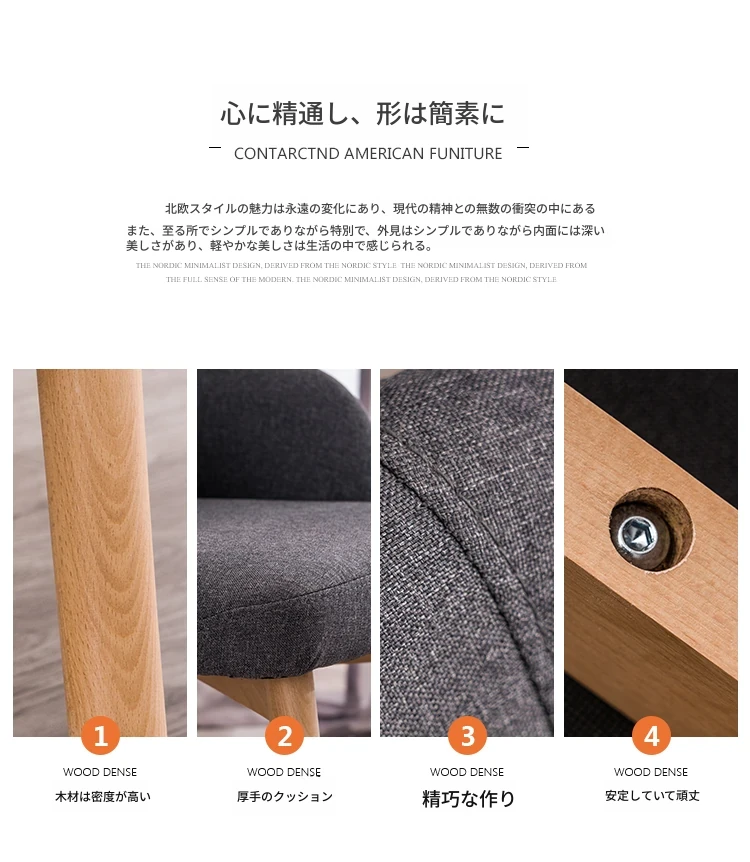 北欧風デザインの布張りカフェチェア|リラックスできる座り心地の良い木製ダイニングチェア|現代的でシンプルなスタイル|家庭やオフィスに最適なコンピューターチェア【おしゃれで快適な空間を演出】