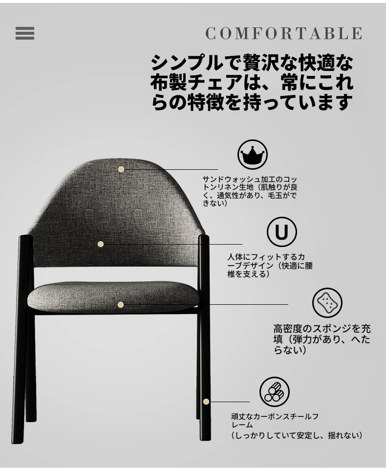 ダークグレー布+黒い椅子フレーム(1脚) ダークグレー布+黒い椅子フレーム(1脚)