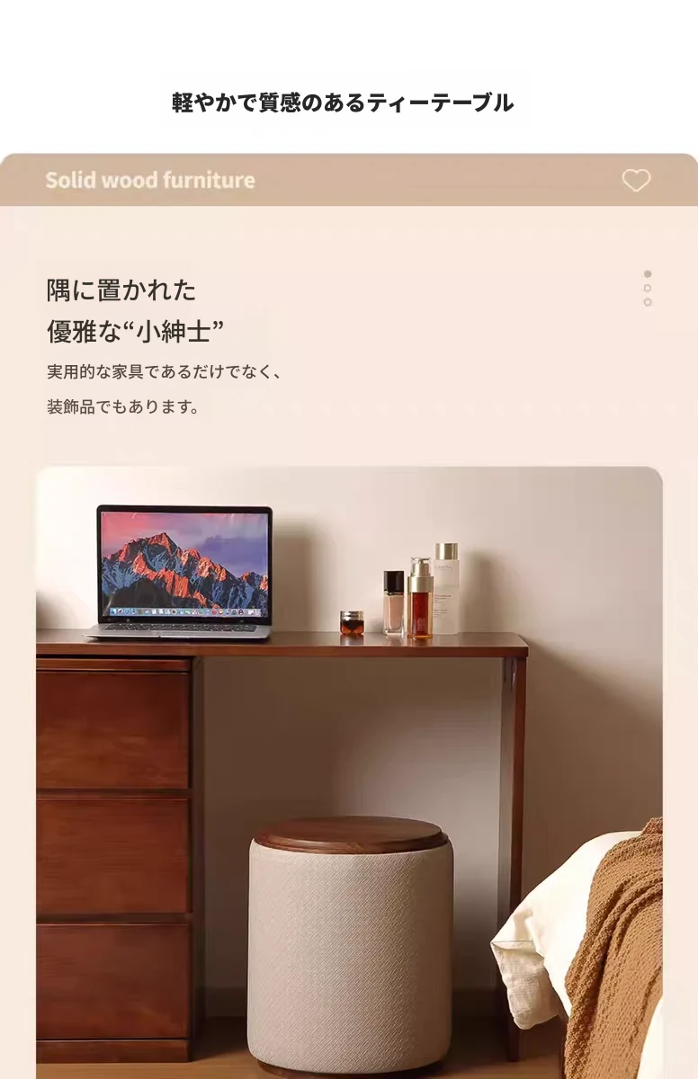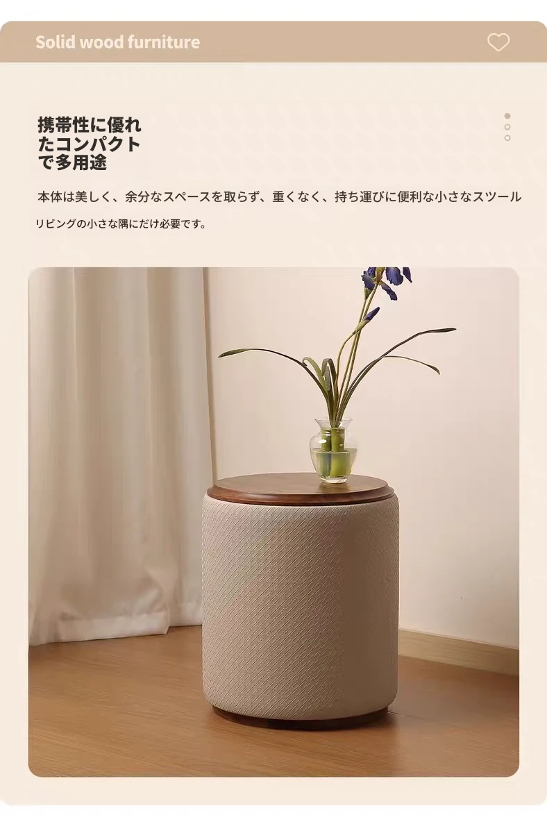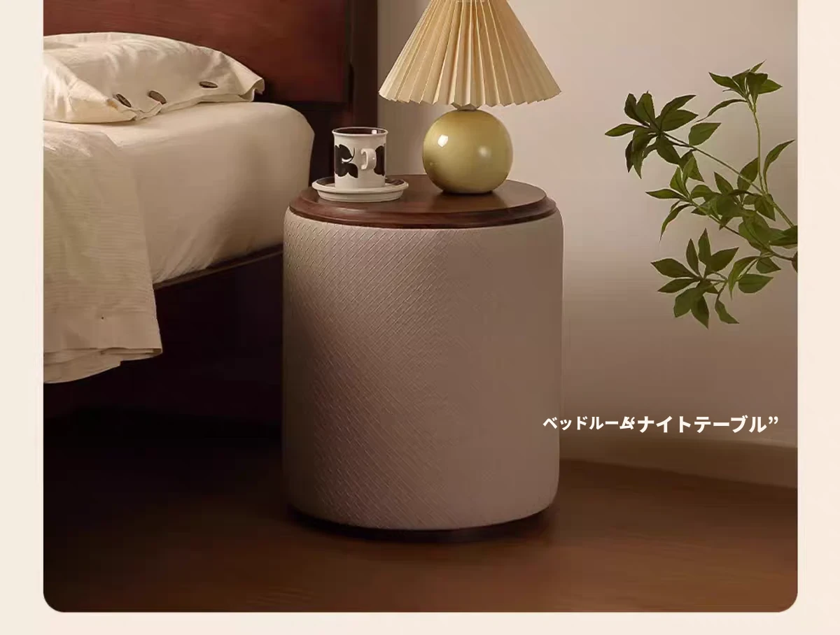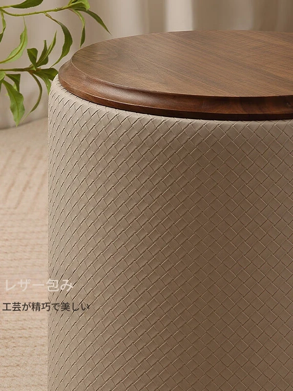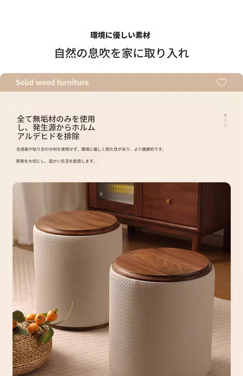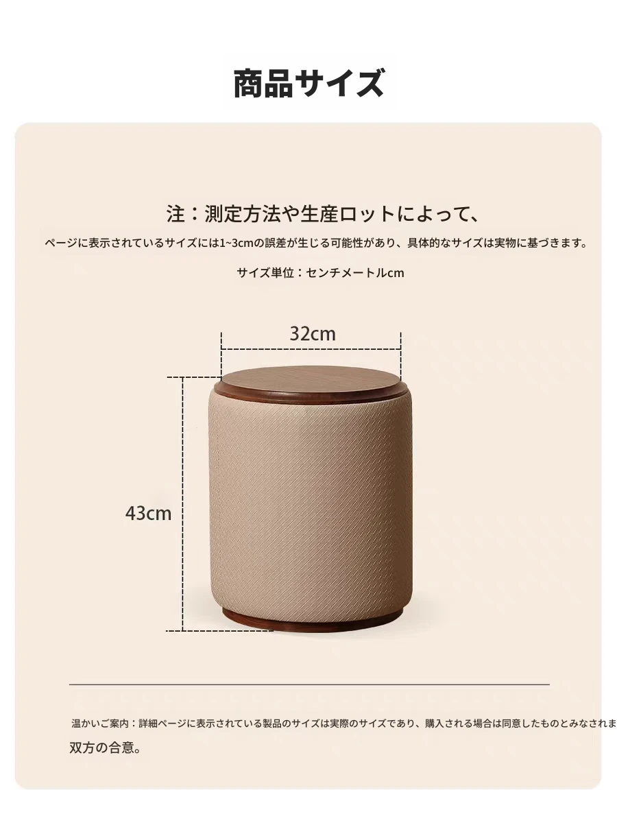 北米産ブラックウォールナットのラウンドスツール|贅沢なレザー仕上げで、寝室や化粧台に最適なソフトパッキングの低いスツール!快適さとスタイルを兼ね備えた一品です。
