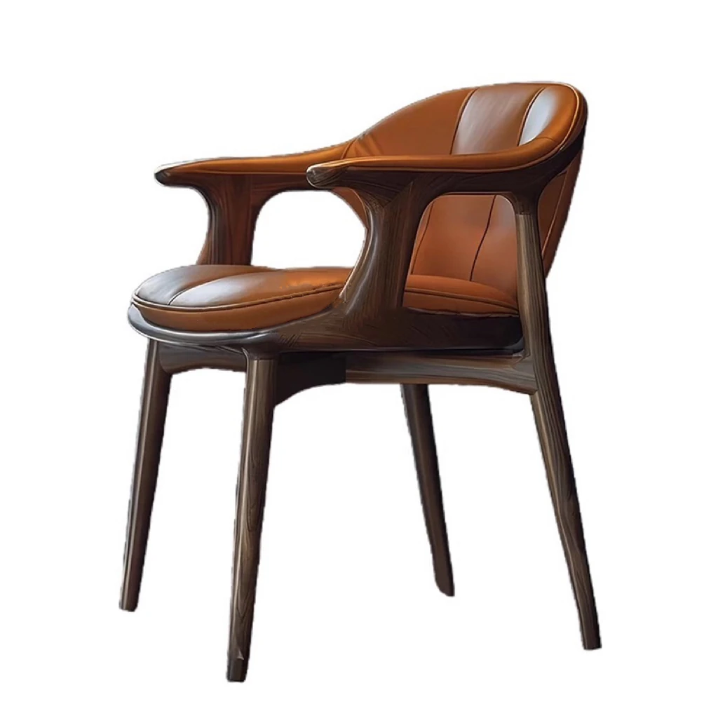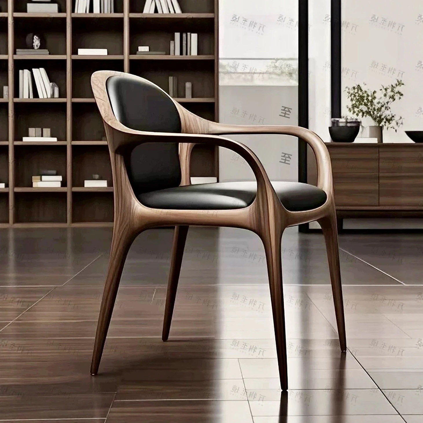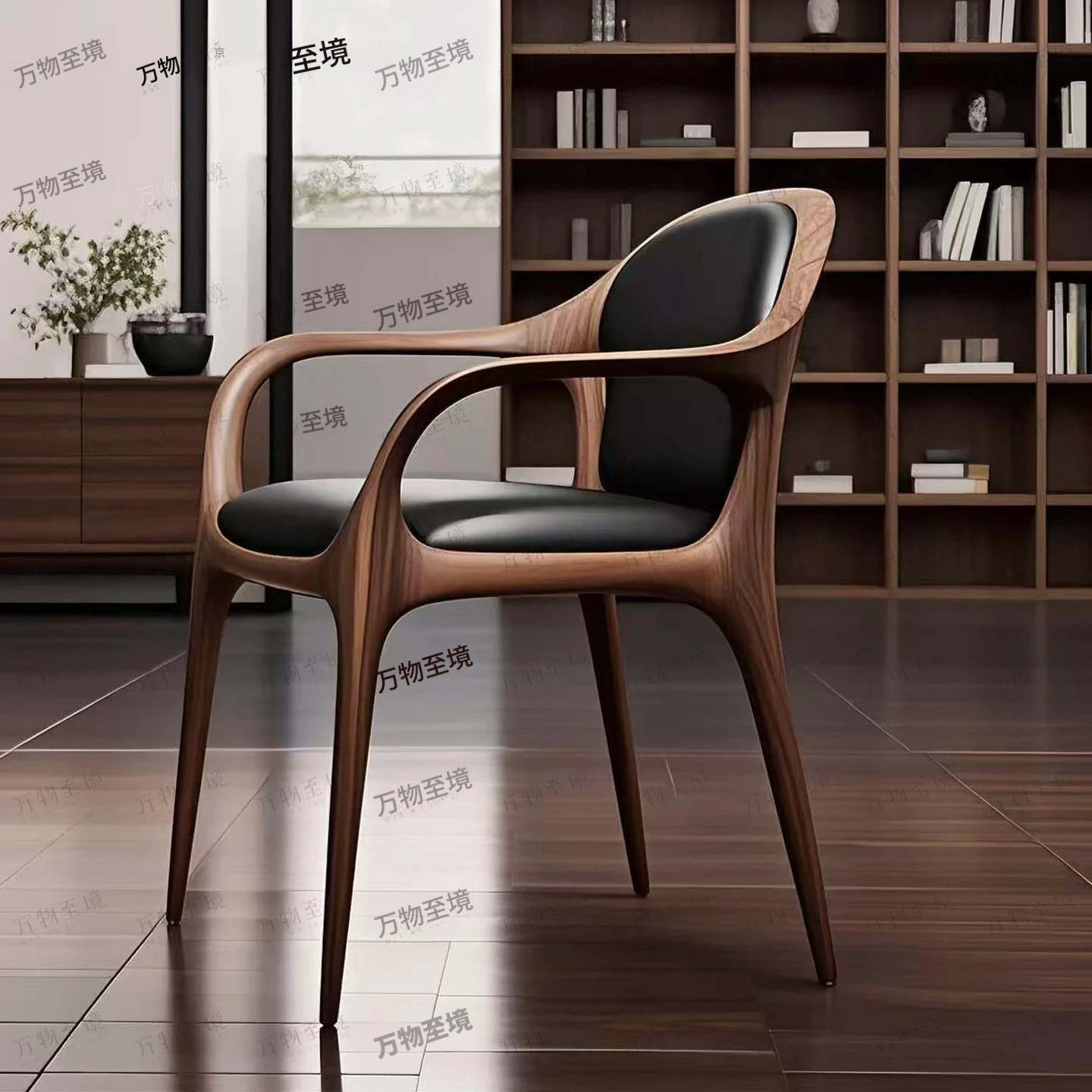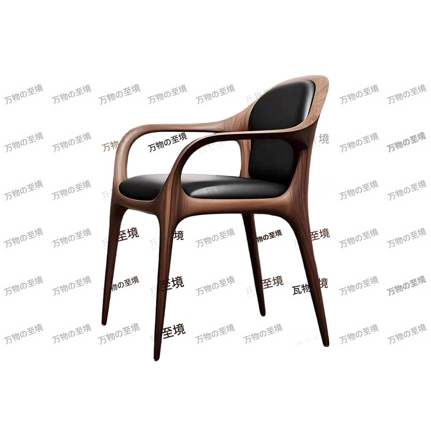 北米産ブラックウォールナット無垢材ダイニングチェア イタリアンミニマリズムのリラックスアームチェア モダンなシンプルデザイン 本革使用の読書椅子&ティーチェアで、優雅なひとときをお楽しみください!
