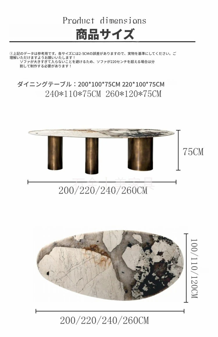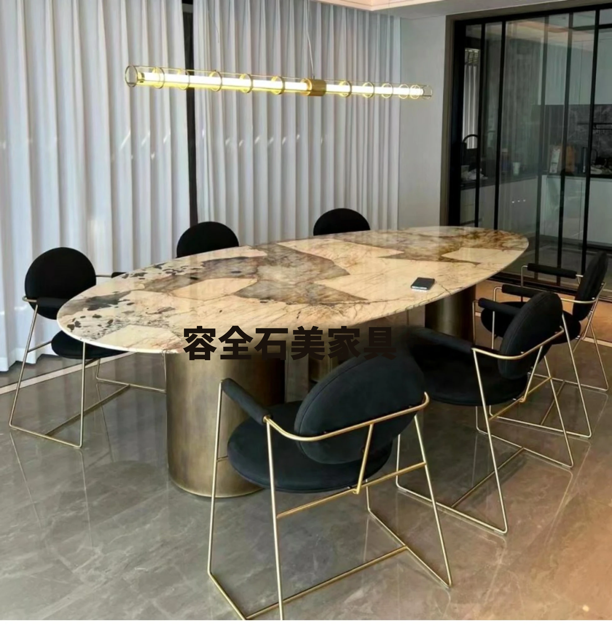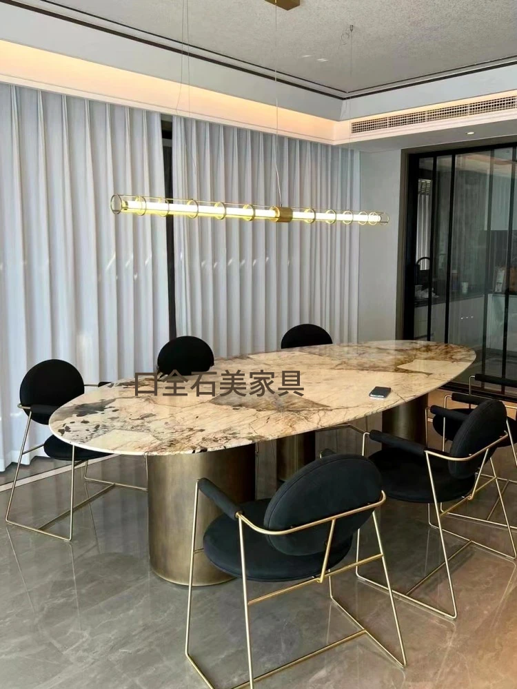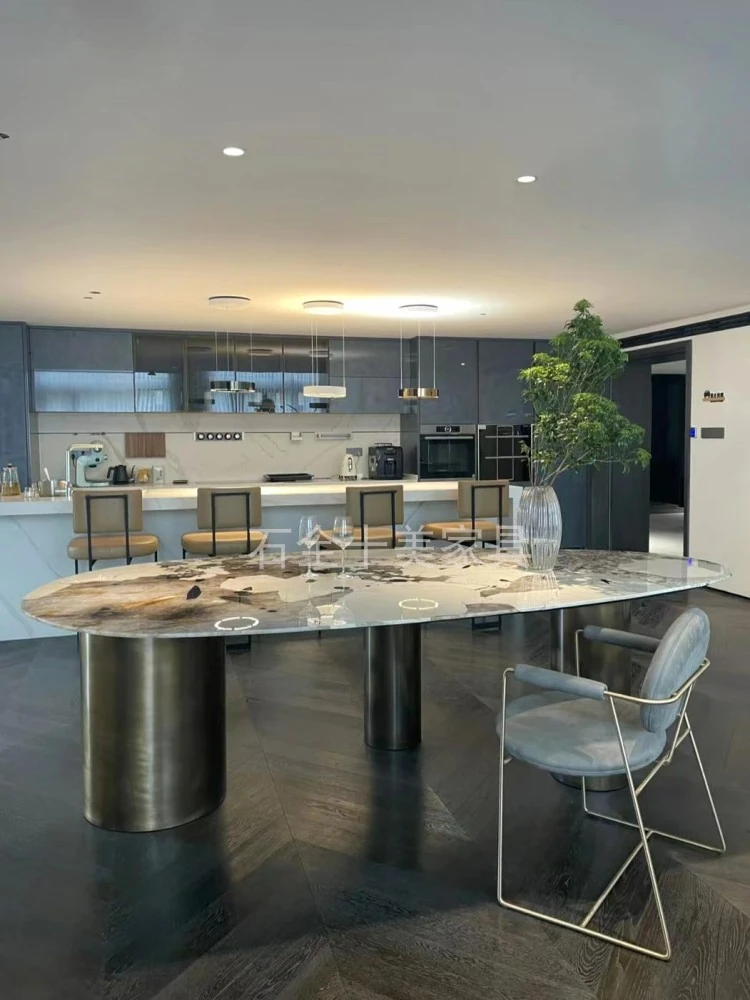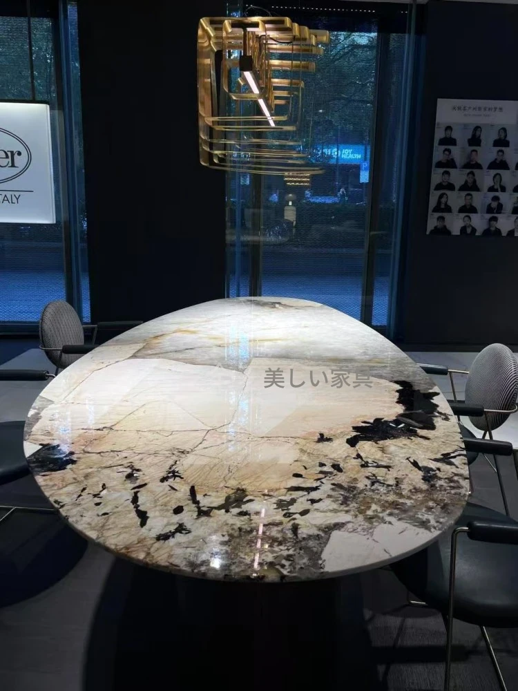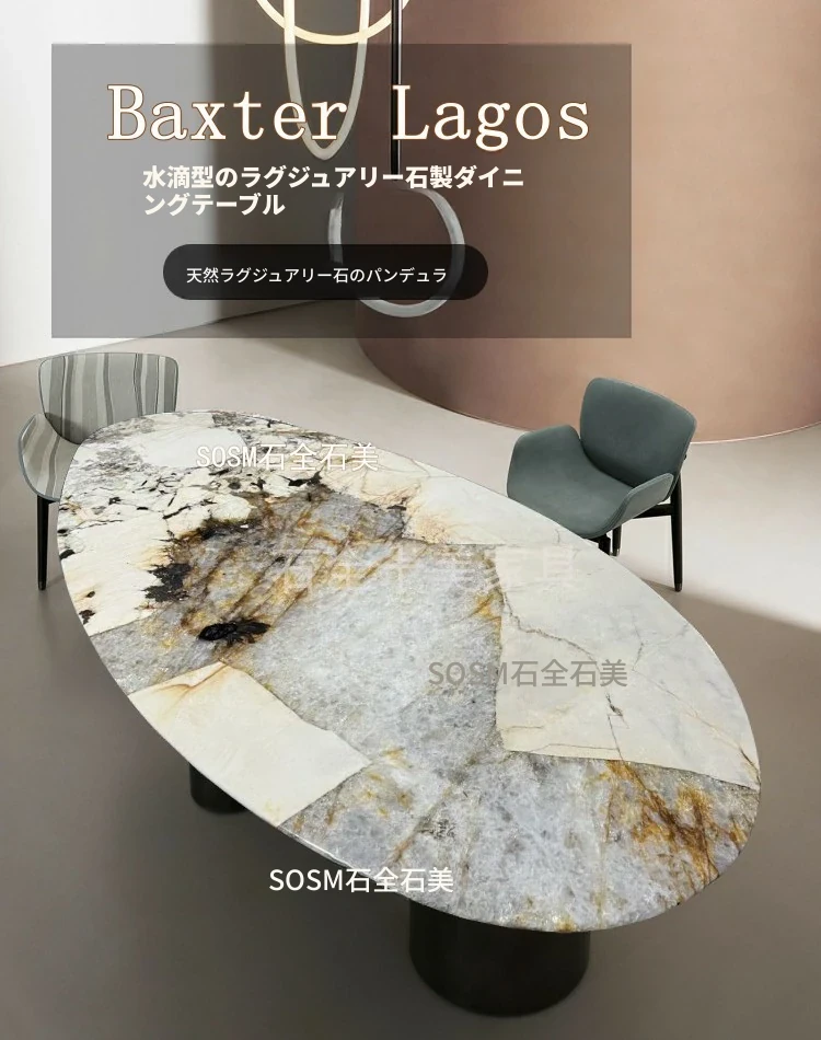 パンドラの水滴型ラグジュアリー石製ダイニングテーブル - 天然大理石使用、エレガントなオーバルデザイン、高級感あふれる別荘スタイルの必見アイテム!