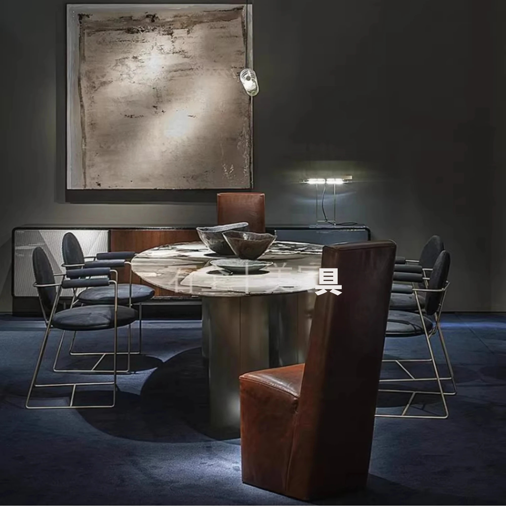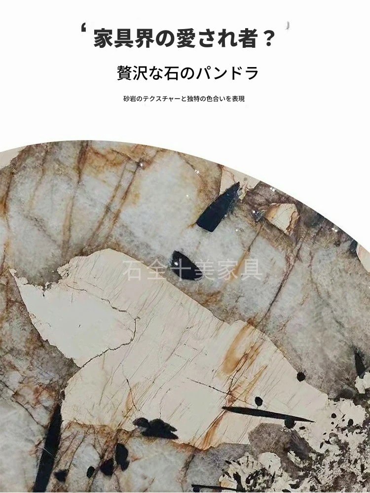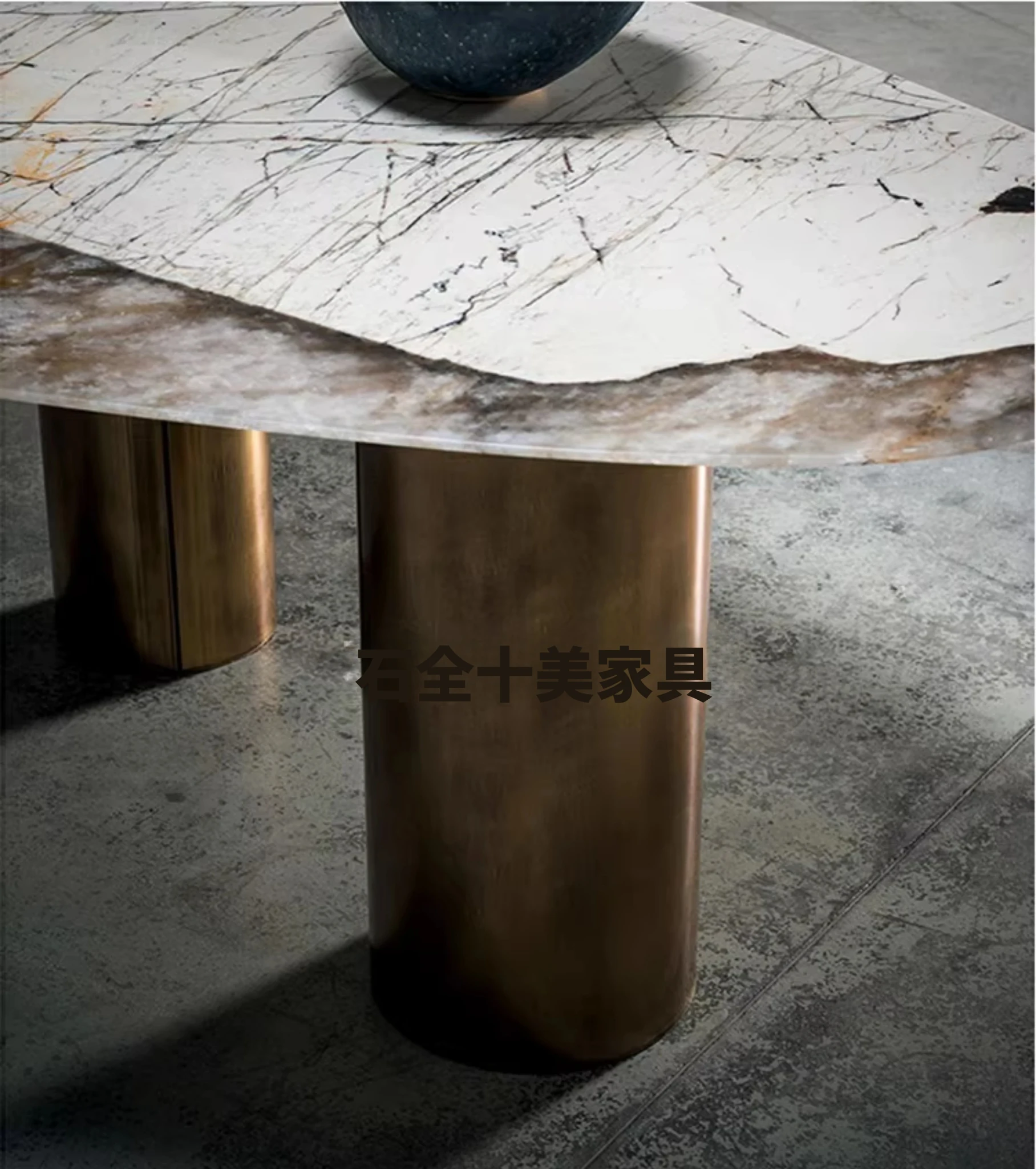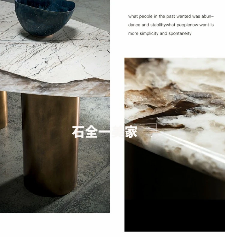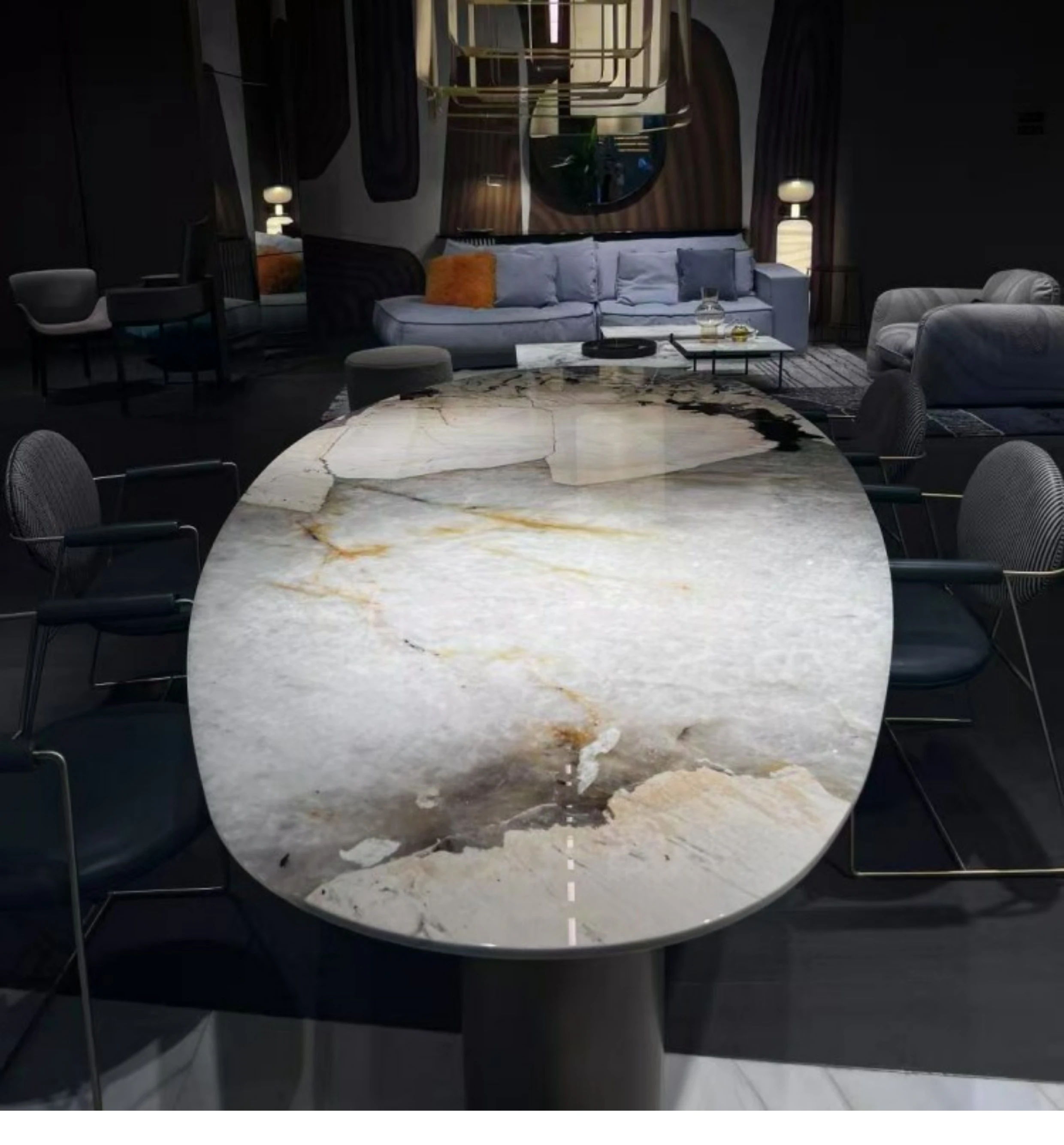 パンドラの水滴型ラグジュアリー石製ダイニングテーブル - 天然大理石使用、エレガントなオーバルデザイン、高級感あふれる別荘スタイルの必見アイテム!