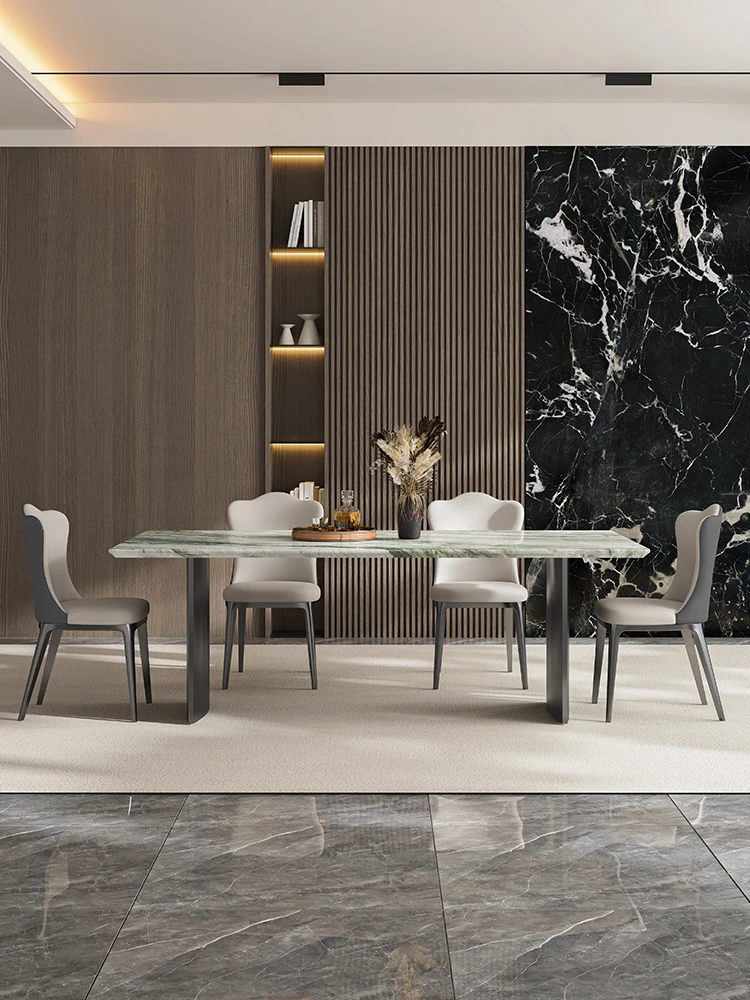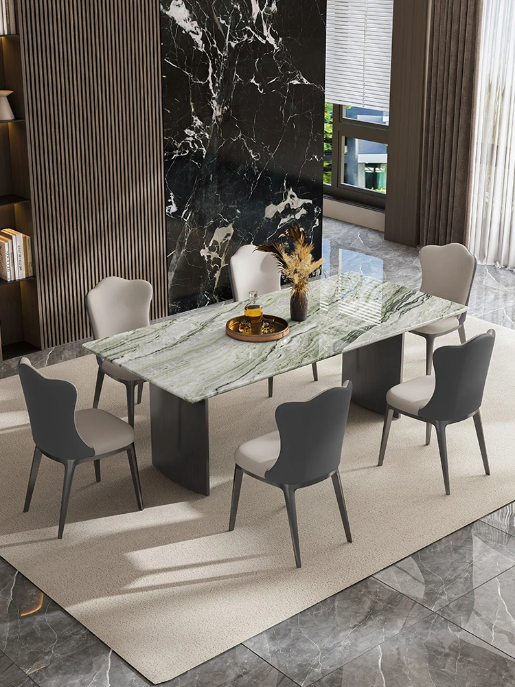 【グリーン・オブ・ウィルダネス】天然ラグジュアリーストーンダイニングテーブル+本革クラウドダイニングチェア*8