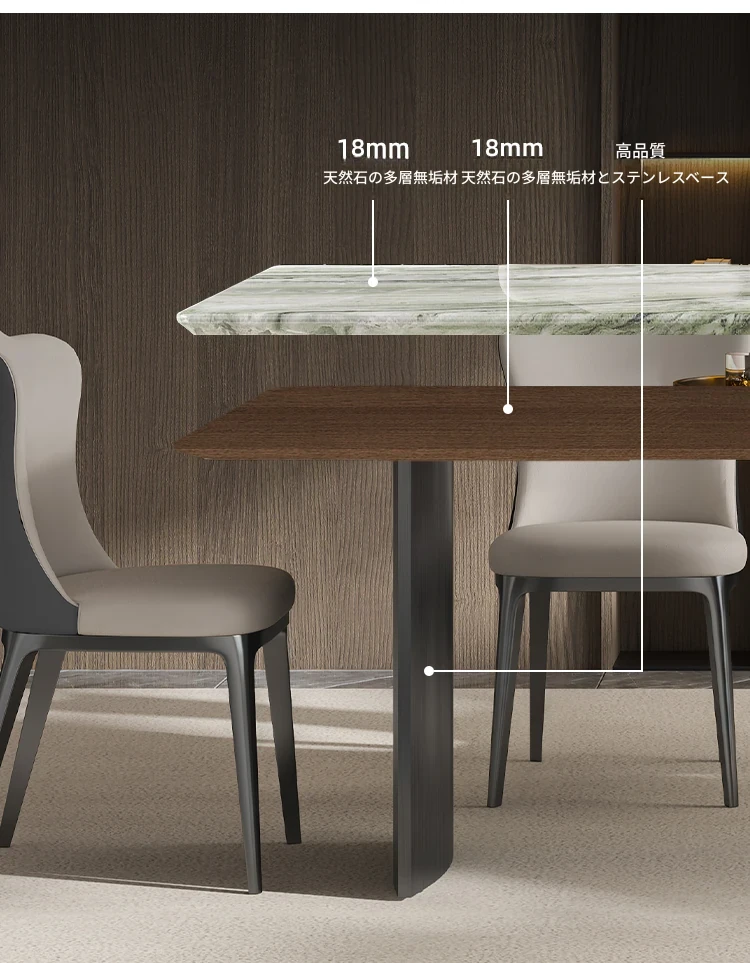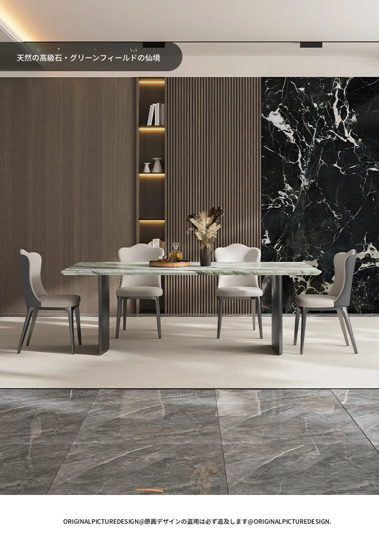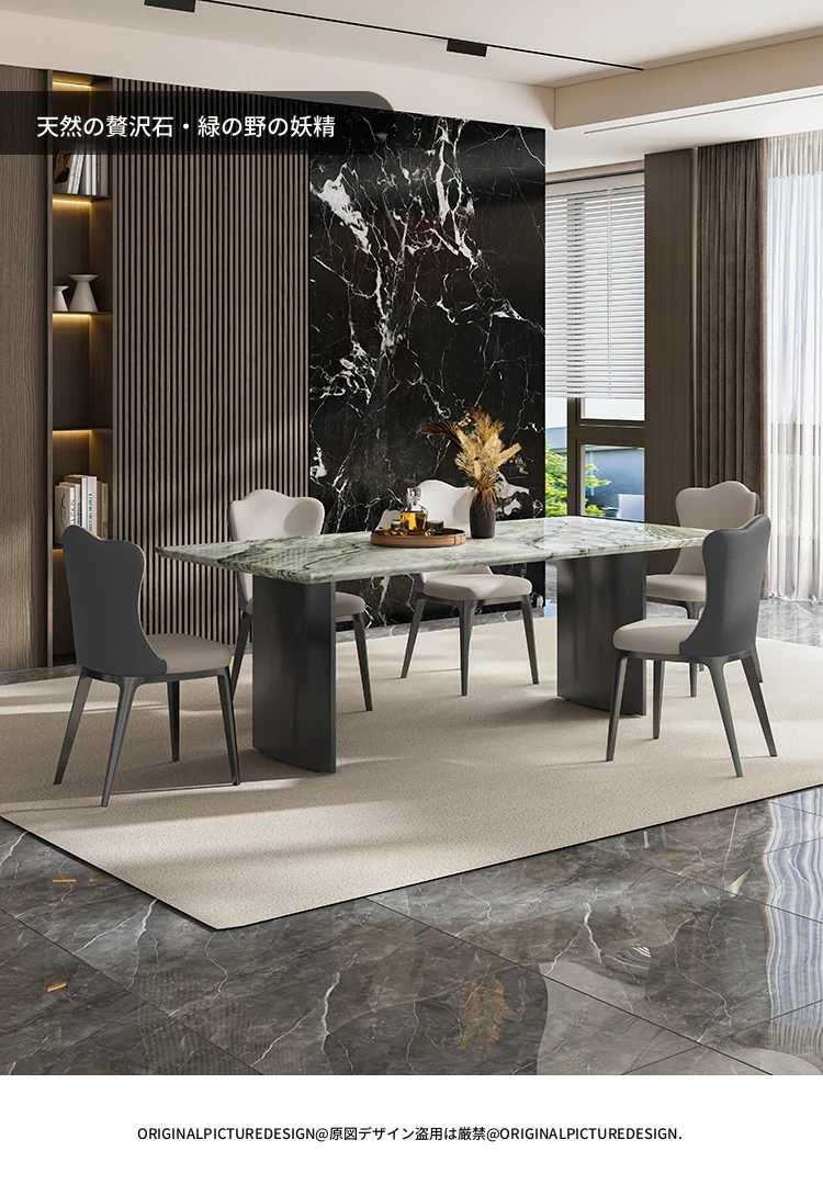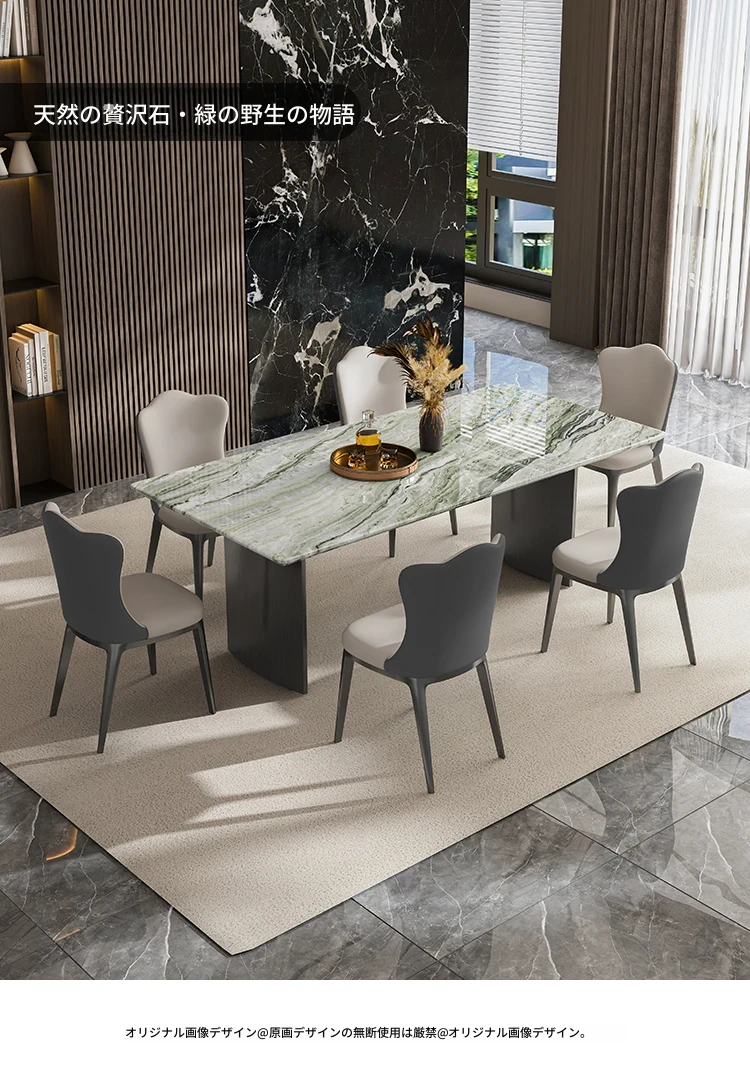 【グリーン・オブ・ウィルダネス】天然ラグジュアリーストーンダイニングテーブル+本革クラウドダイニングチェア*6