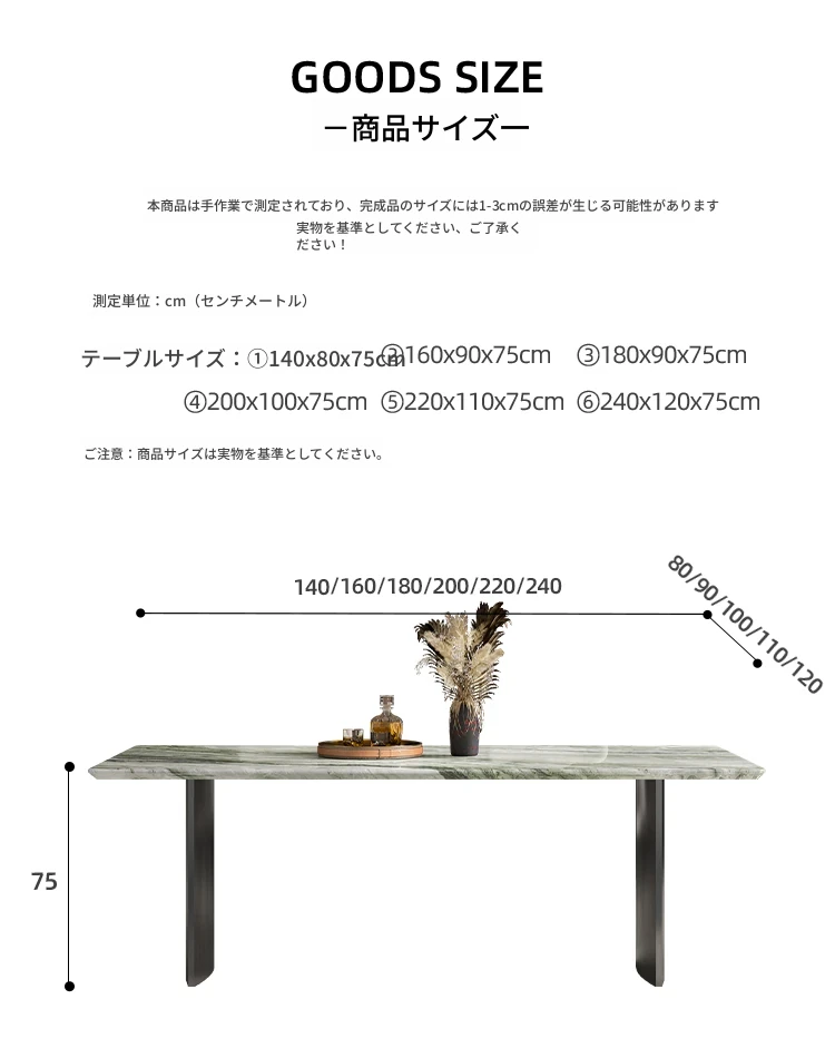 【グリーン・オブ・ウィルダネス】天然ラグジュアリーストーンダイニングテーブル