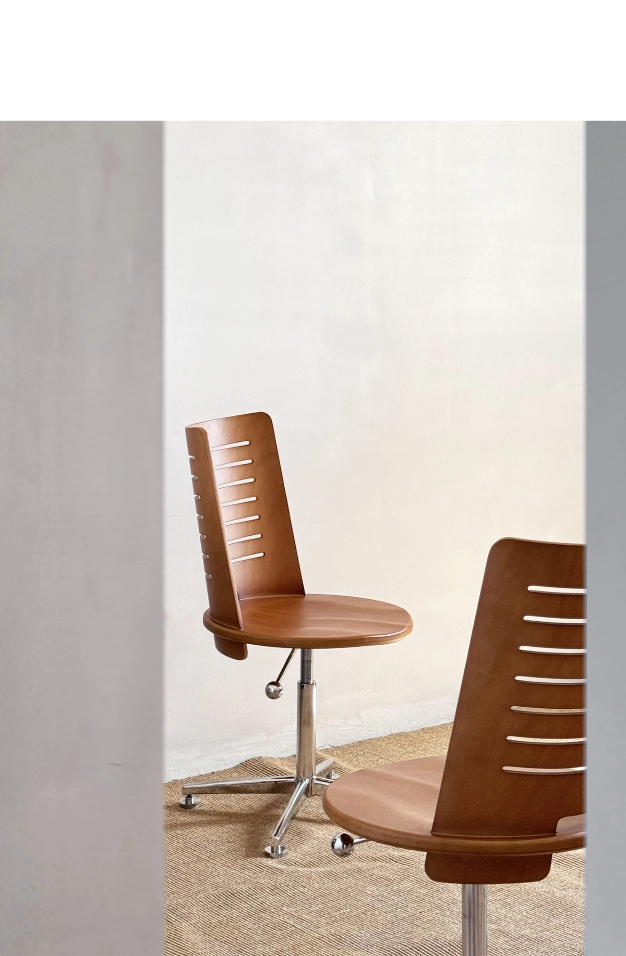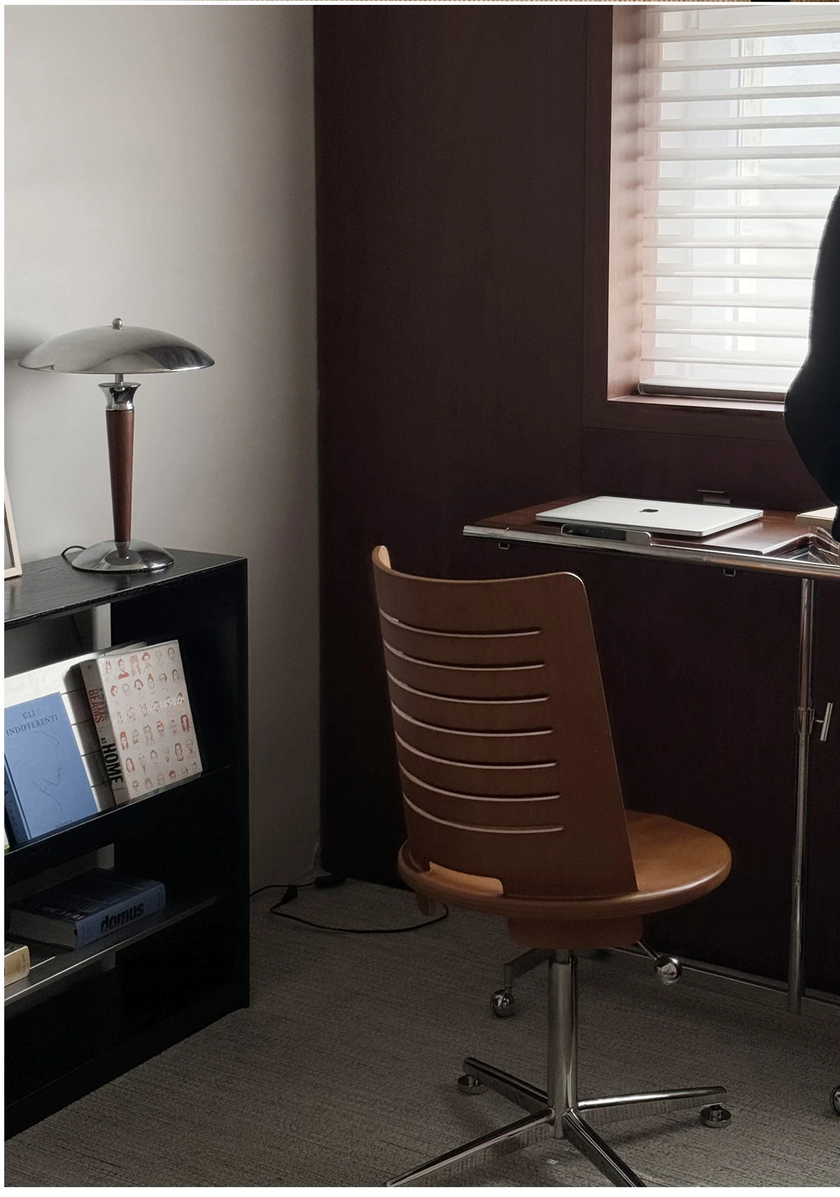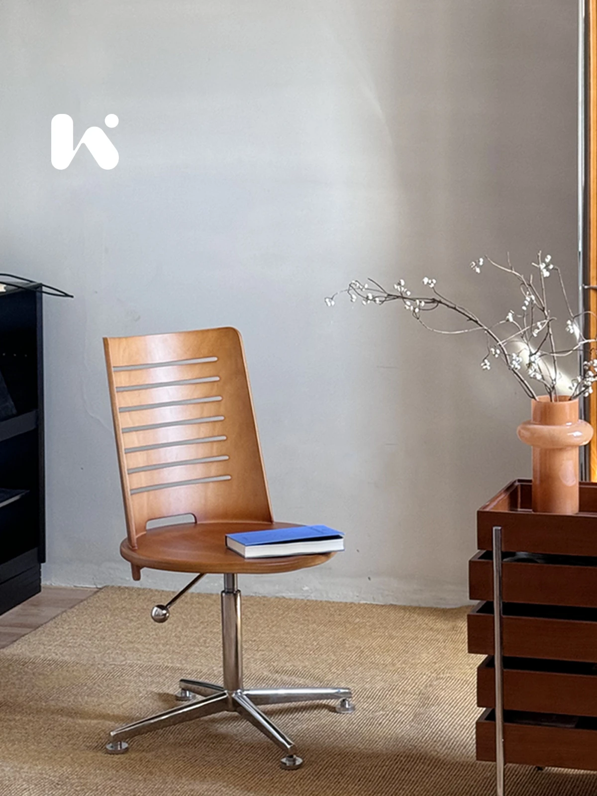 再物デザイン製作|ステンレス製の昇降可能なオフィスチェア・コンピューターチェア。古風な回転椅子で、家庭でも使える快適な背もたれ付き!スタイリッシュなデザインで、仕事もリラックスもサポートします。