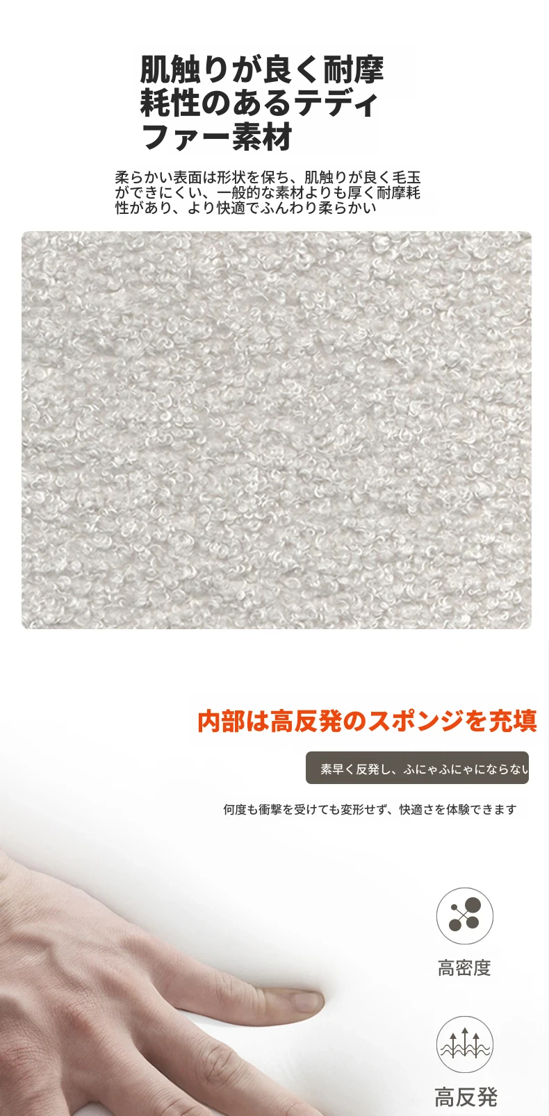 クリームホワイト固定タイプ【取り外し可能 洗濯可 折りたたみ背もたれ】