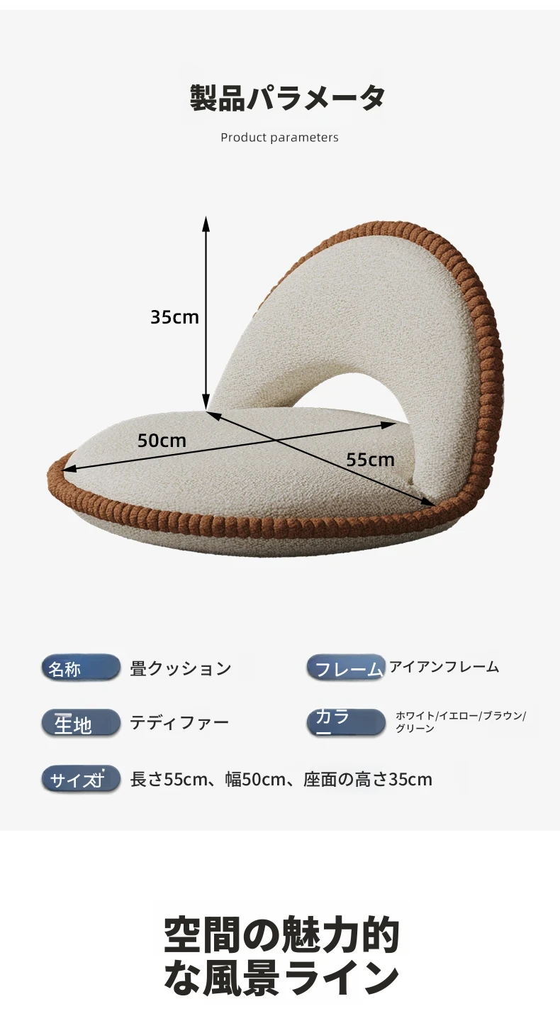 洗える取り外し可能なタタミクッション!快適な座り心地で、寝室やリビングにぴったり。回転・折りたたみ式の背もたれ付き、飾り窓やベッド上でも大活躍の一人用ソファ。
