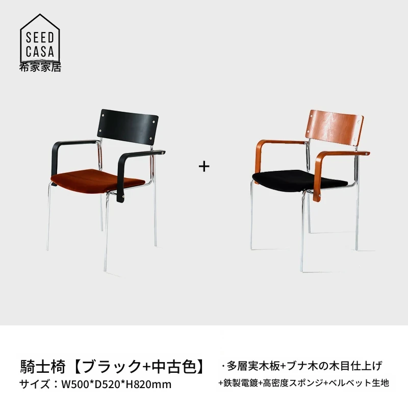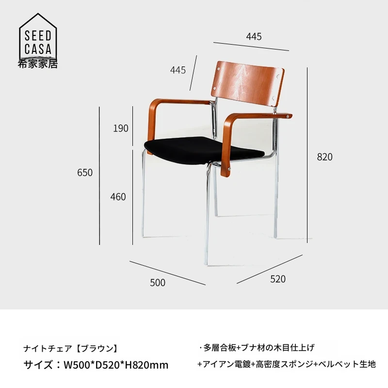 シードカーサ 北欧風シンプルデザイン デザイナーズ人気ダイニングチェア 家庭用 無垢材 背もたれ付き アームチェア オフィス&リラックスに最適!
