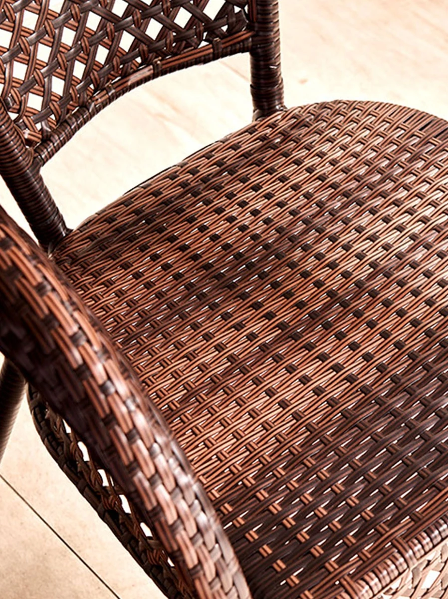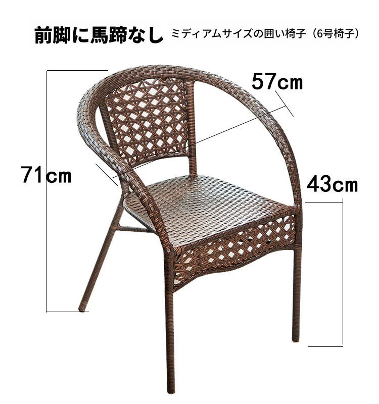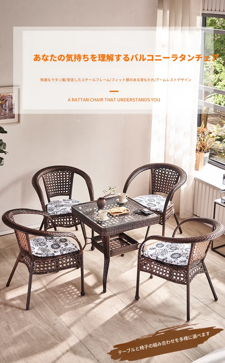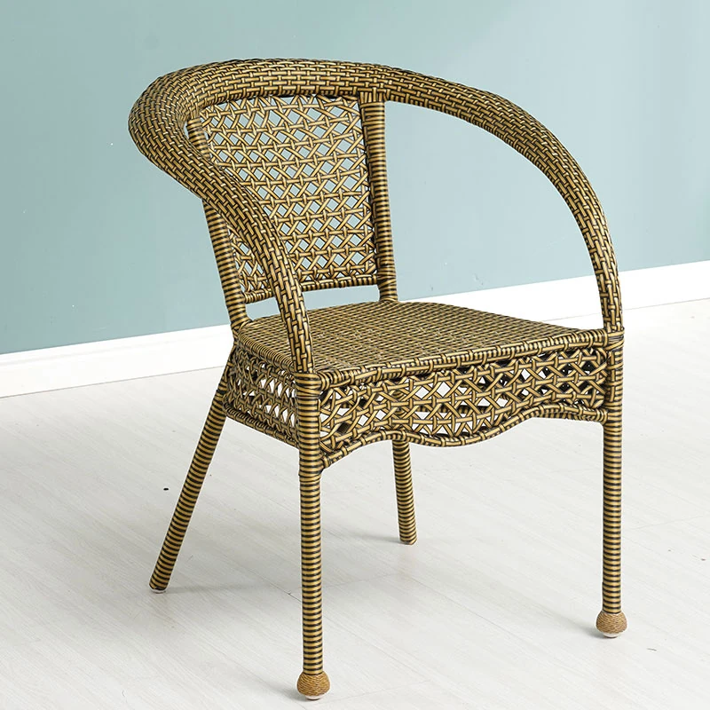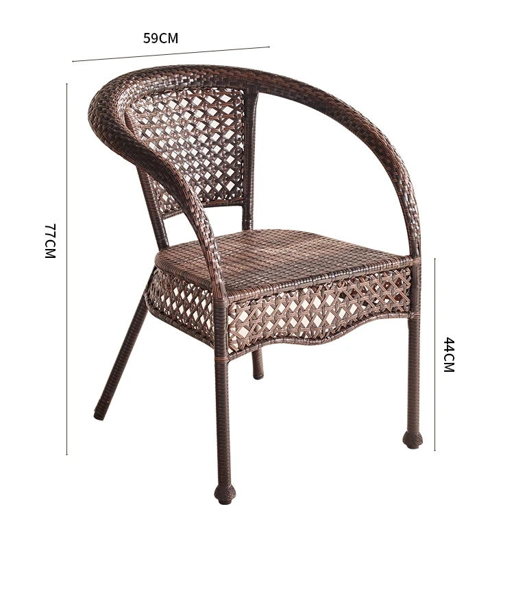 シンプルでスタイリッシュな単人用ラタンチェア - 背もたれ付き、アームレスト付き、バルコニーやアウトドアに最適!リラックスしたひとときをお届けする、カフェや家庭にぴったりの快適なウィービングチェアです。
