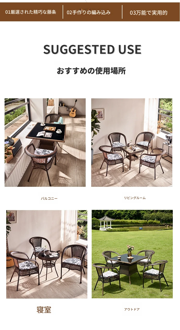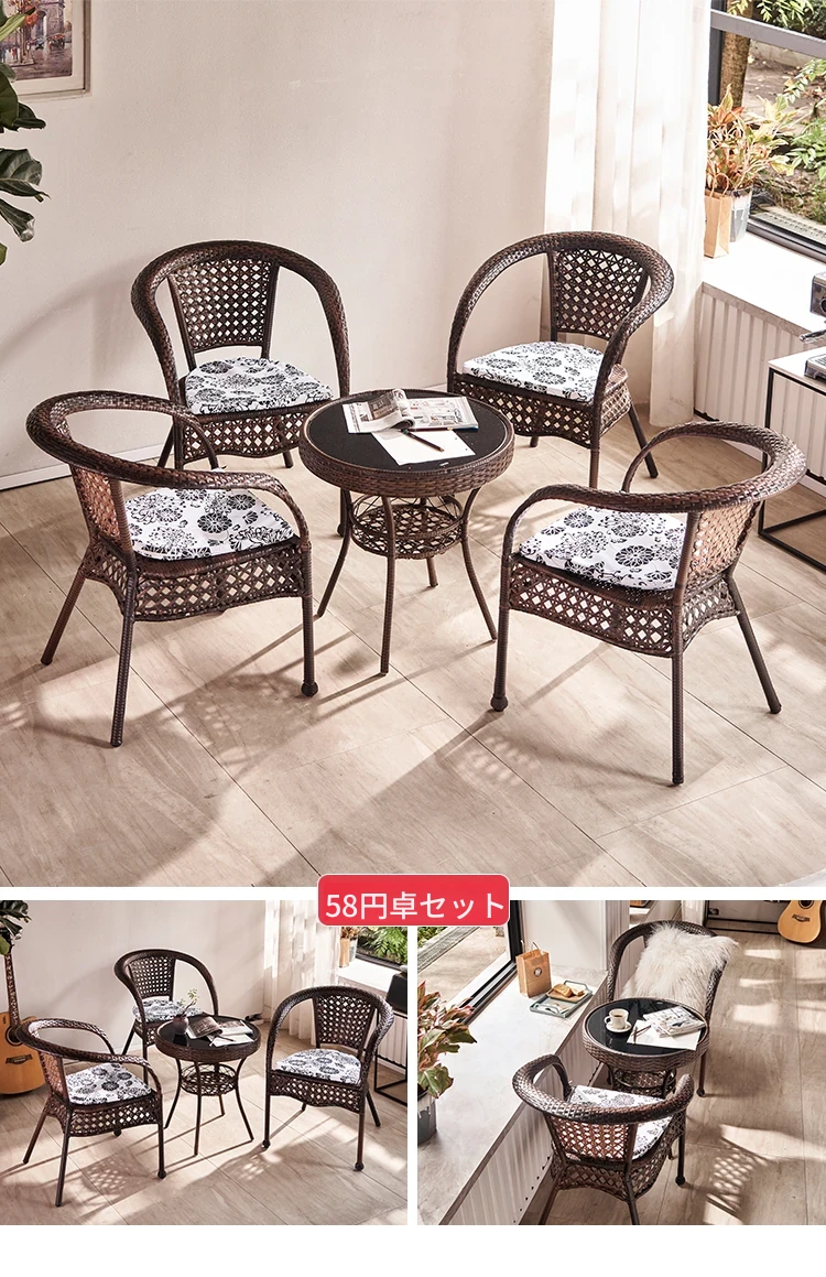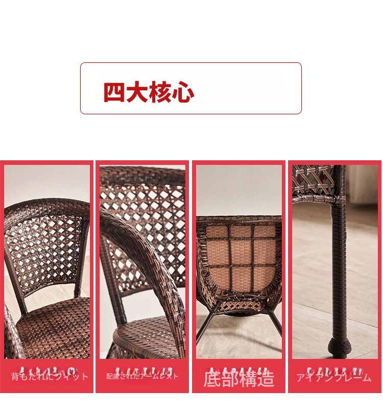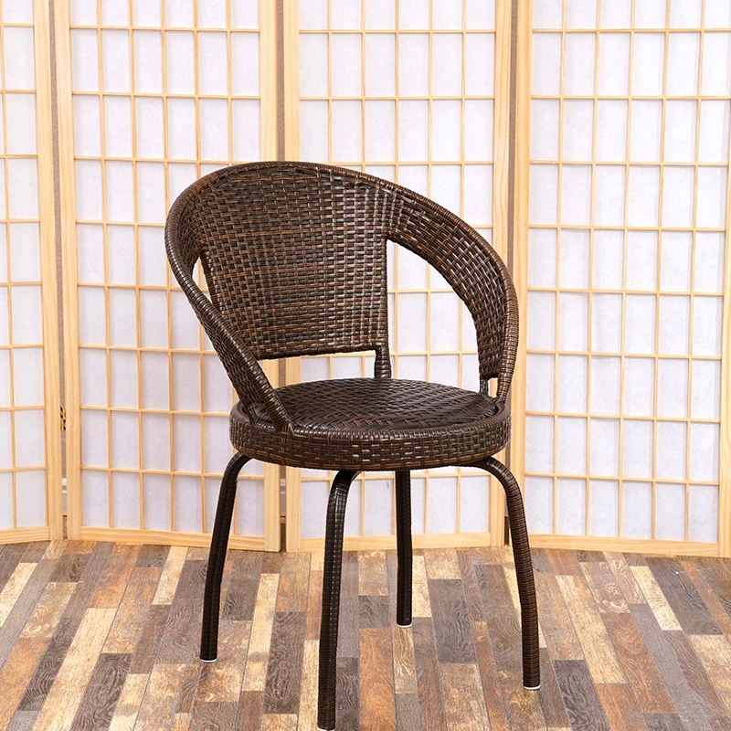 シンプルでスタイリッシュな単人用ラタンチェア - 背もたれ付き、アームレスト付き、バルコニーやアウトドアに最適!リラックスしたひとときをお届けする、カフェや家庭にぴったりの快適なウィービングチェアです。