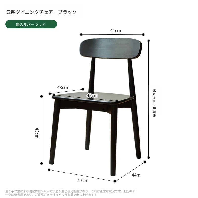 云昭ダイニングチェア-ブラック(輸入ゴムの木)