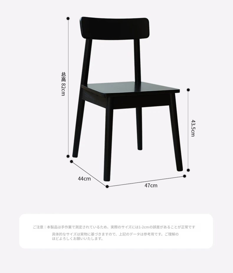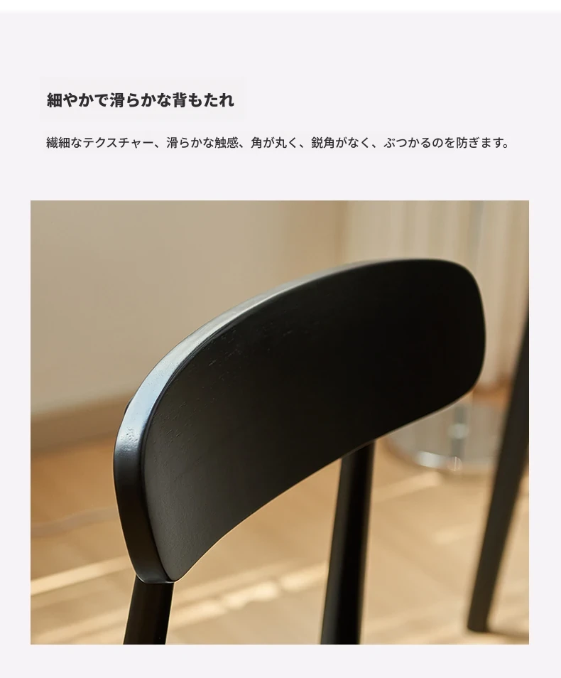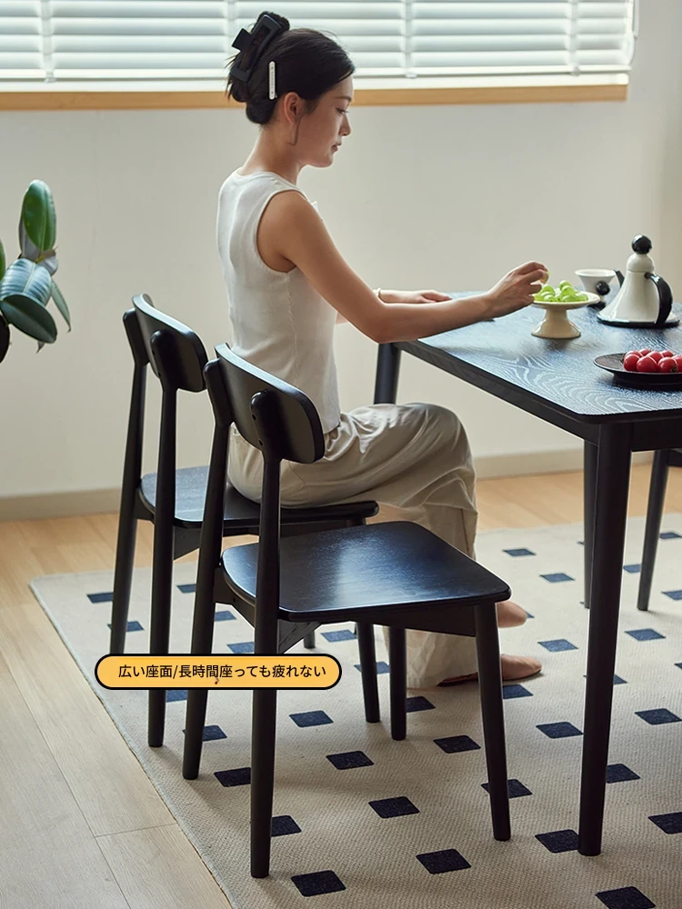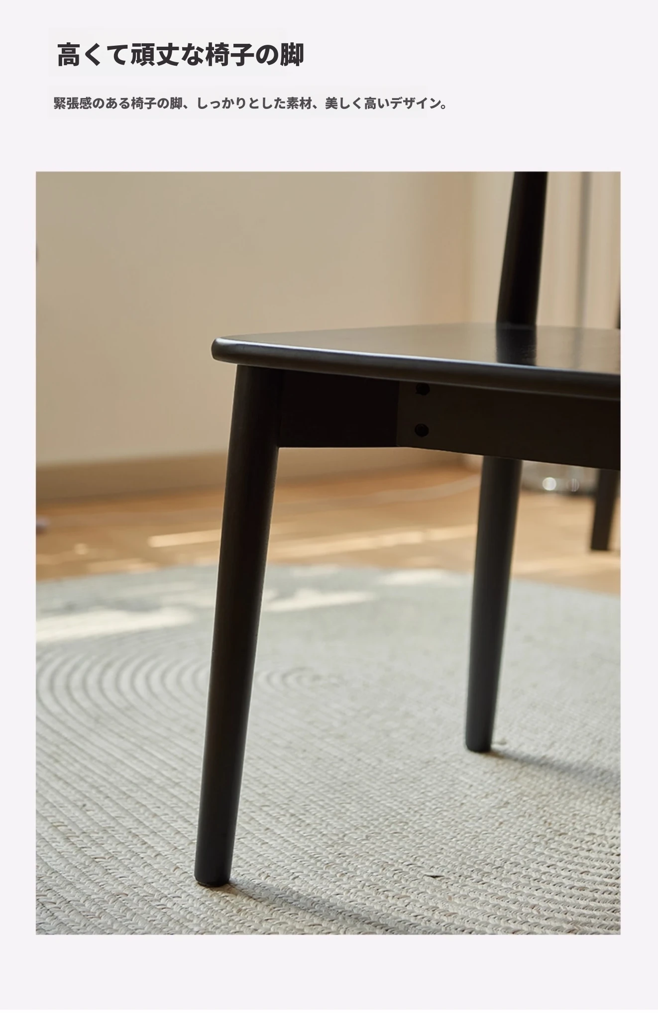 北欧スタイルの無垢材ダイニングチェア - シンプルで小型住宅に最適!黒い背もたれ付きで、食事や作業にぴったりの快適な座り心地。おしゃれな空間を演出するアイテムです!