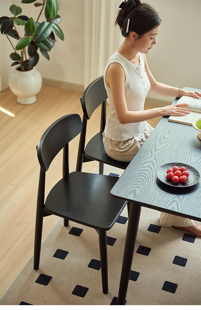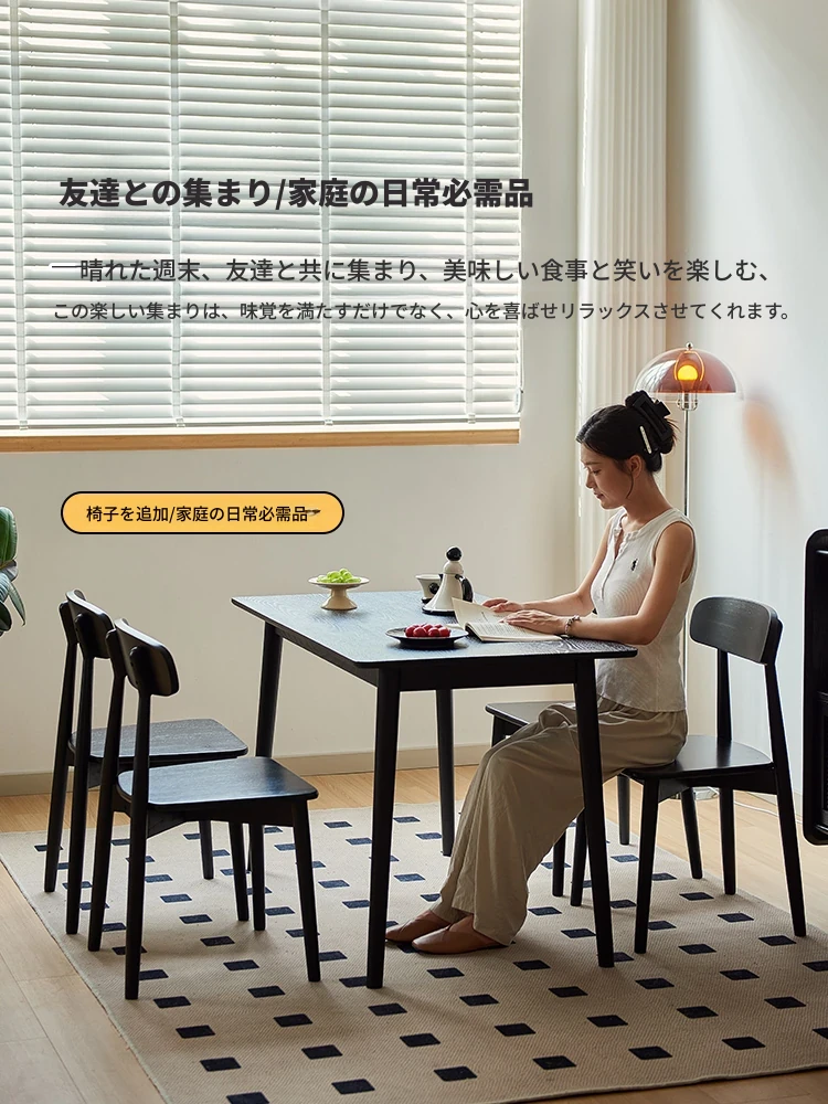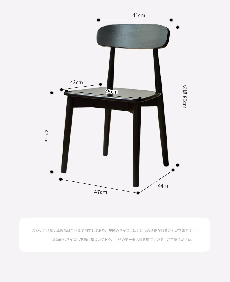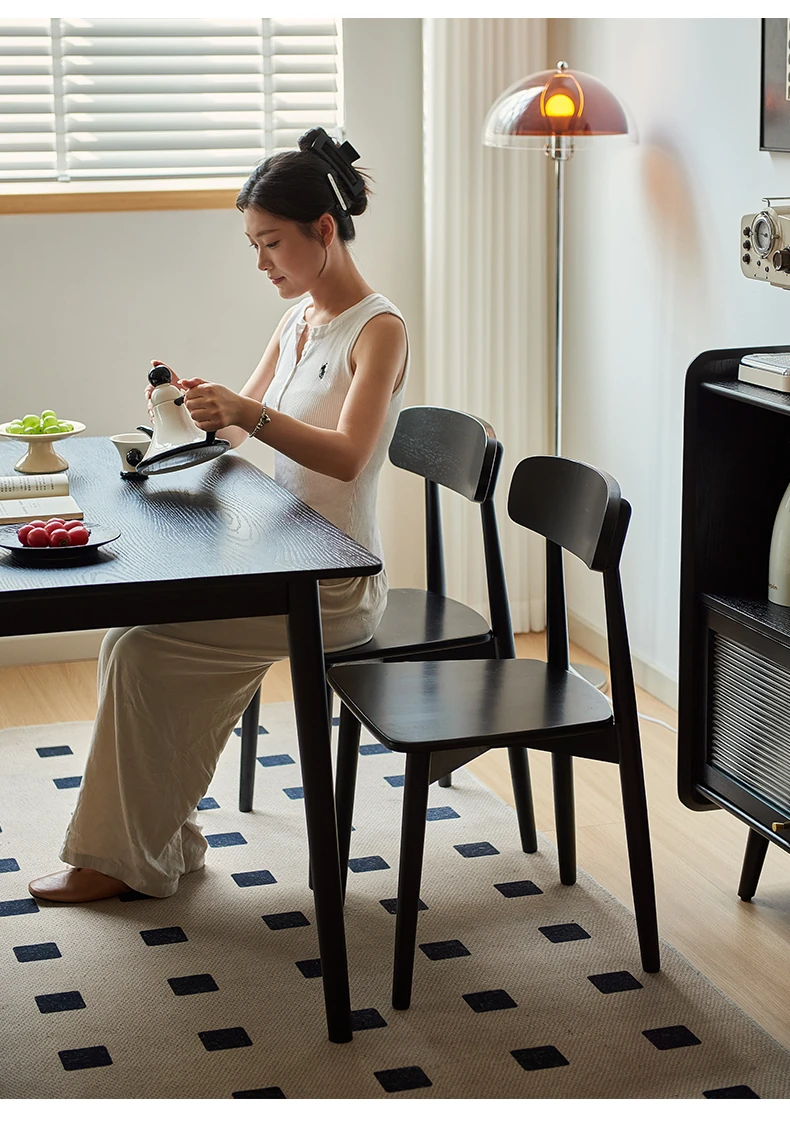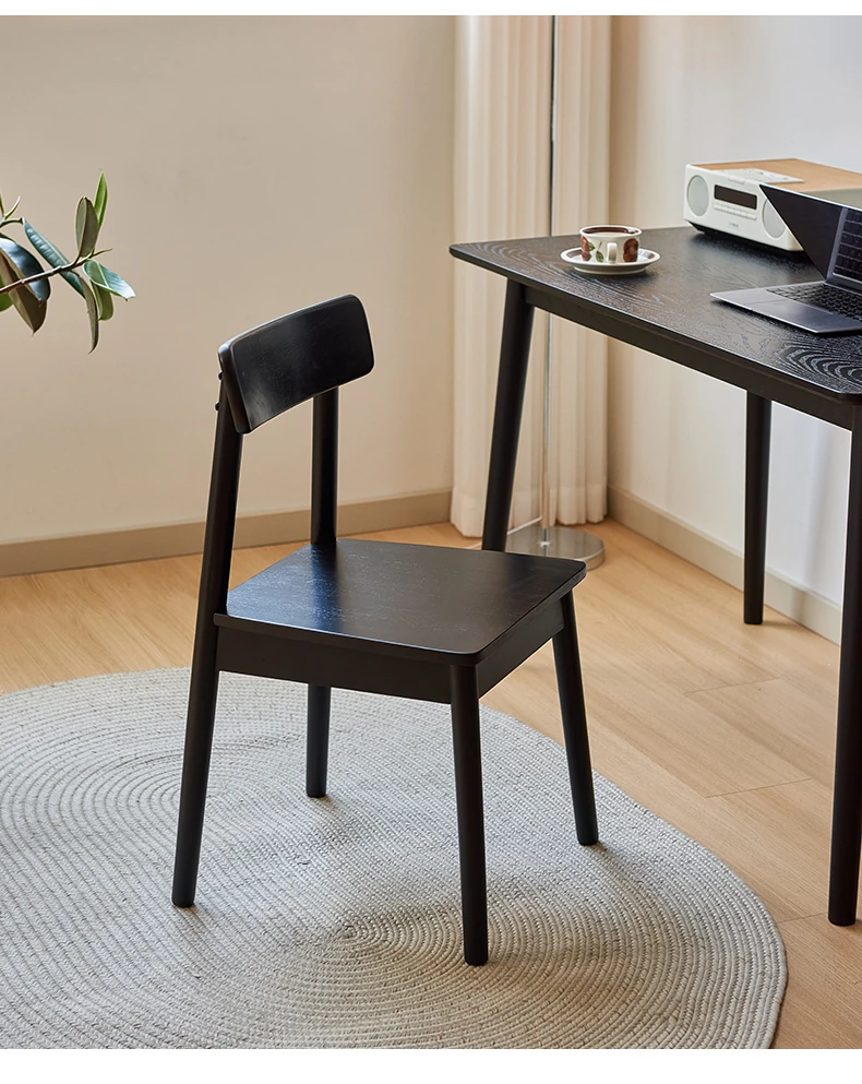 北欧スタイルの無垢材ダイニングチェア - シンプルで小型住宅に最適!黒い背もたれ付きで、食事や作業にぴったりの快適な座り心地。おしゃれな空間を演出するアイテムです!
