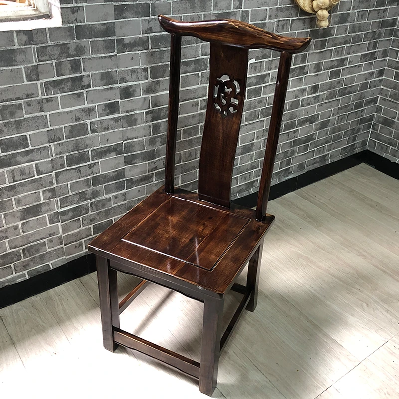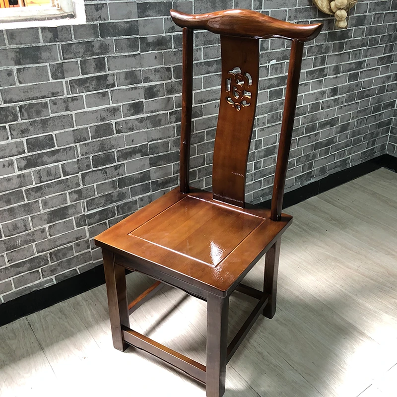Solid Wood Official Hat Chair - Vintage Chinese Style, High Back, Ox Horn Design, Perfect for Farmhouses, Restaurants, and Dining Areas - Special Price!