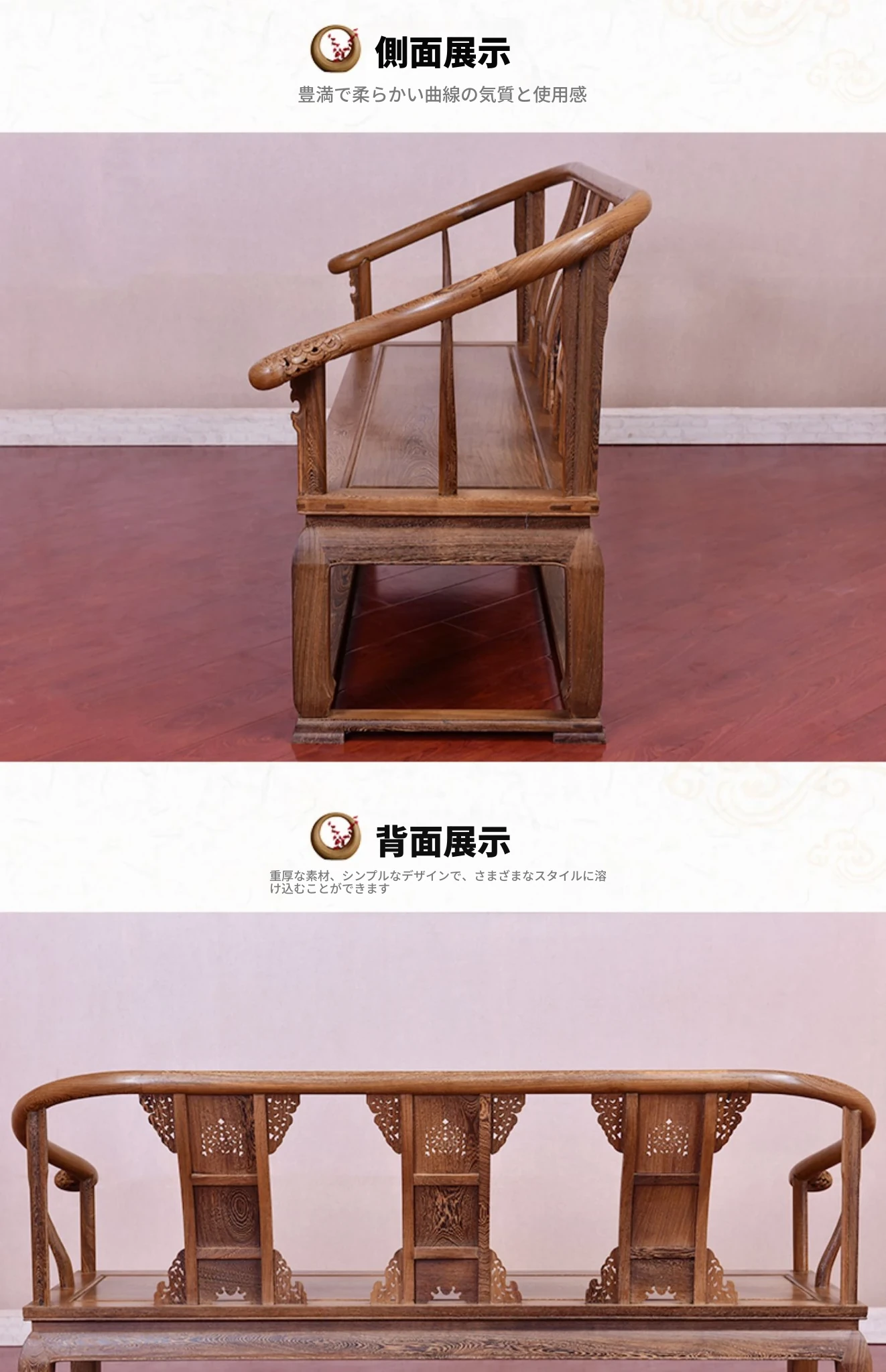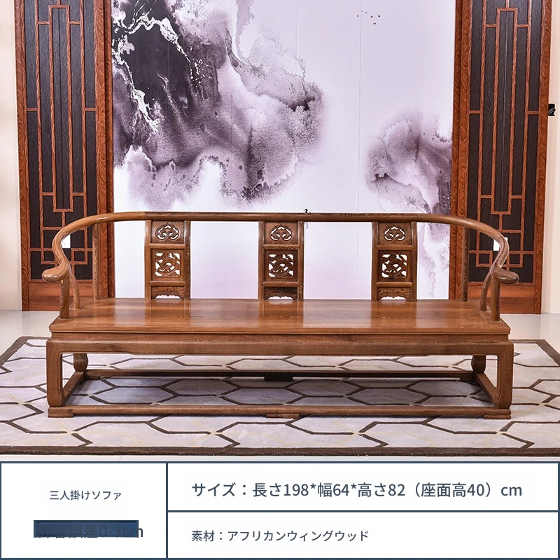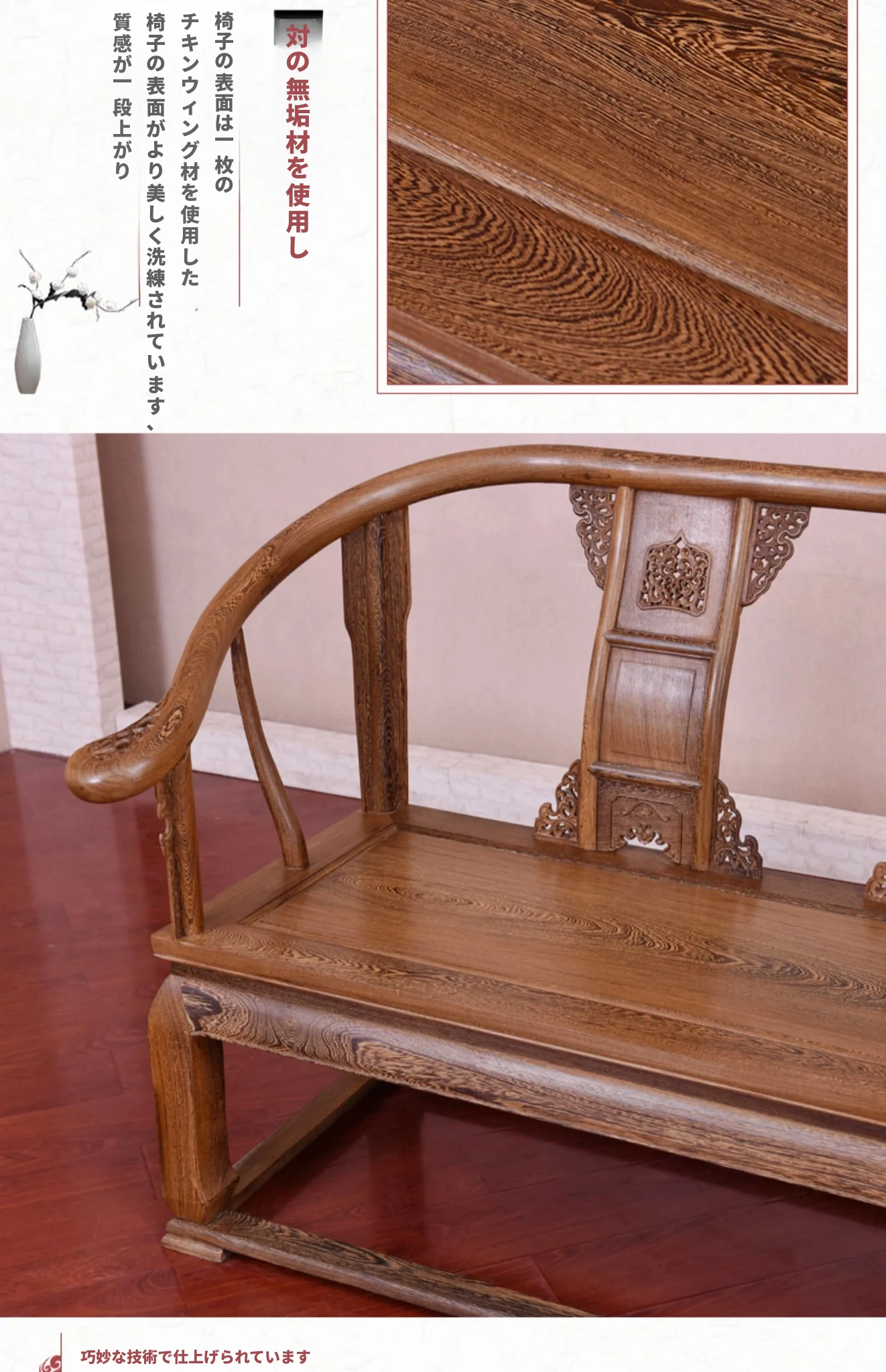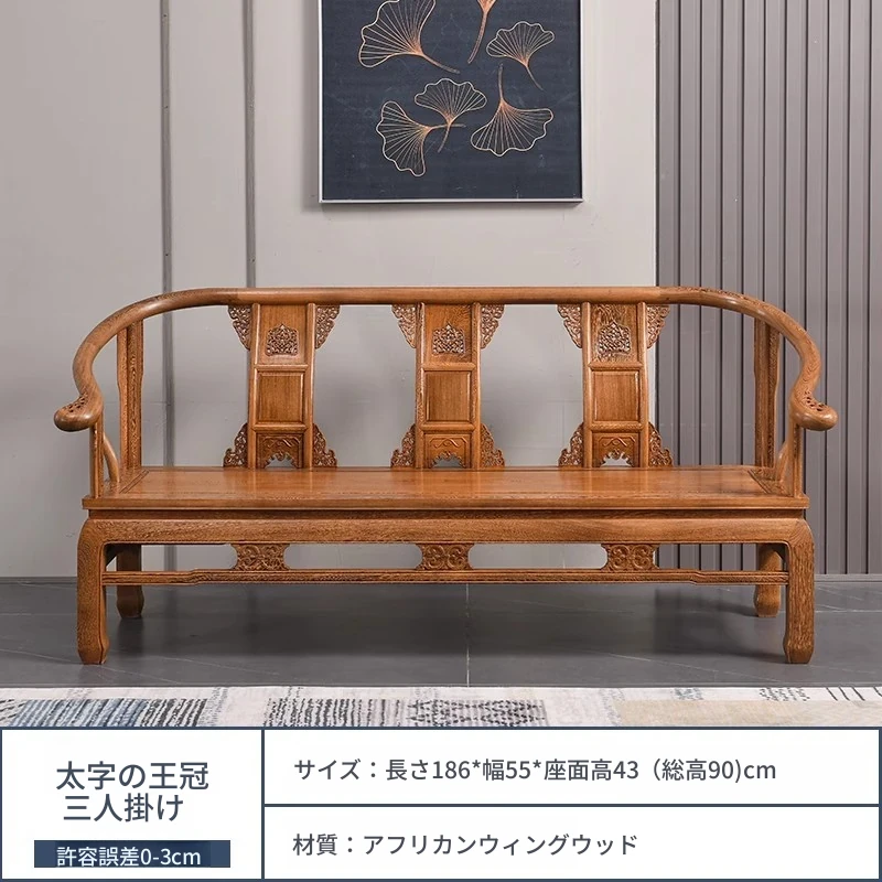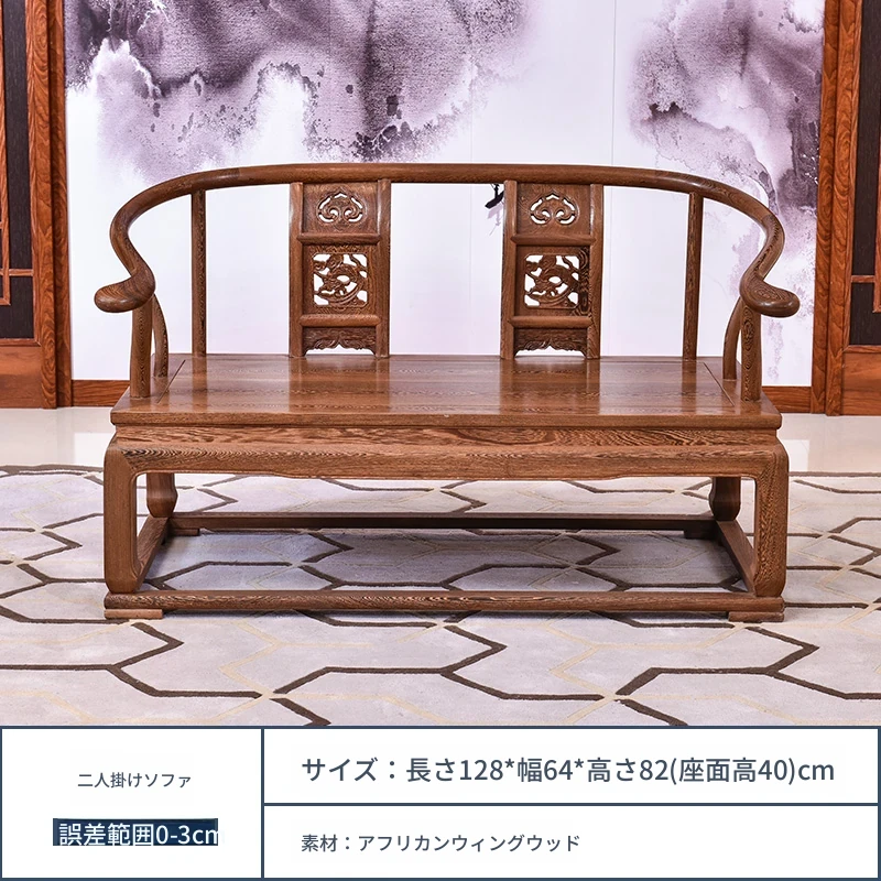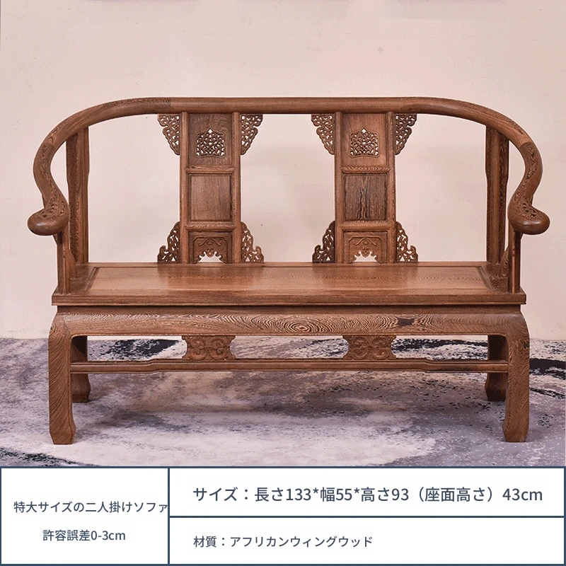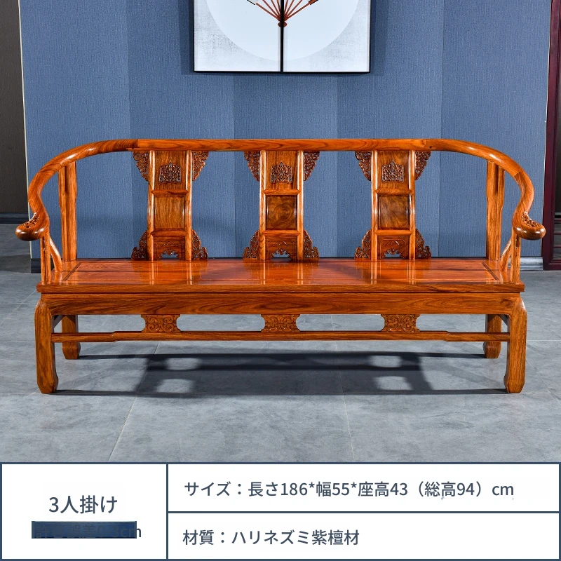 高級紅木家具 鶏翅木製 三人掛けソファー 本格派アンティークスタイル 中華風 ダブルアームチェア 小スペース向け コンパクトなリビングに最適!