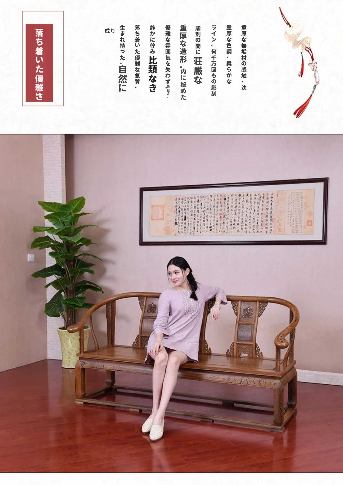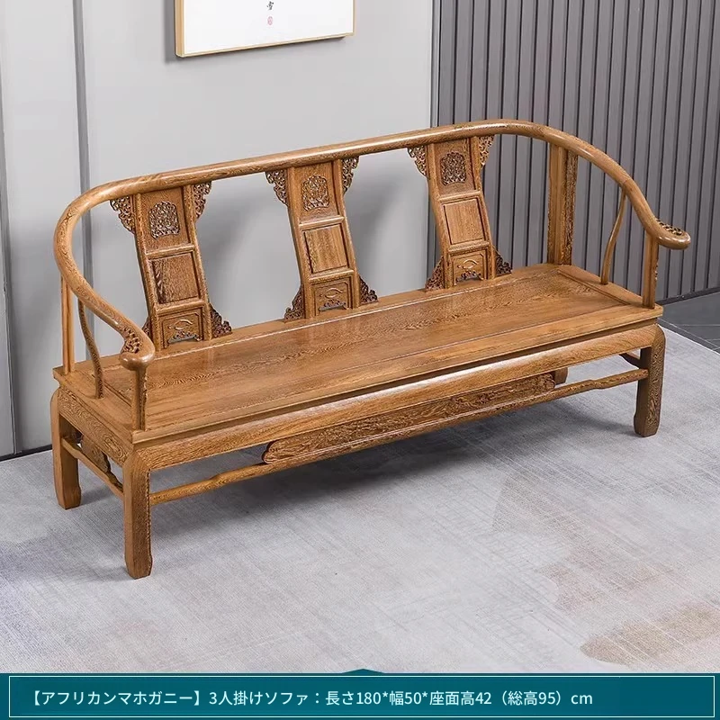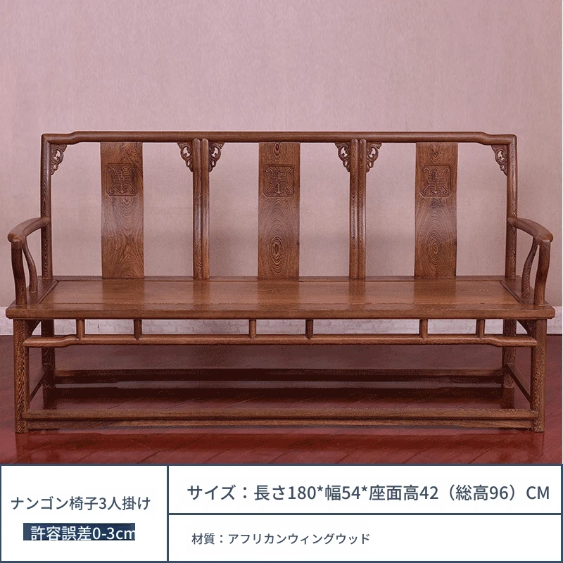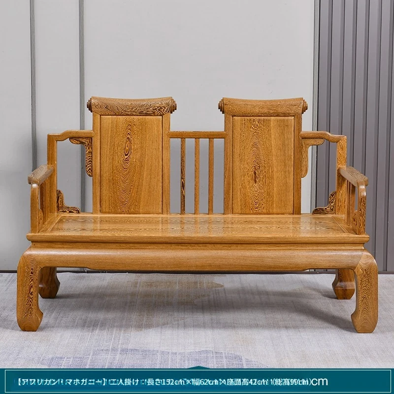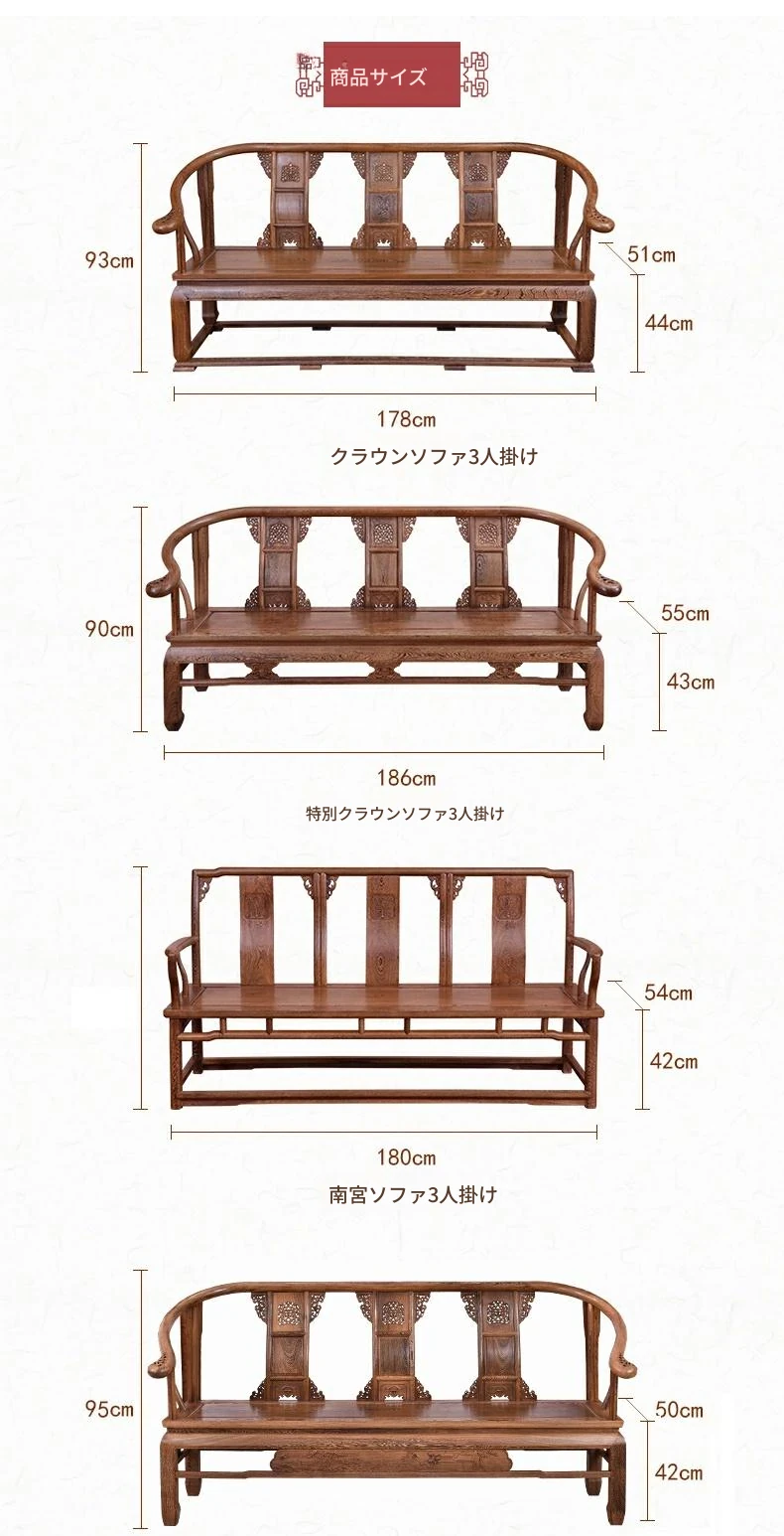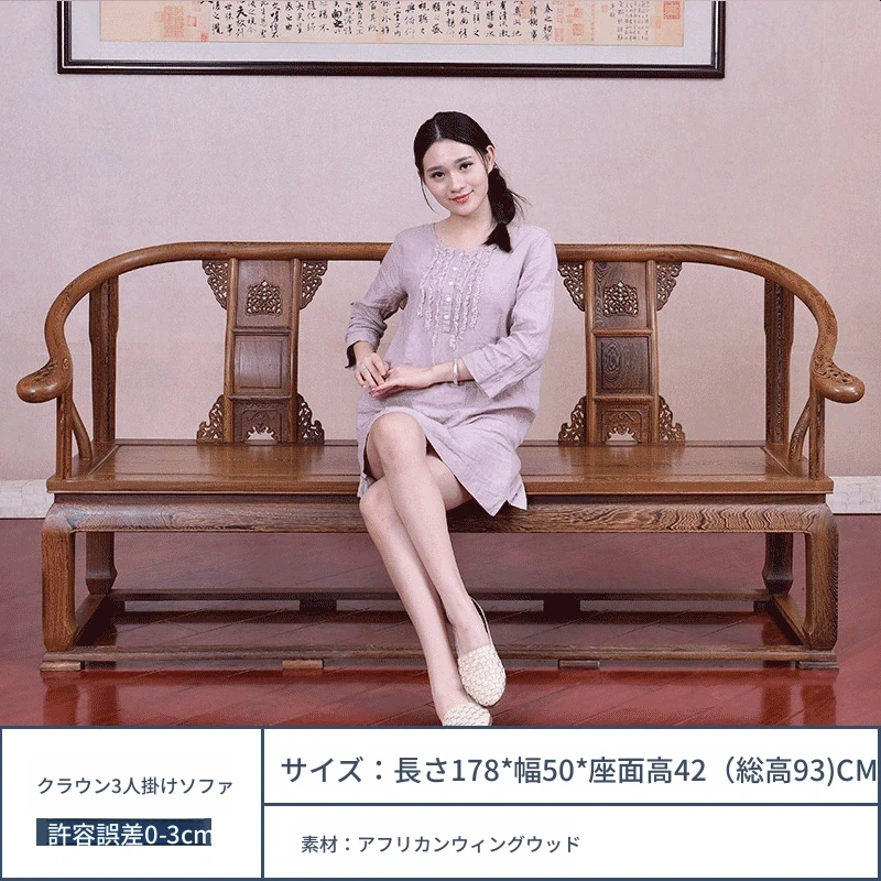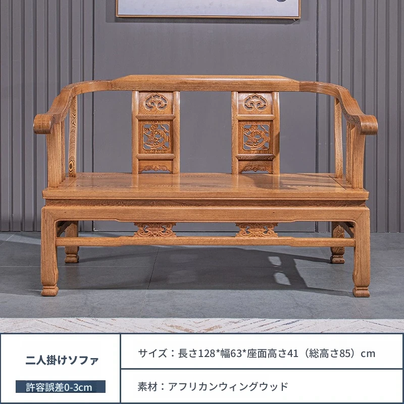 高級紅木家具 鶏翅木製 三人掛けソファー 本格派アンティークスタイル 中華風 ダブルアームチェア 小スペース向け コンパクトなリビングに最適!
