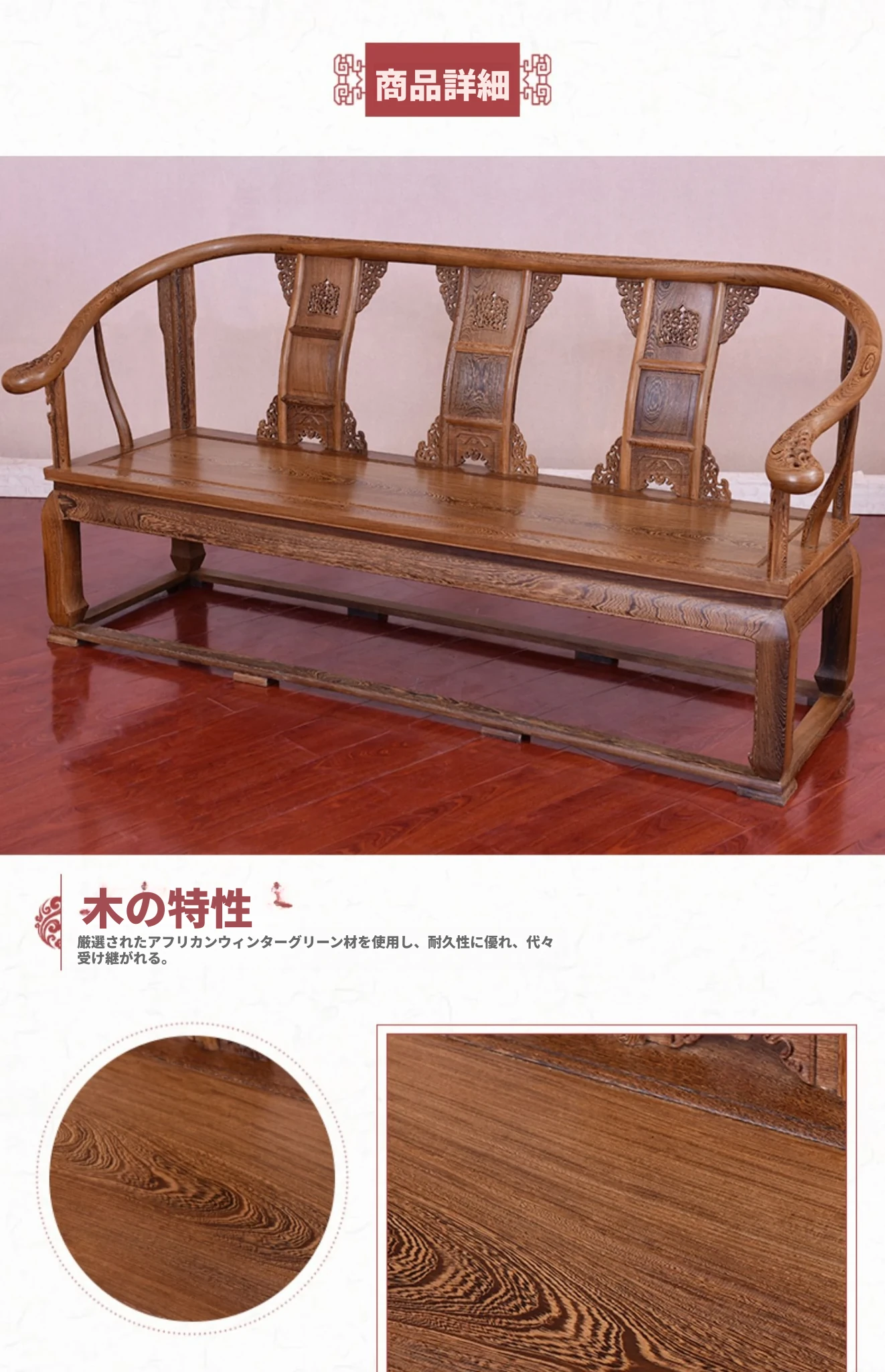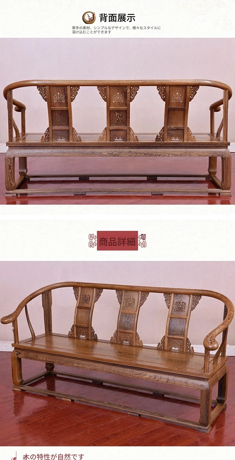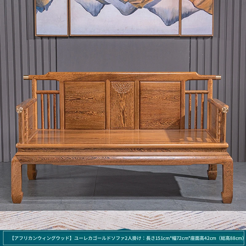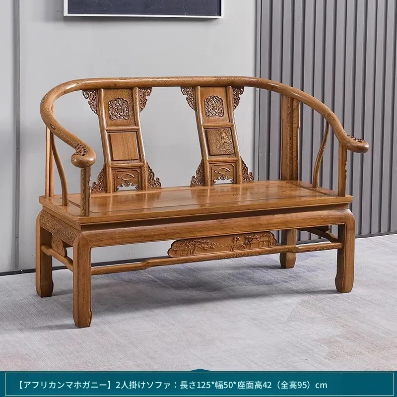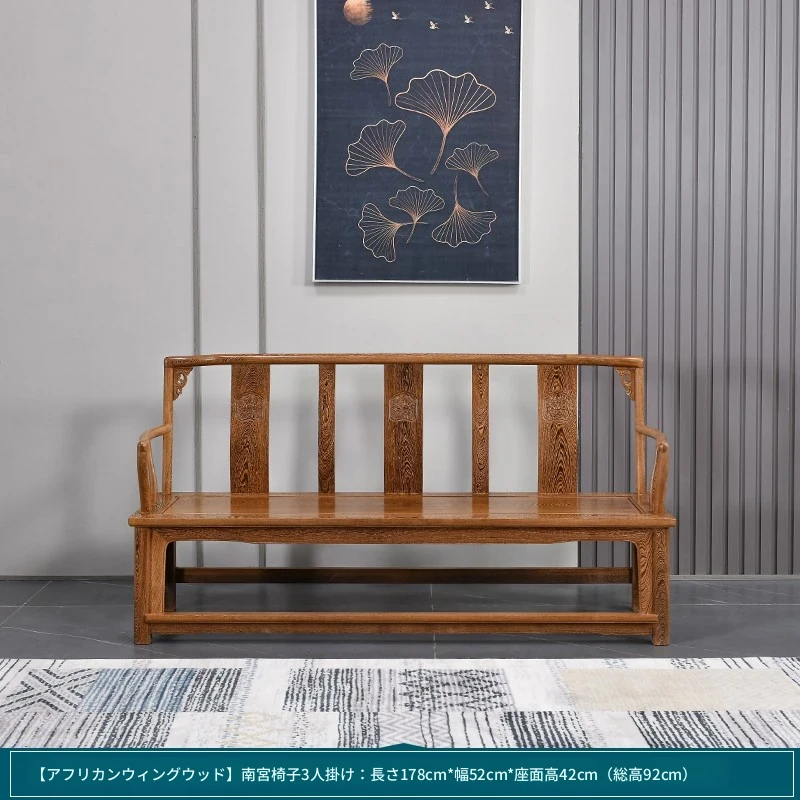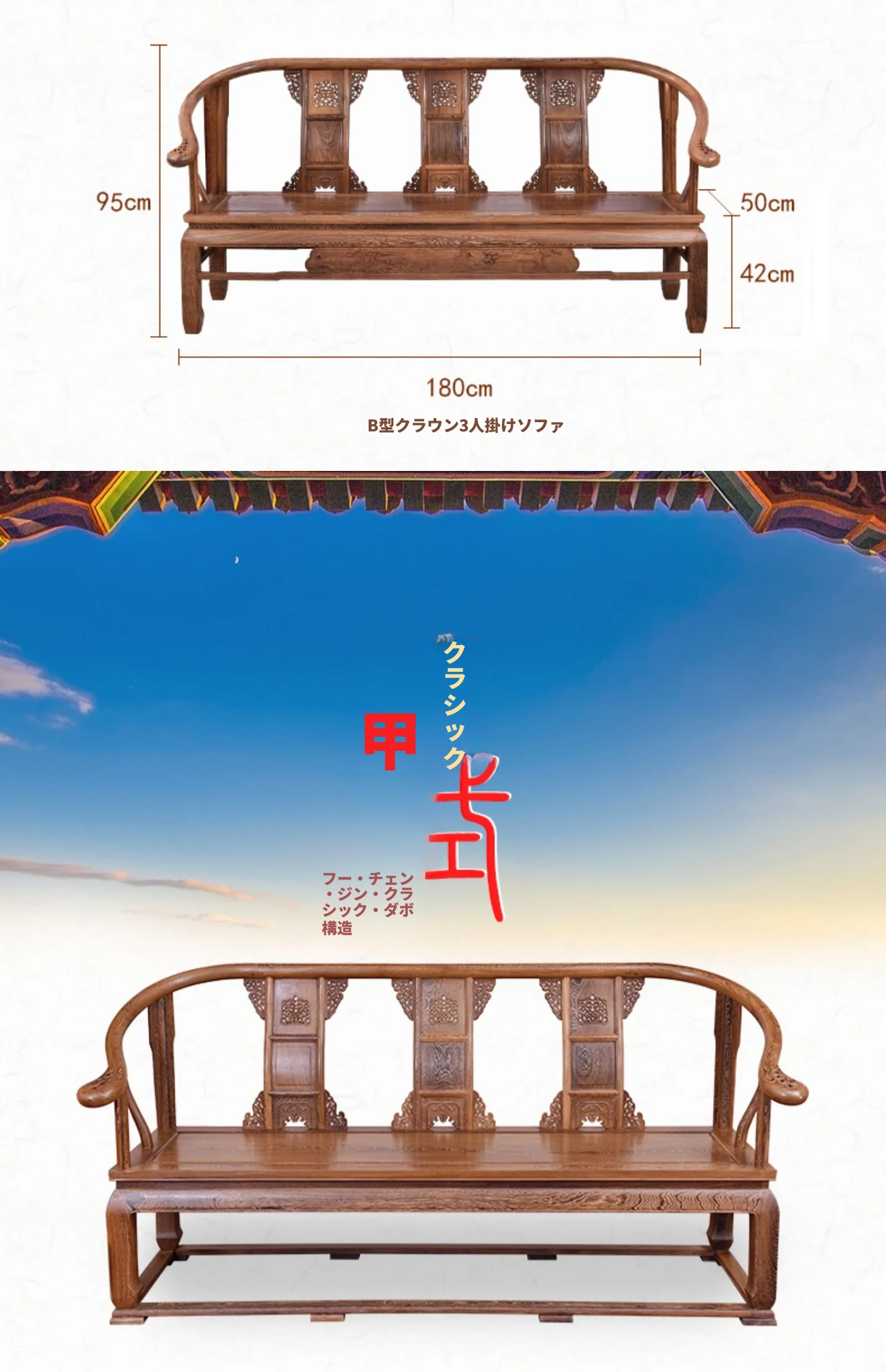 高級紅木家具 鶏翅木製 三人掛けソファー 本格派アンティークスタイル 中華風 ダブルアームチェア 小スペース向け コンパクトなリビングに最適!