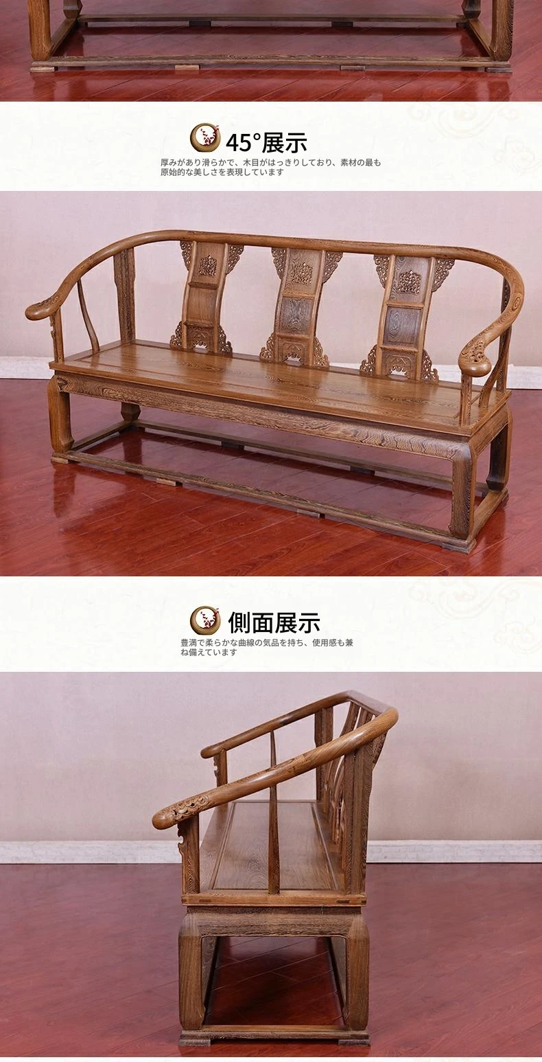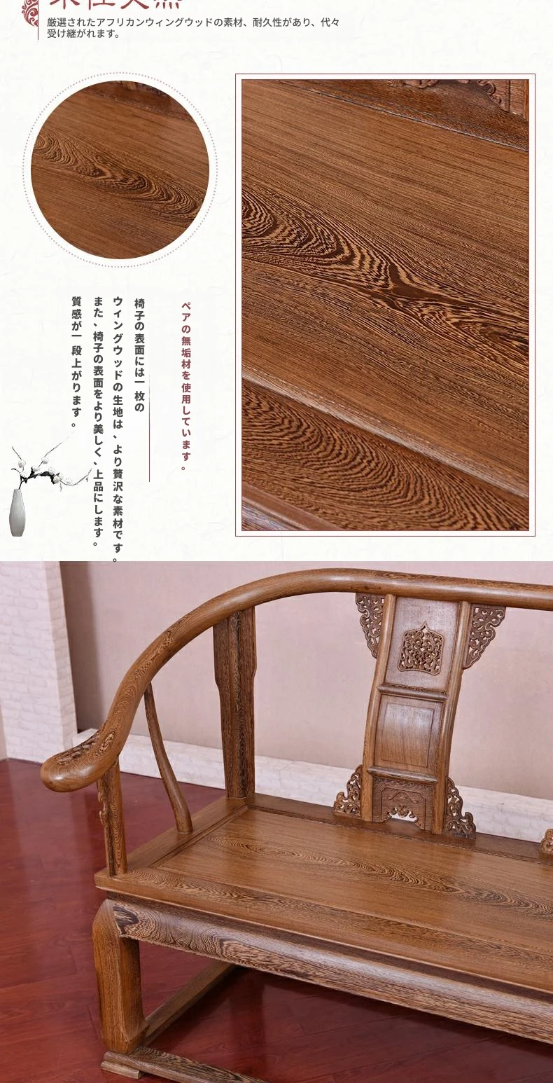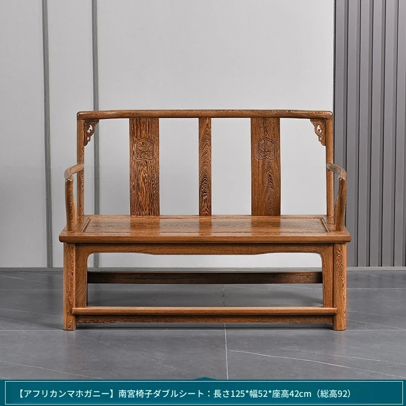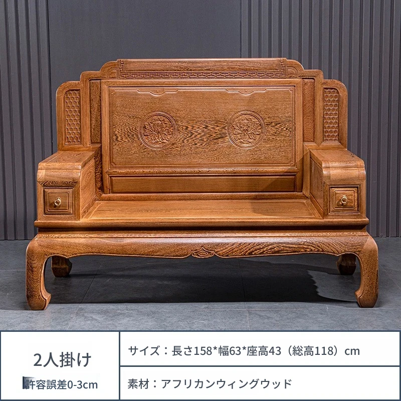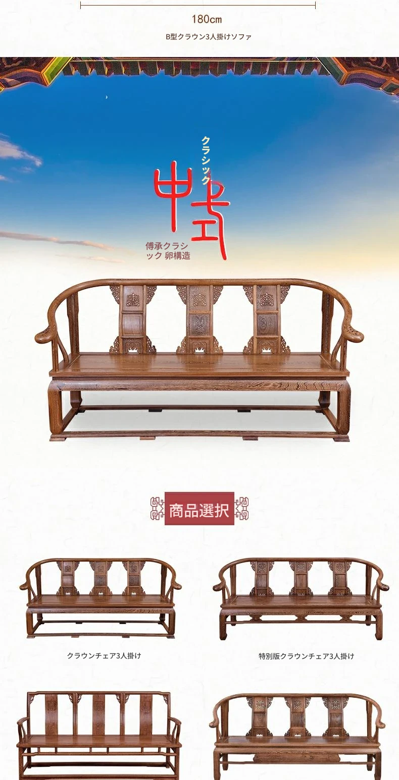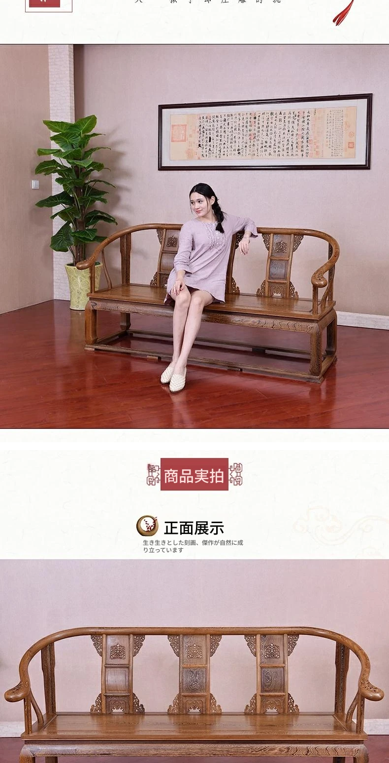 高級紅木家具 鶏翅木製 三人掛けソファー 本格派アンティークスタイル 中華風 ダブルアームチェア 小スペース向け コンパクトなリビングに最適!