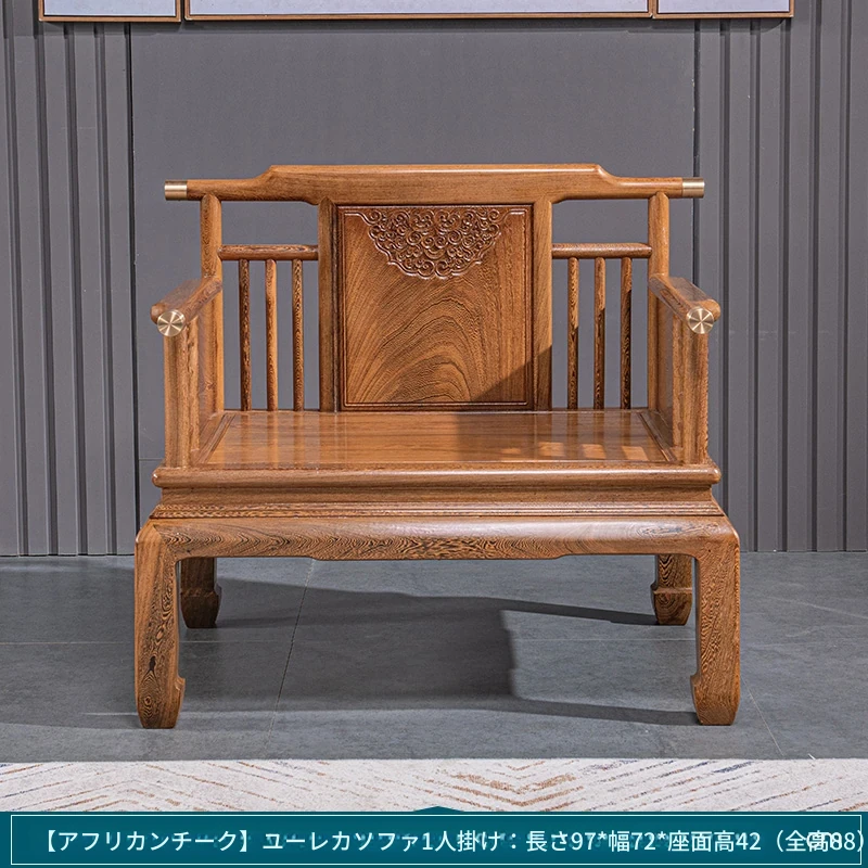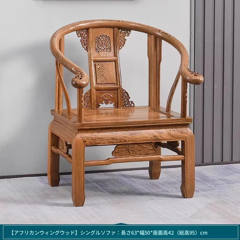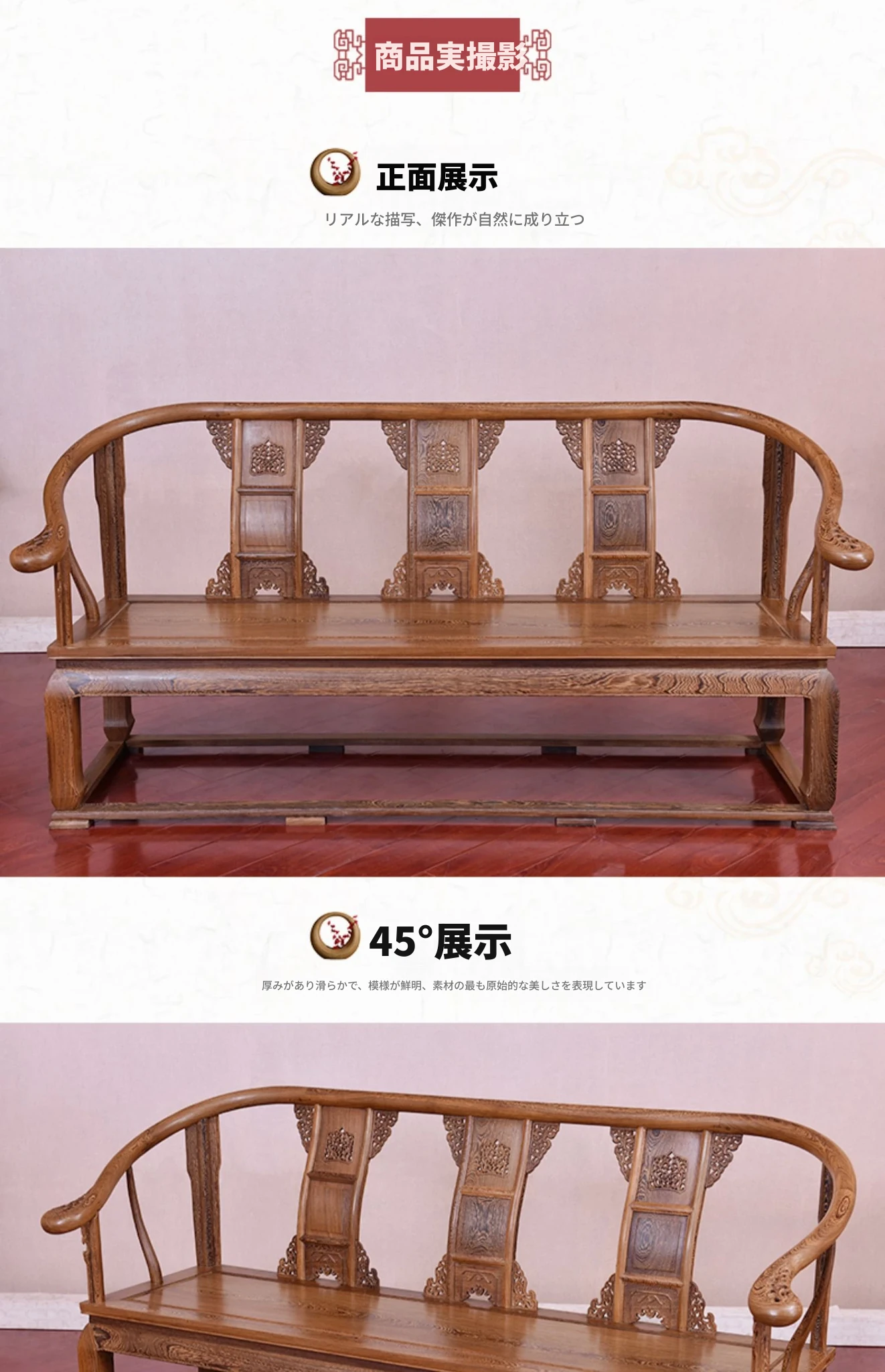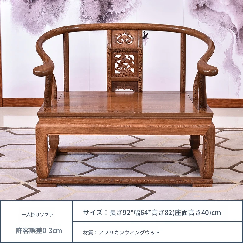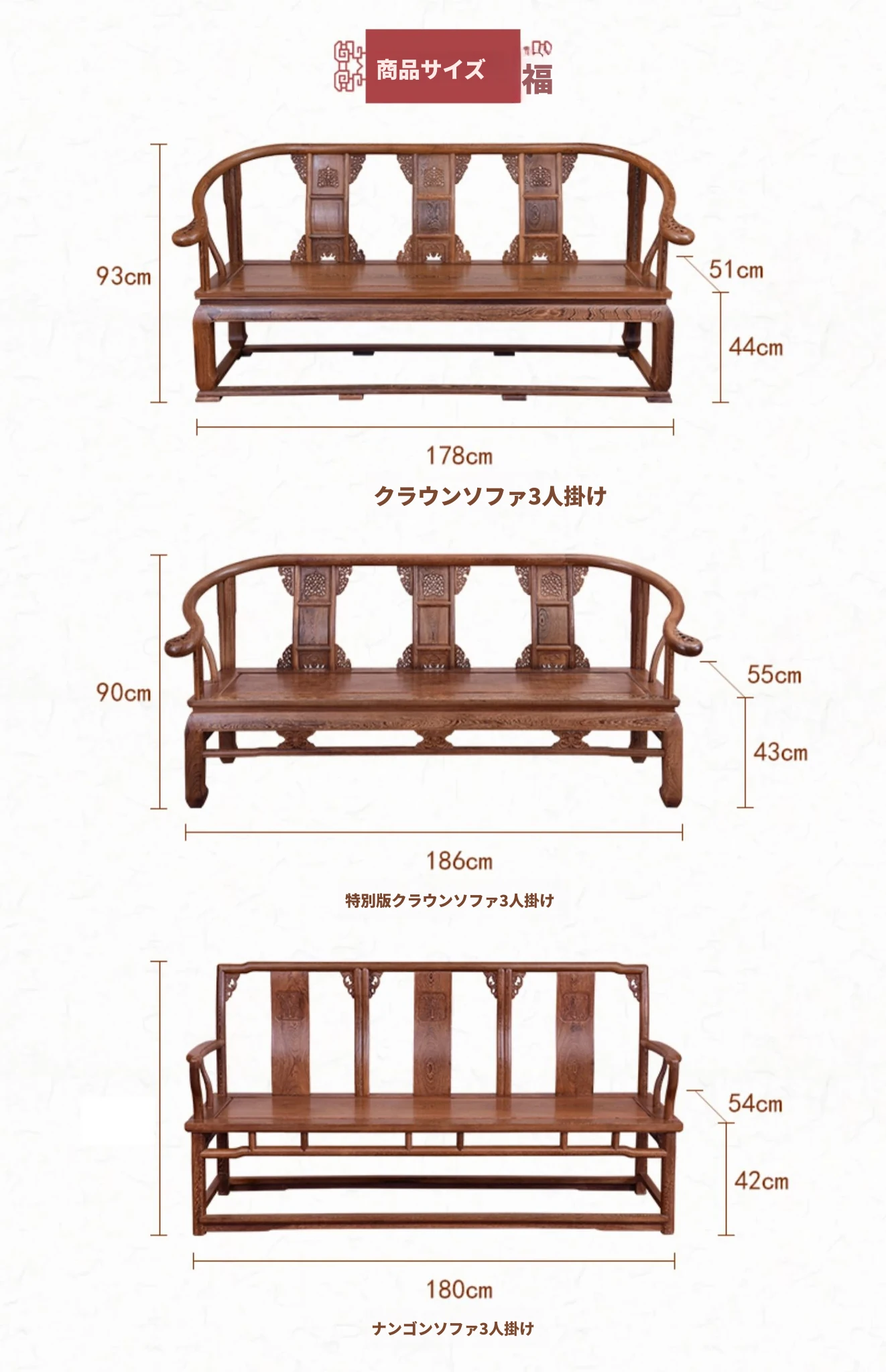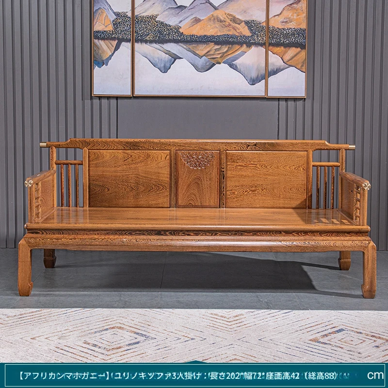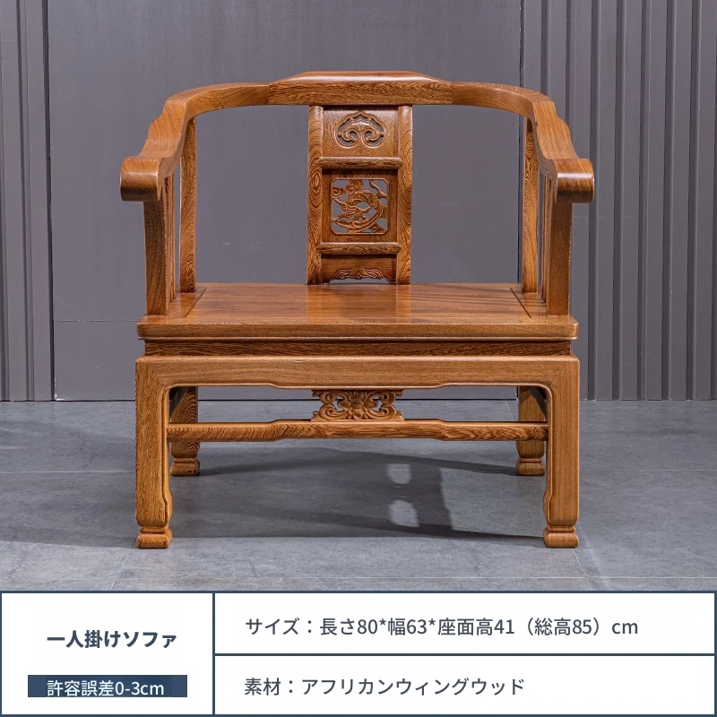 高級紅木家具 鶏翅木製 三人掛けソファー 本格派アンティークスタイル 中華風 ダブルアームチェア 小スペース向け コンパクトなリビングに最適!