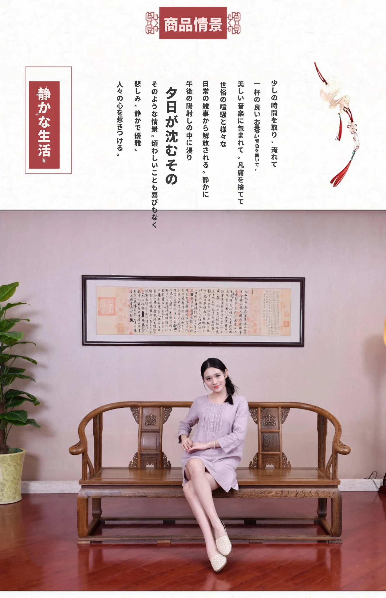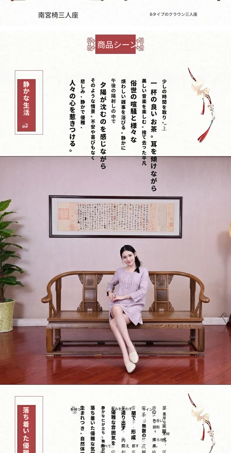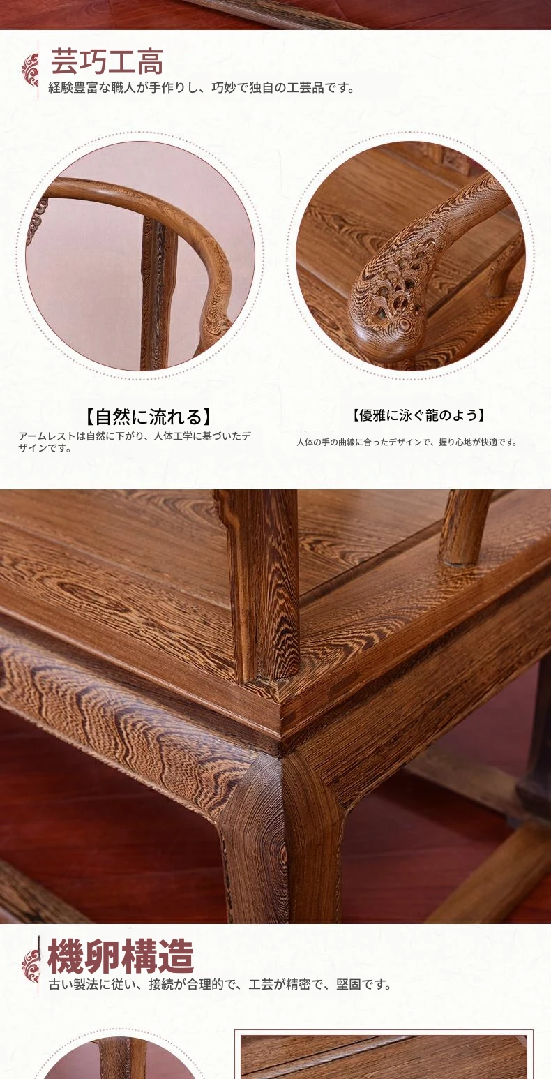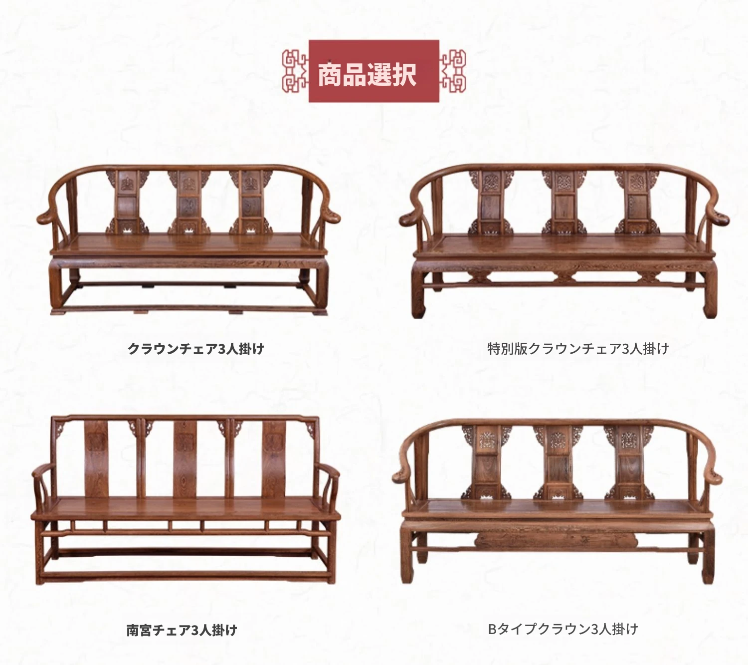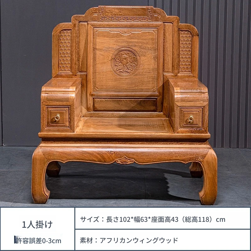 高級紅木家具 鶏翅木製 三人掛けソファー 本格派アンティークスタイル 中華風 ダブルアームチェア 小スペース向け コンパクトなリビングに最適!