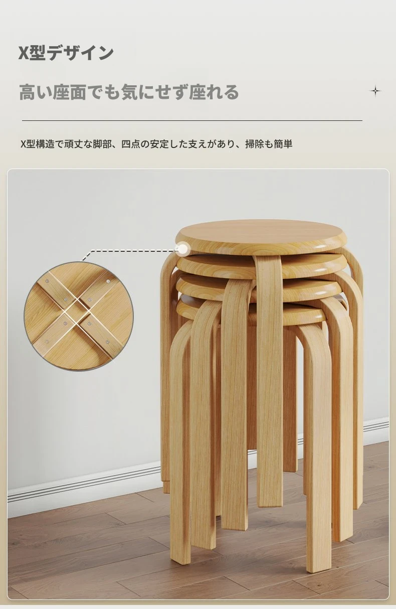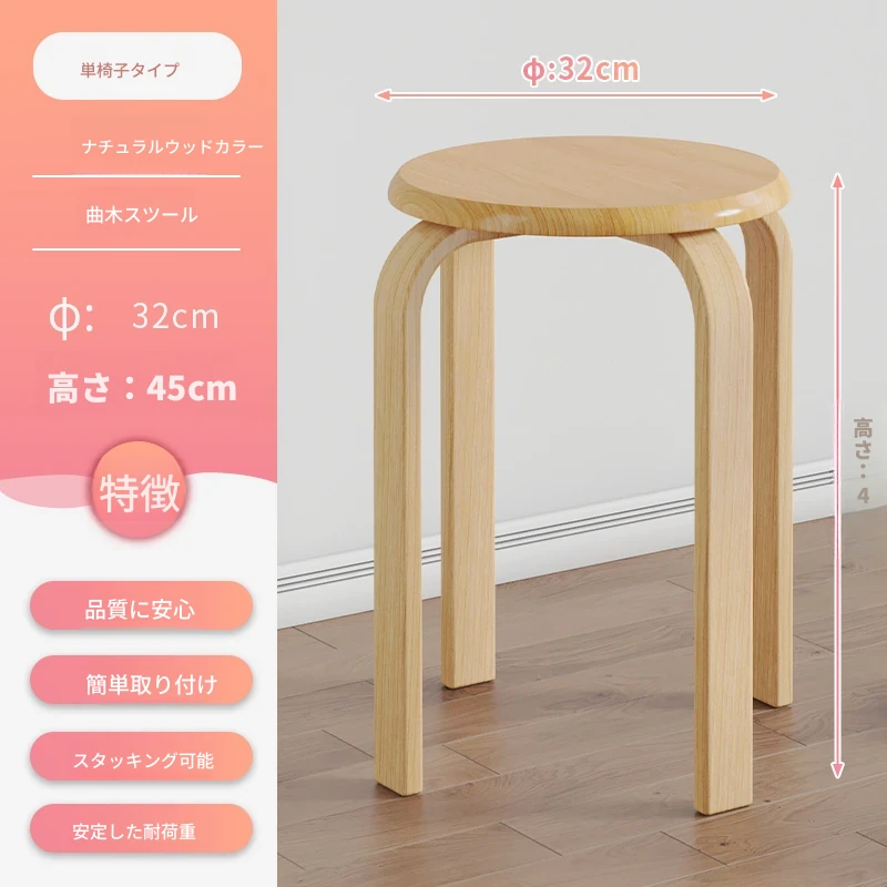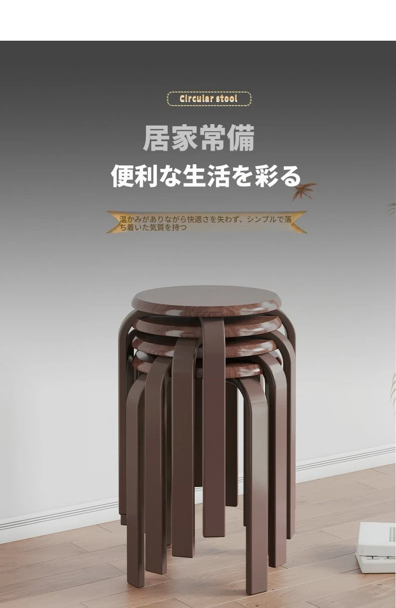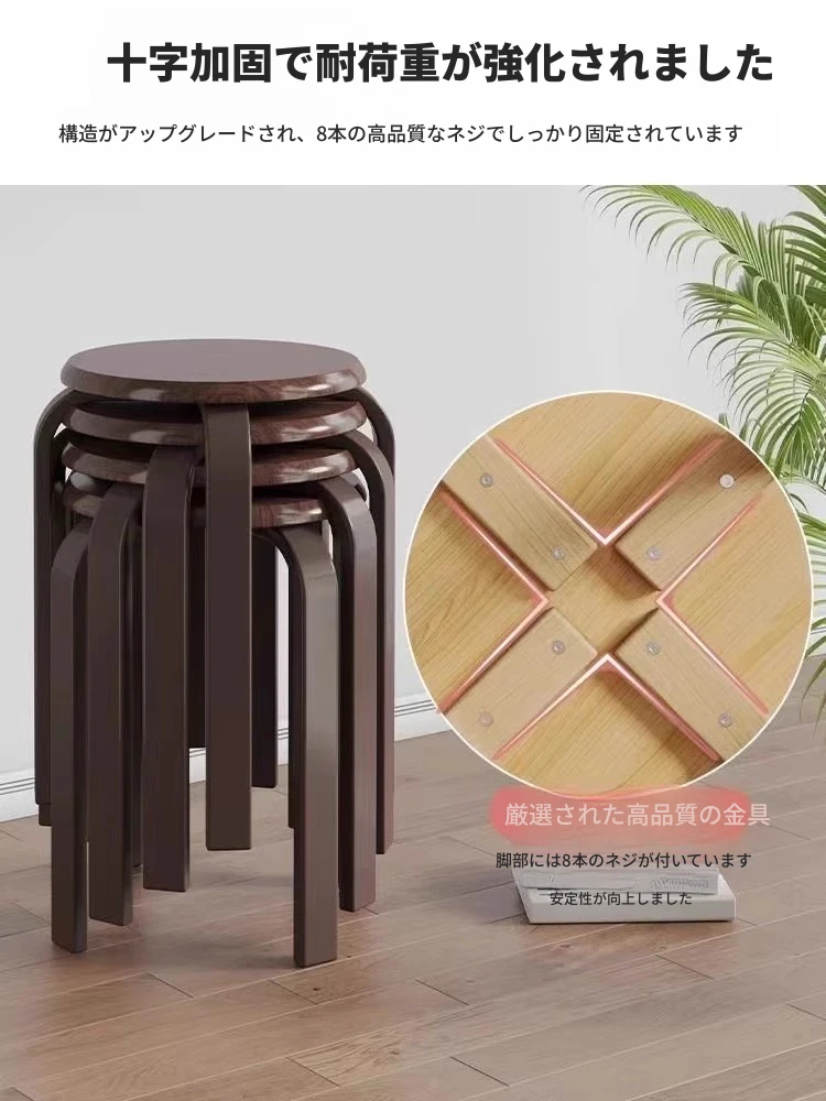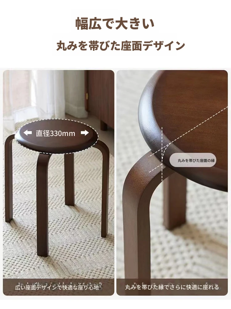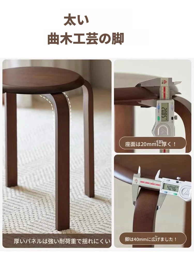 天然木製のシンプルモダンな円形スツール - 家庭用リビングやダイニングに最適!高めのデザインで、商業利用にも対応!快適さとスタイルを兼ね備えた一品。