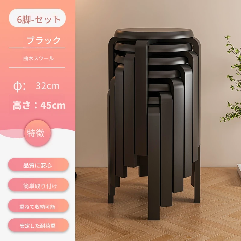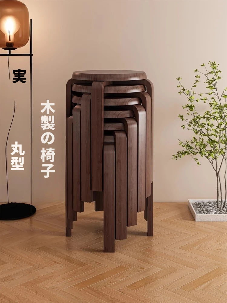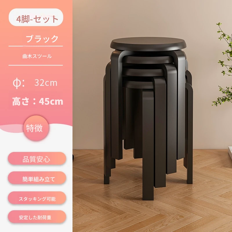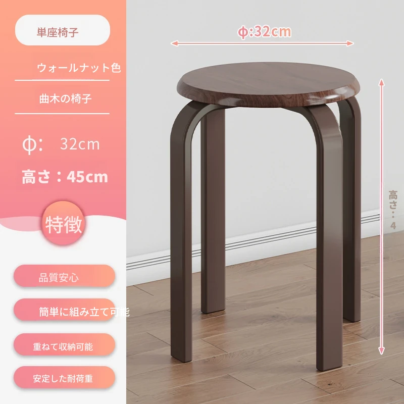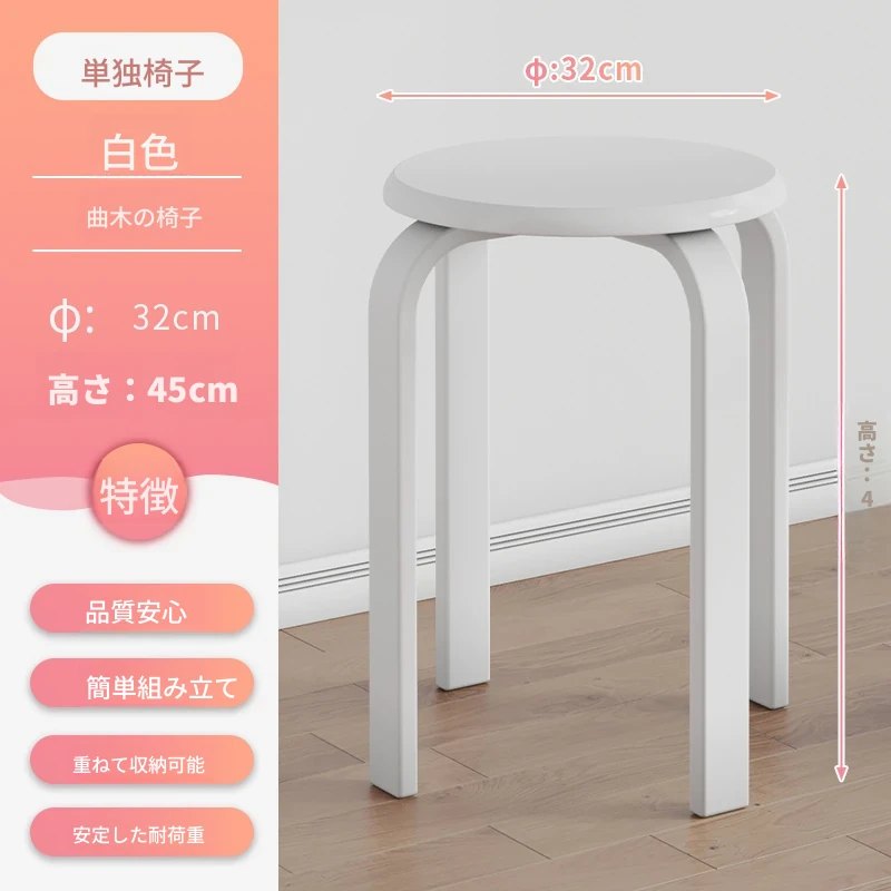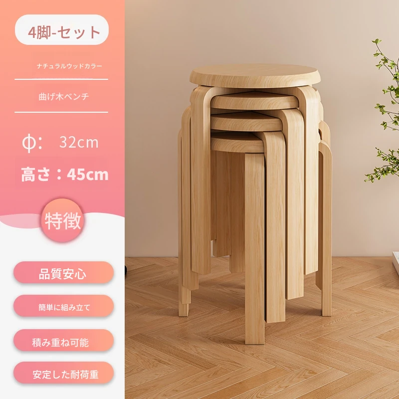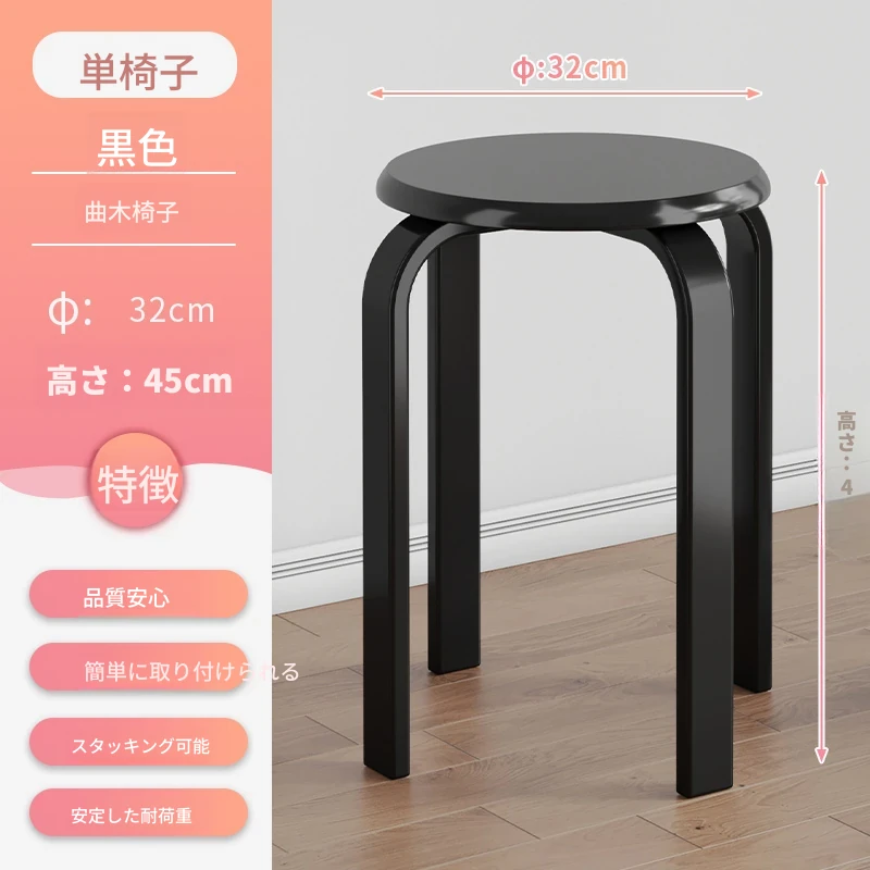 天然木製のシンプルモダンな円形スツール - 家庭用リビングやダイニングに最適!高めのデザインで、商業利用にも対応!快適さとスタイルを兼ね備えた一品。