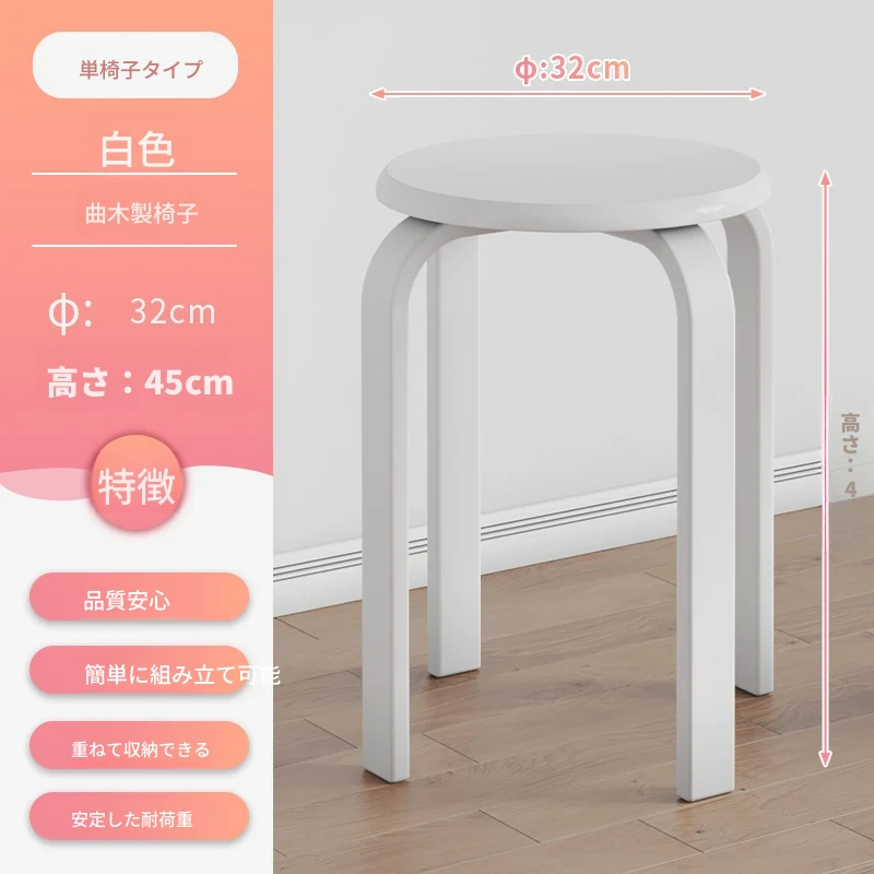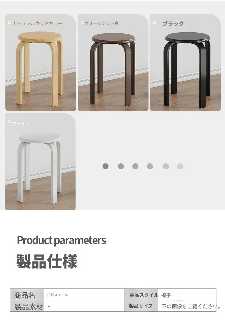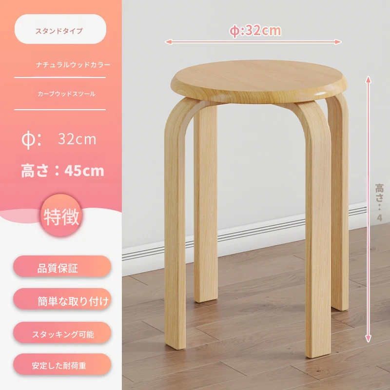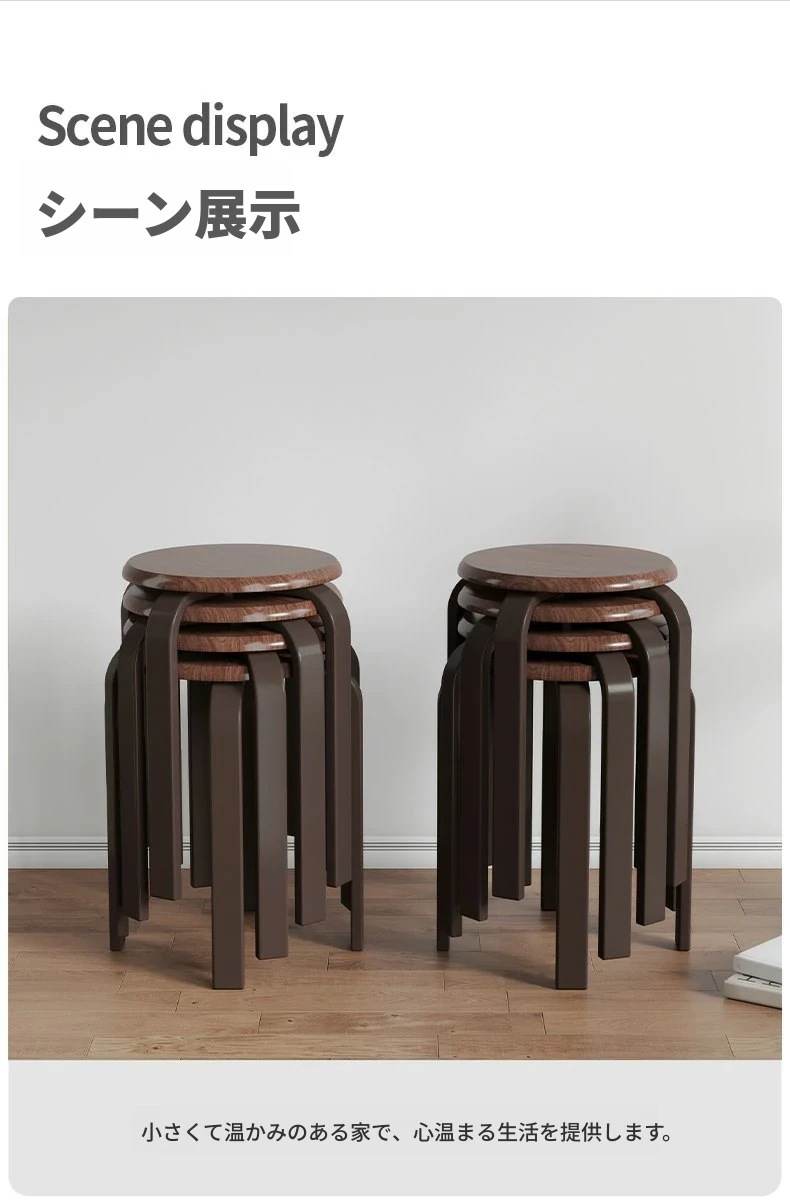 高品質の無垢材使用!シンプルでモダンなデザインのリビング・ダイニング用木製丸椅子。高めのスツールとしても使える、商業利用にも最適なスタイリッシュな椅子!