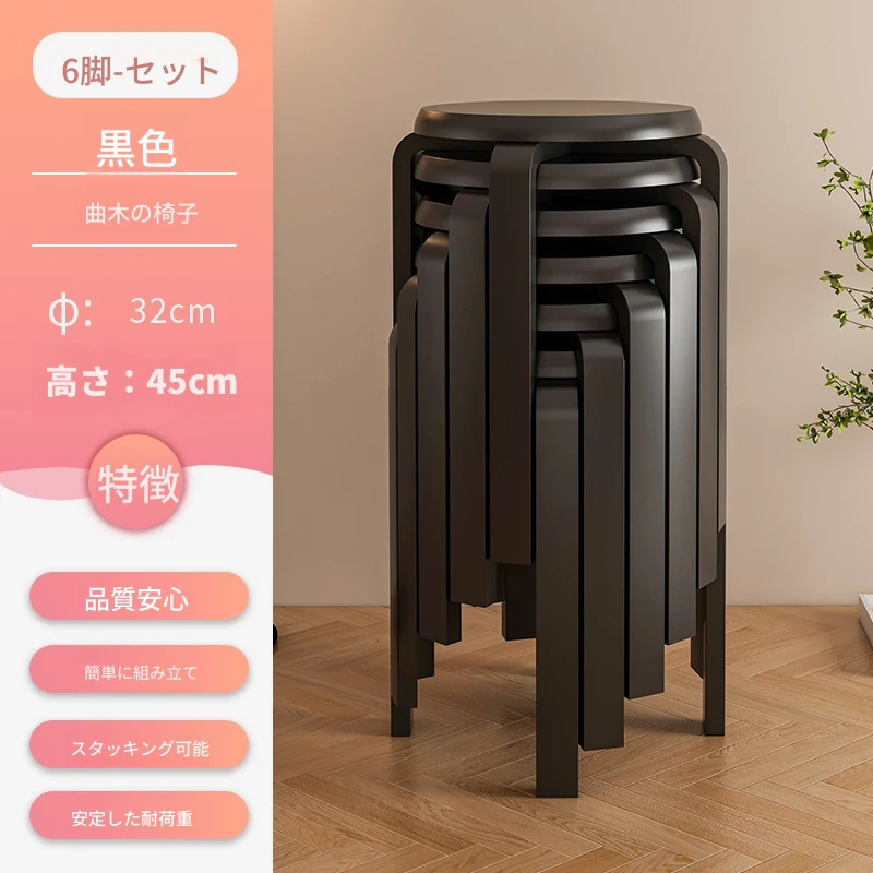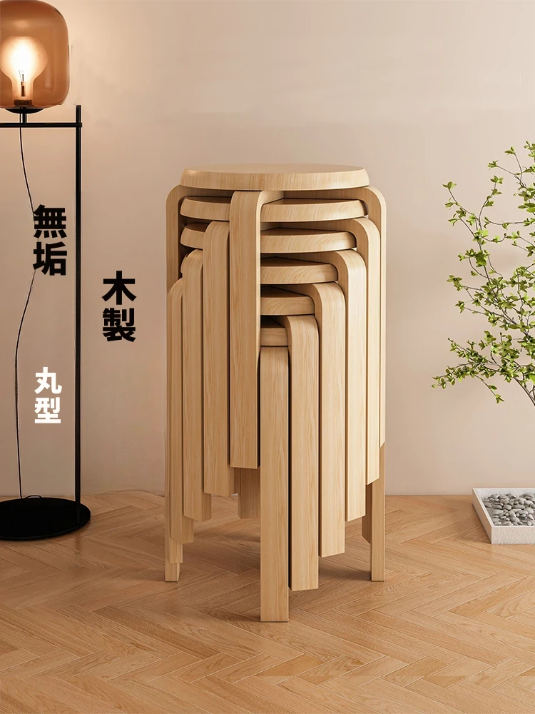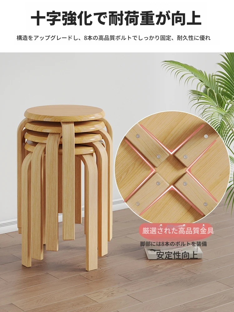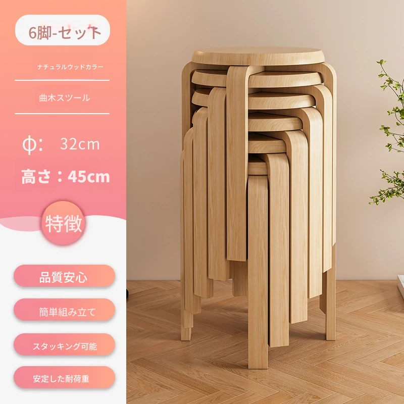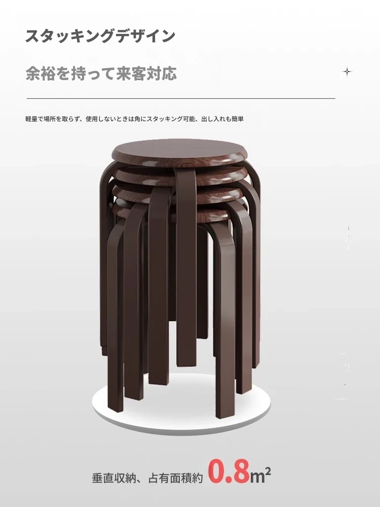 高品質の無垢材使用!シンプルでモダンなデザインのリビング・ダイニング用木製丸椅子。高めのスツールとしても使える、商業利用にも最適なスタイリッシュな椅子!
