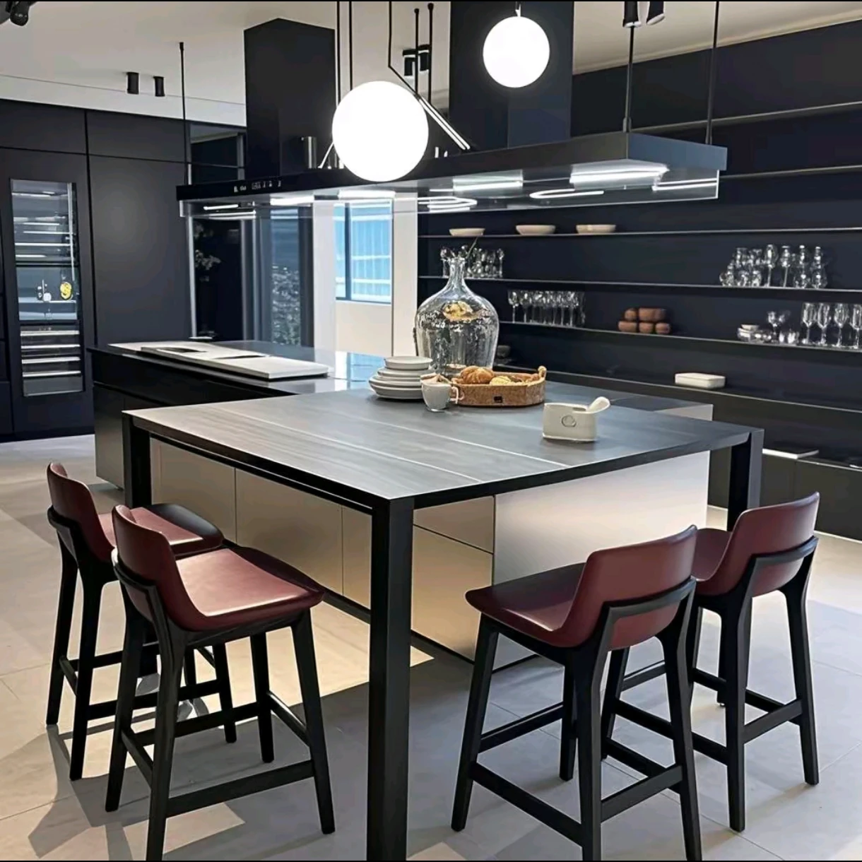 Bar chair [black] Napa ultra-fiber leather 23.62in