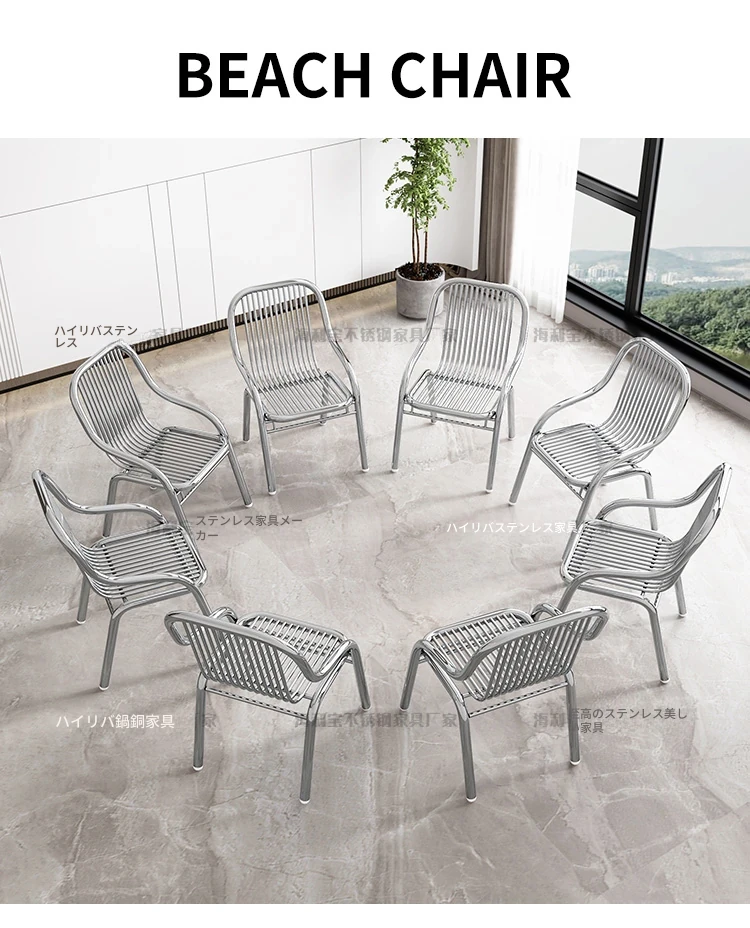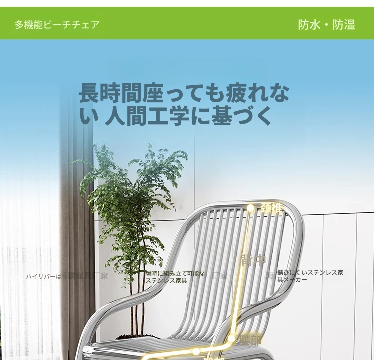 ステンレススチール製ビーチチェア - 快適なリクライニング機能付き!家庭用やアウトドアに最適な金属製リラクゼーションチェア。庭でのひとときを楽しむためのスタイリッシュなアームチェア。