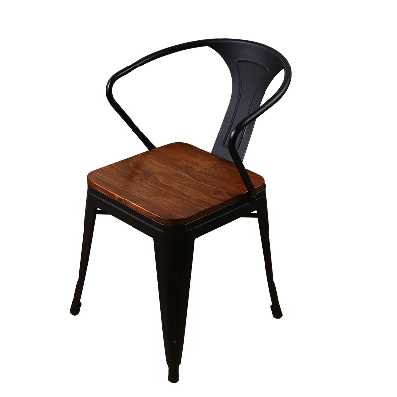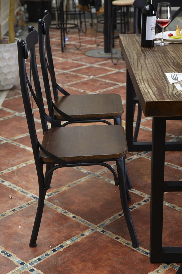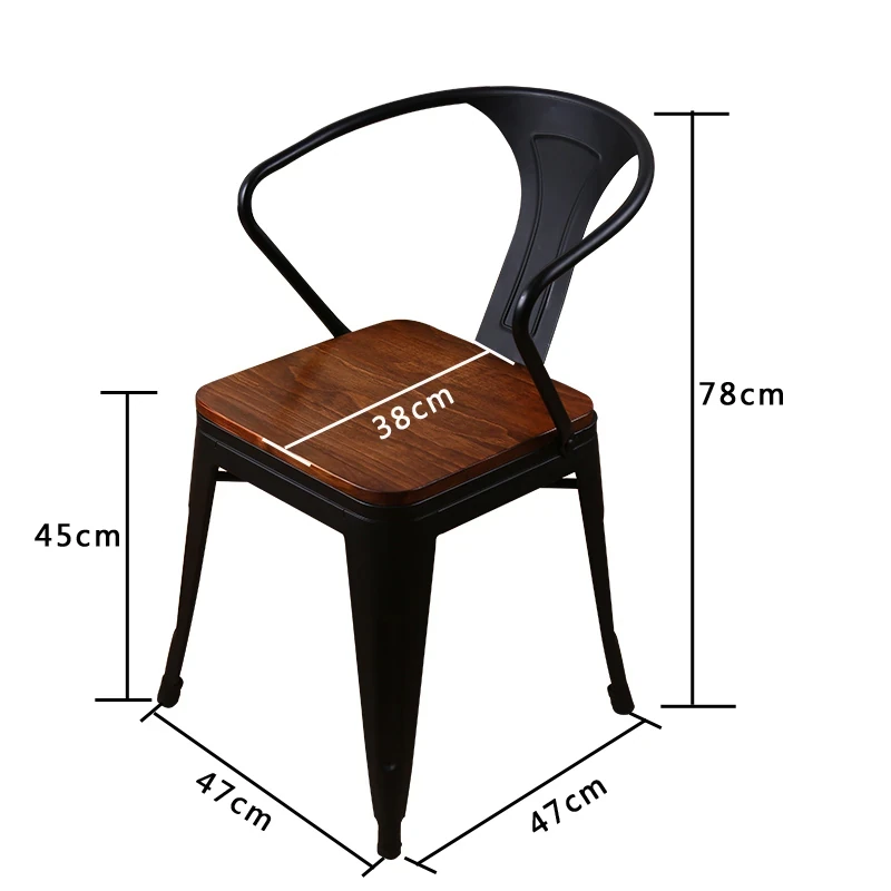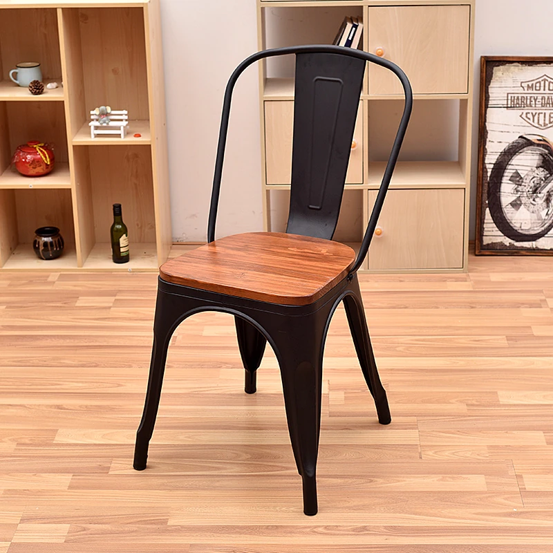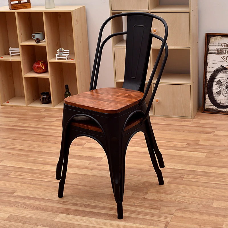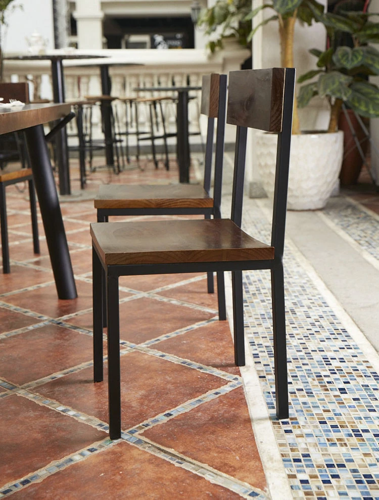 シンプルなデザインの木製カフェチェア|鉄製バック付き|家庭用・飲食店用に最適|お手頃価格でスタイリッシュな食卓を演出!