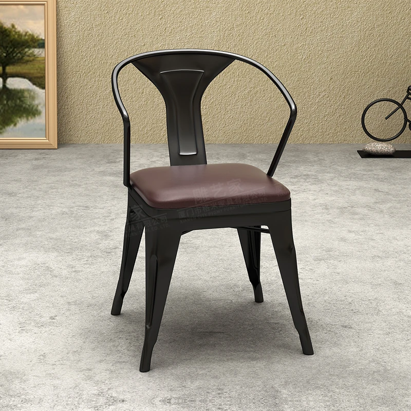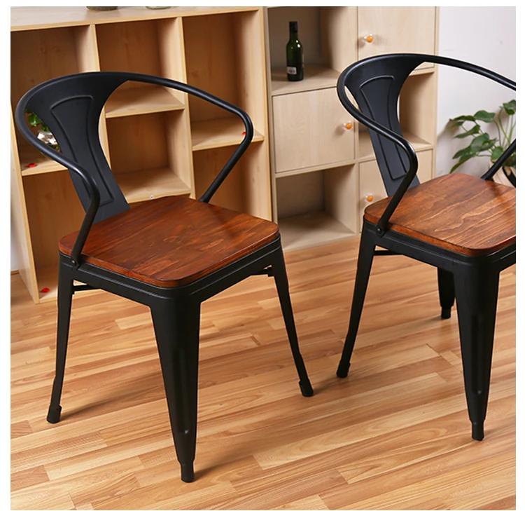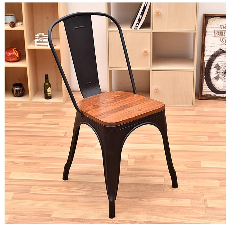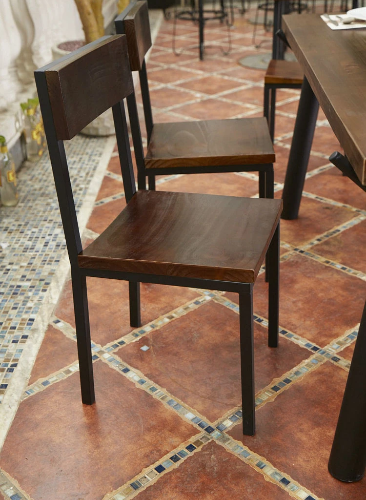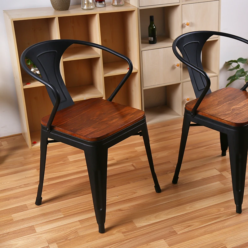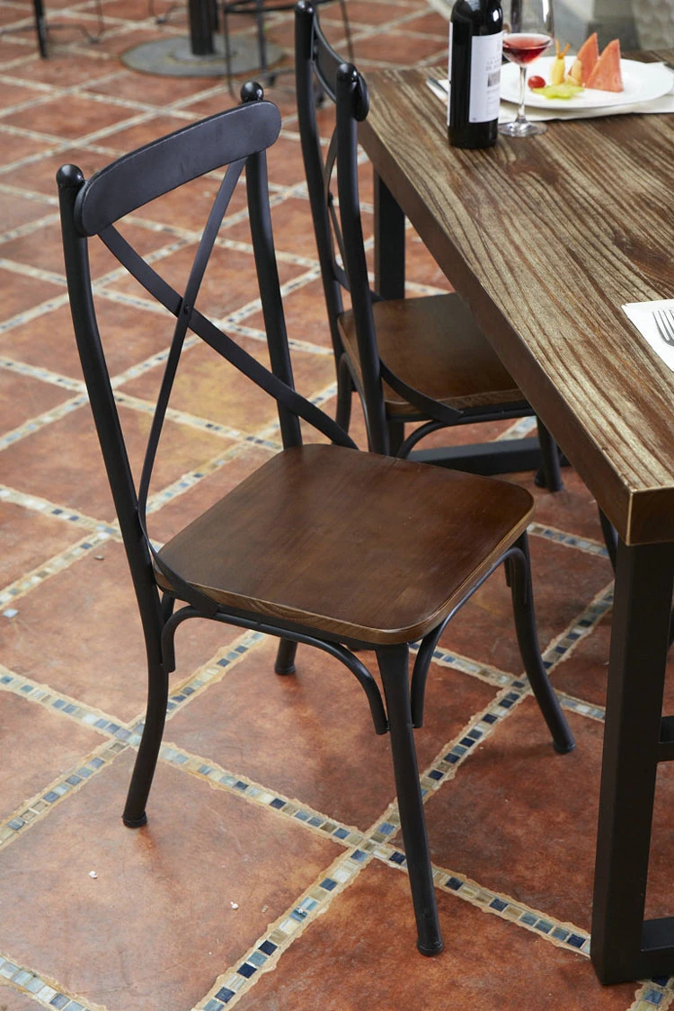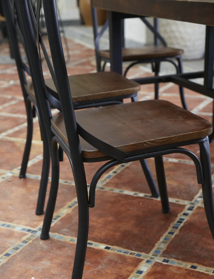 シンプルなデザインの木製カフェチェア|鉄製バック付き|家庭用・飲食店用に最適|お手頃価格でスタイリッシュな食卓を演出!