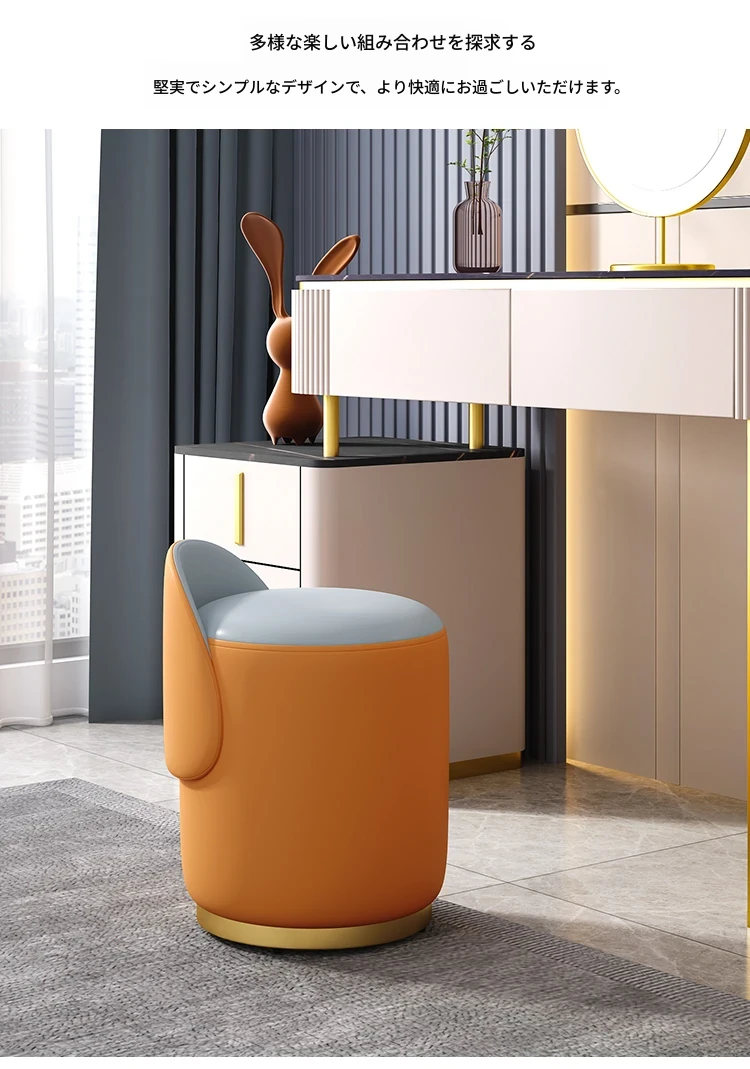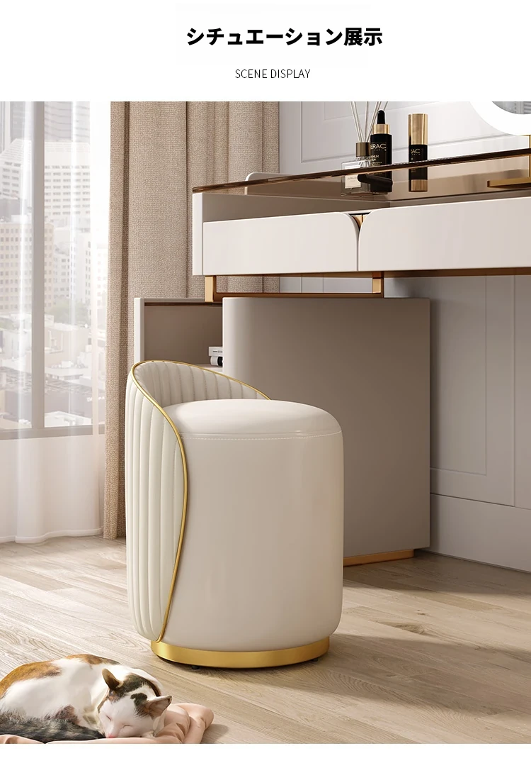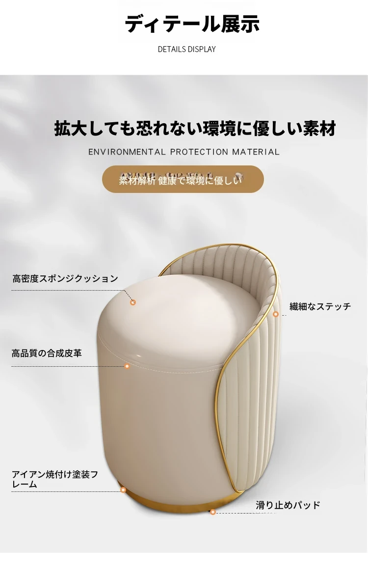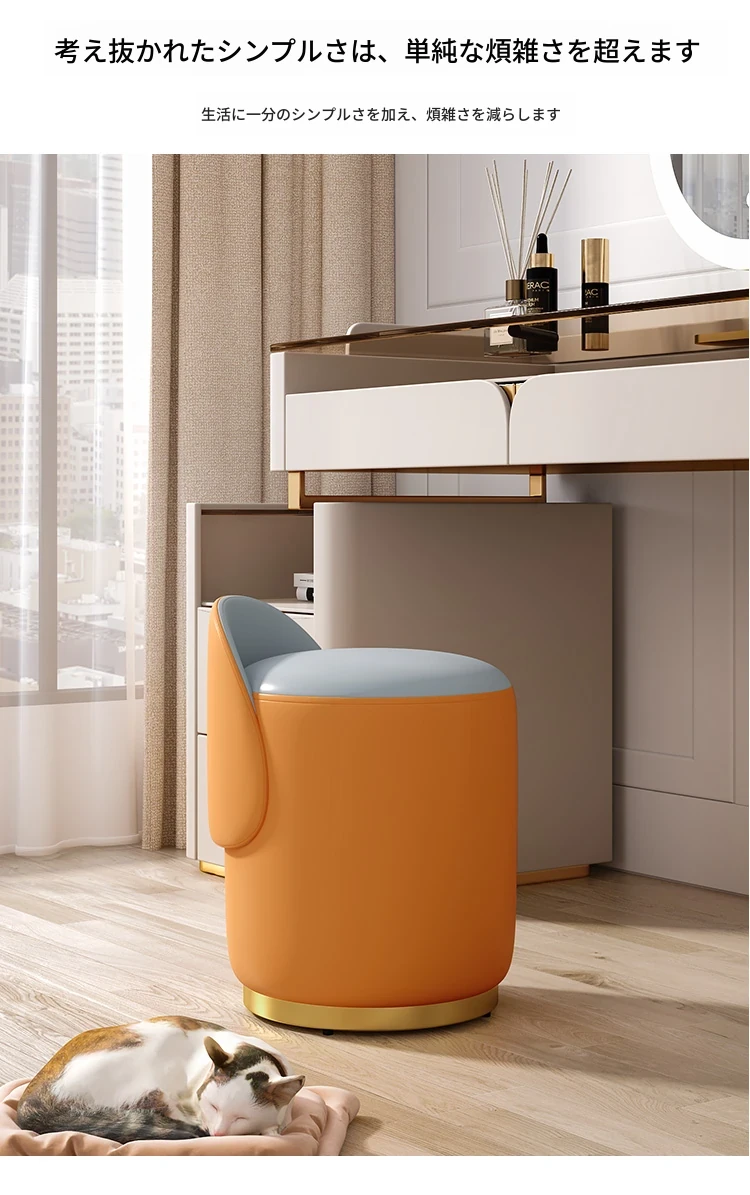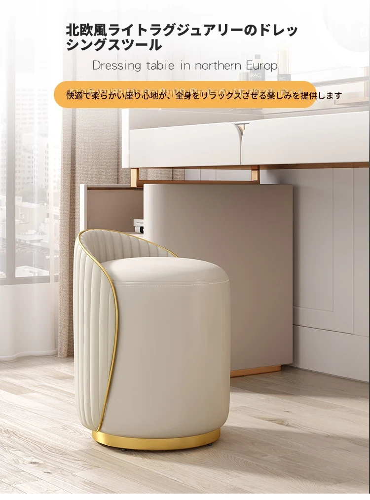 北欧風シンプルな軽奢化粧台スツール - 背もたれ付き、コンパクトでおしゃれなデザイン!小さな部屋にもぴったりの人気の化粧椅子。あなたの美しさを引き立てる、リラックス空間を演出します!