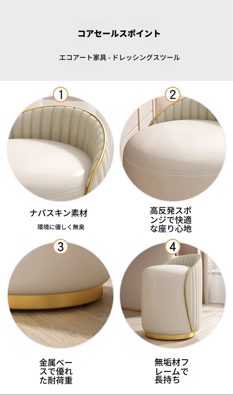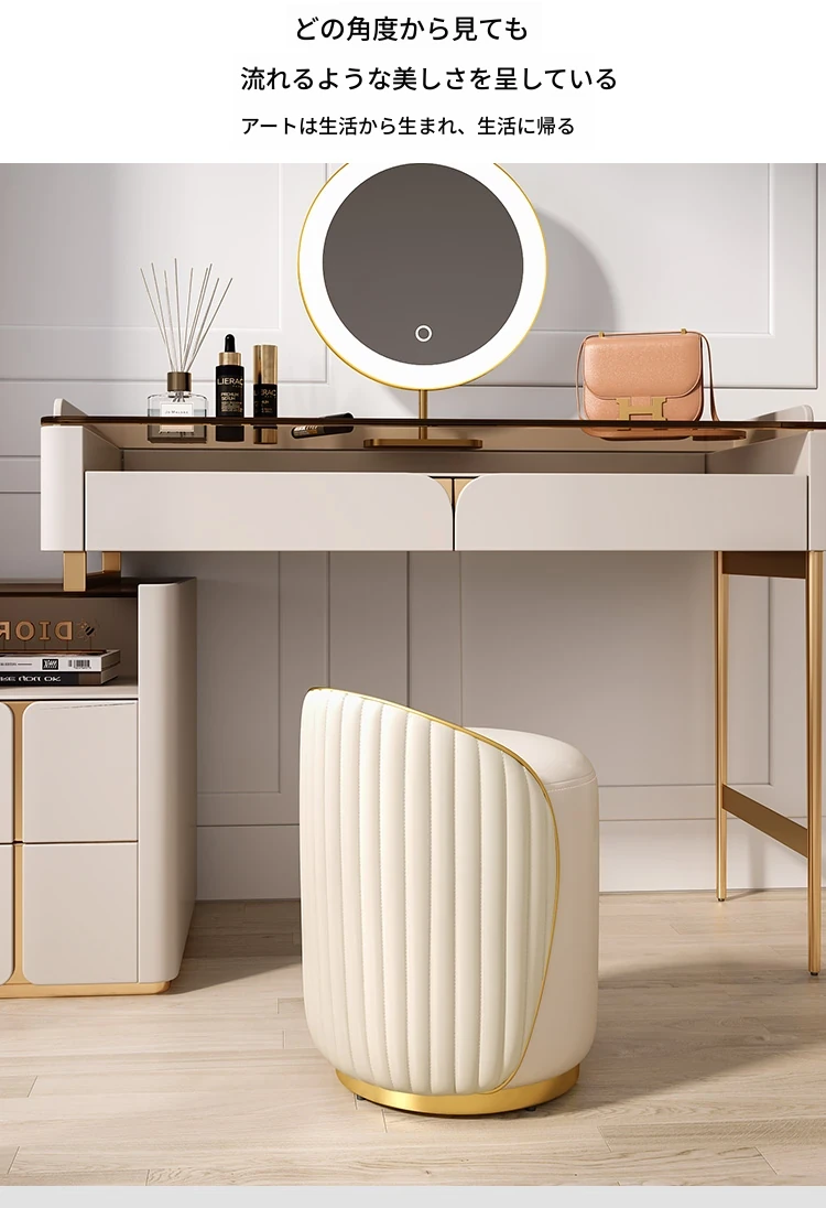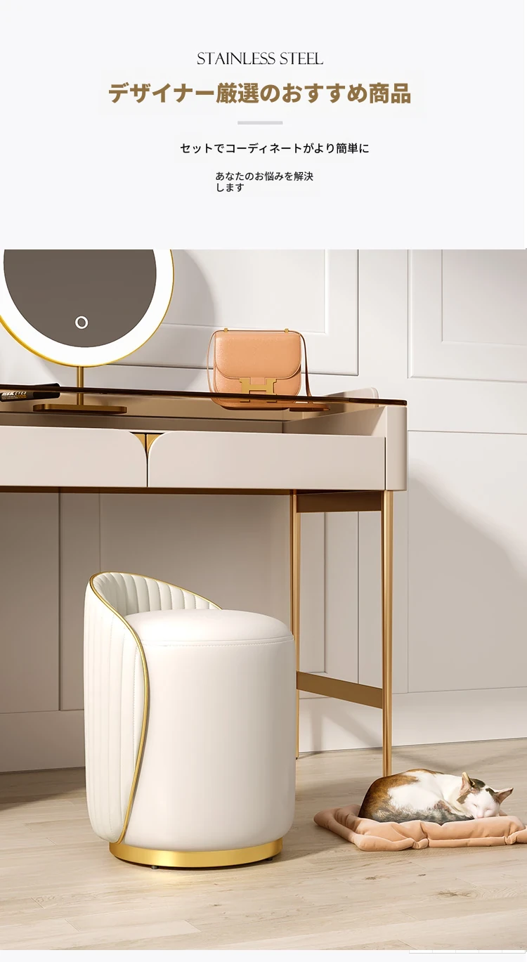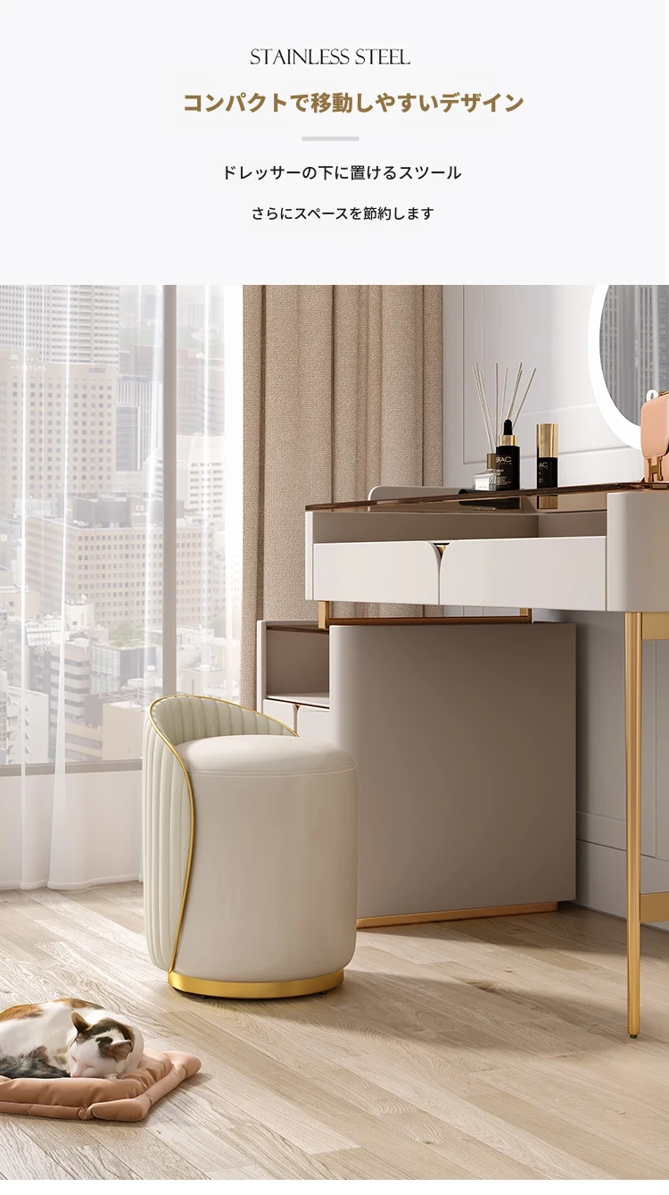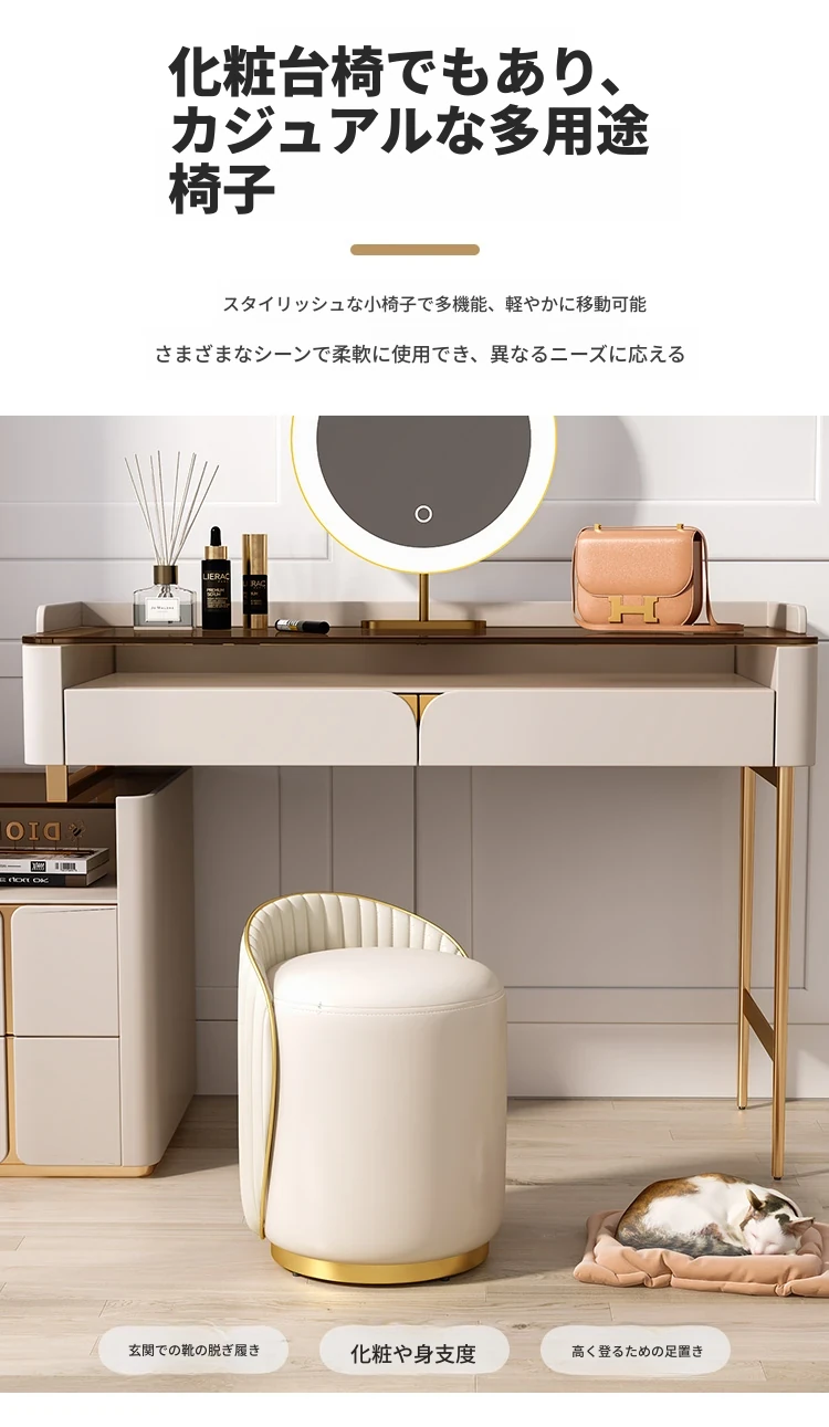 北欧風シンプルな軽奢化粧台スツール - 背もたれ付き、コンパクトでおしゃれなデザイン!小さな部屋にもぴったりの人気の化粧椅子。あなたの美しさを引き立てる、リラックス空間を演出します!